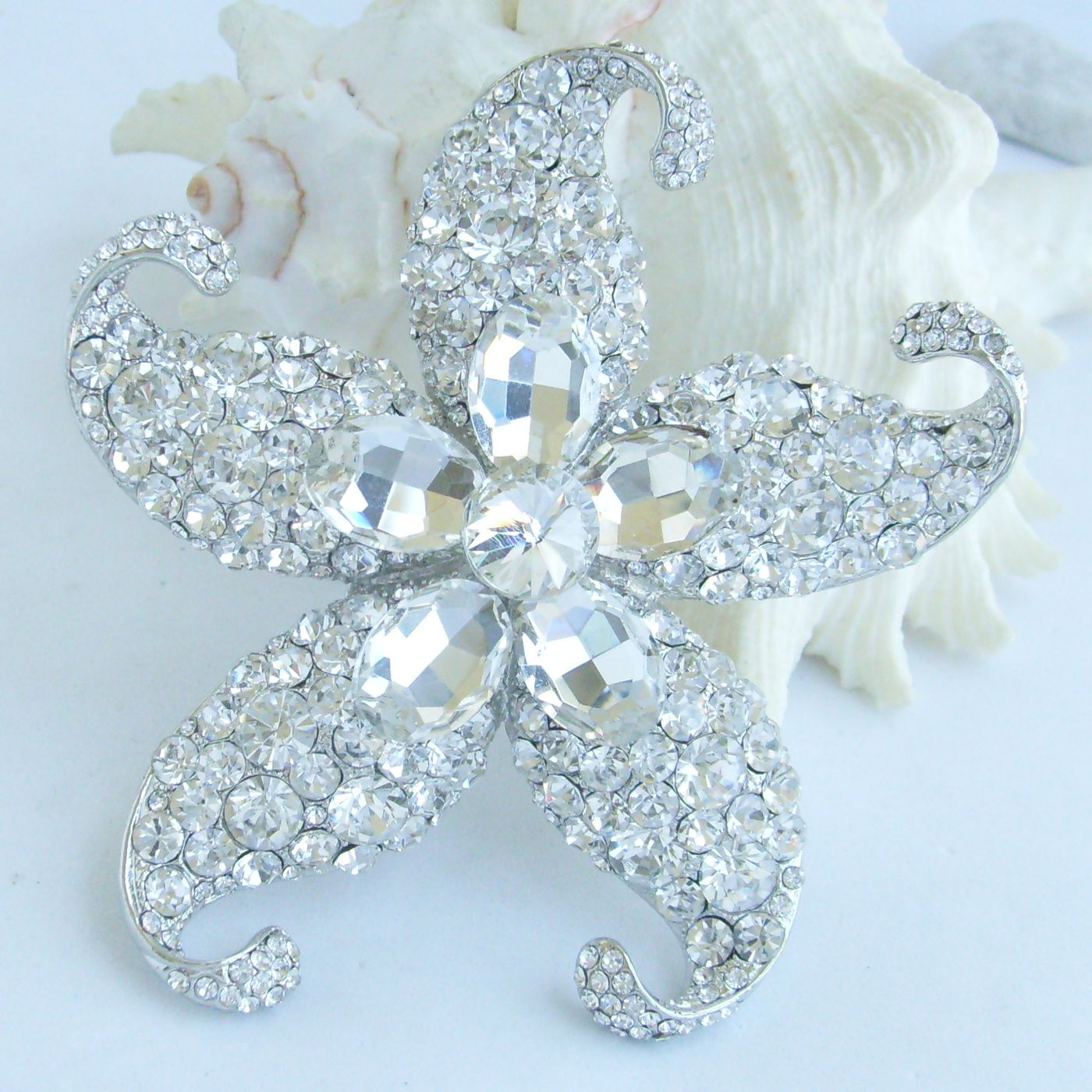 Sindary 3 Inch Unique Rhinestone Crystal Starfish Brooch Pin Pendant BP04824 (Silver-Tone Clear) 50g