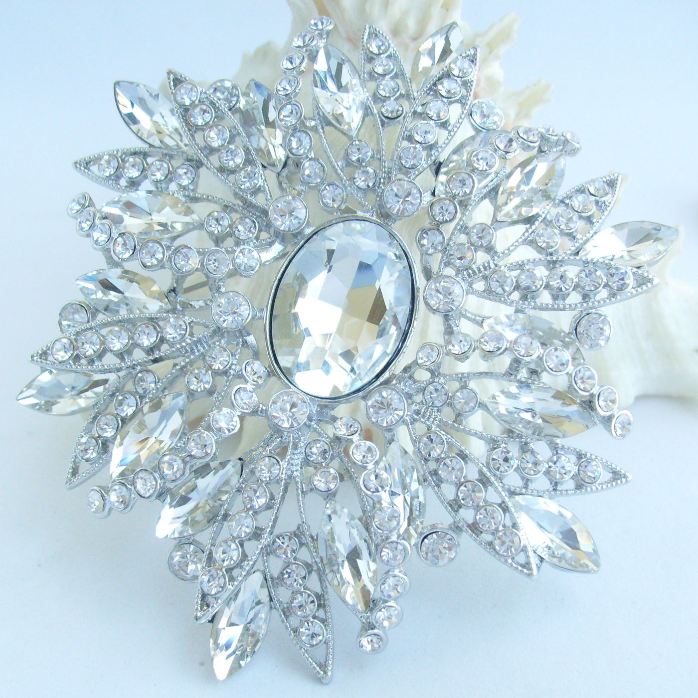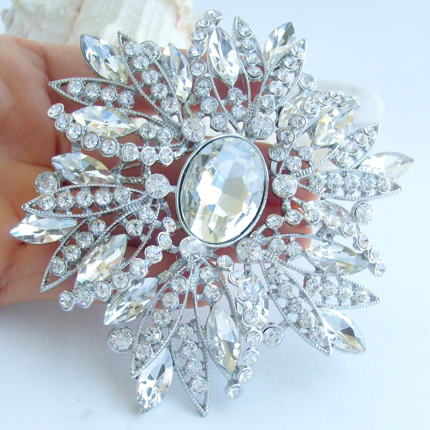 Sindary Classic 4 Inch Round Flower Brooch Pin Austrian Crystal Pendant Large Brooch for Women BP04053 (Silver-Tone Clear) 90g
