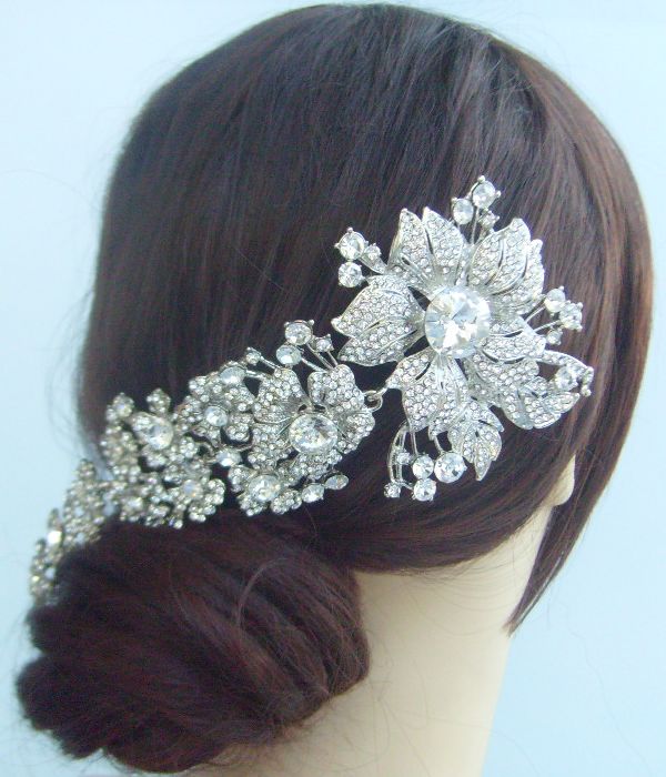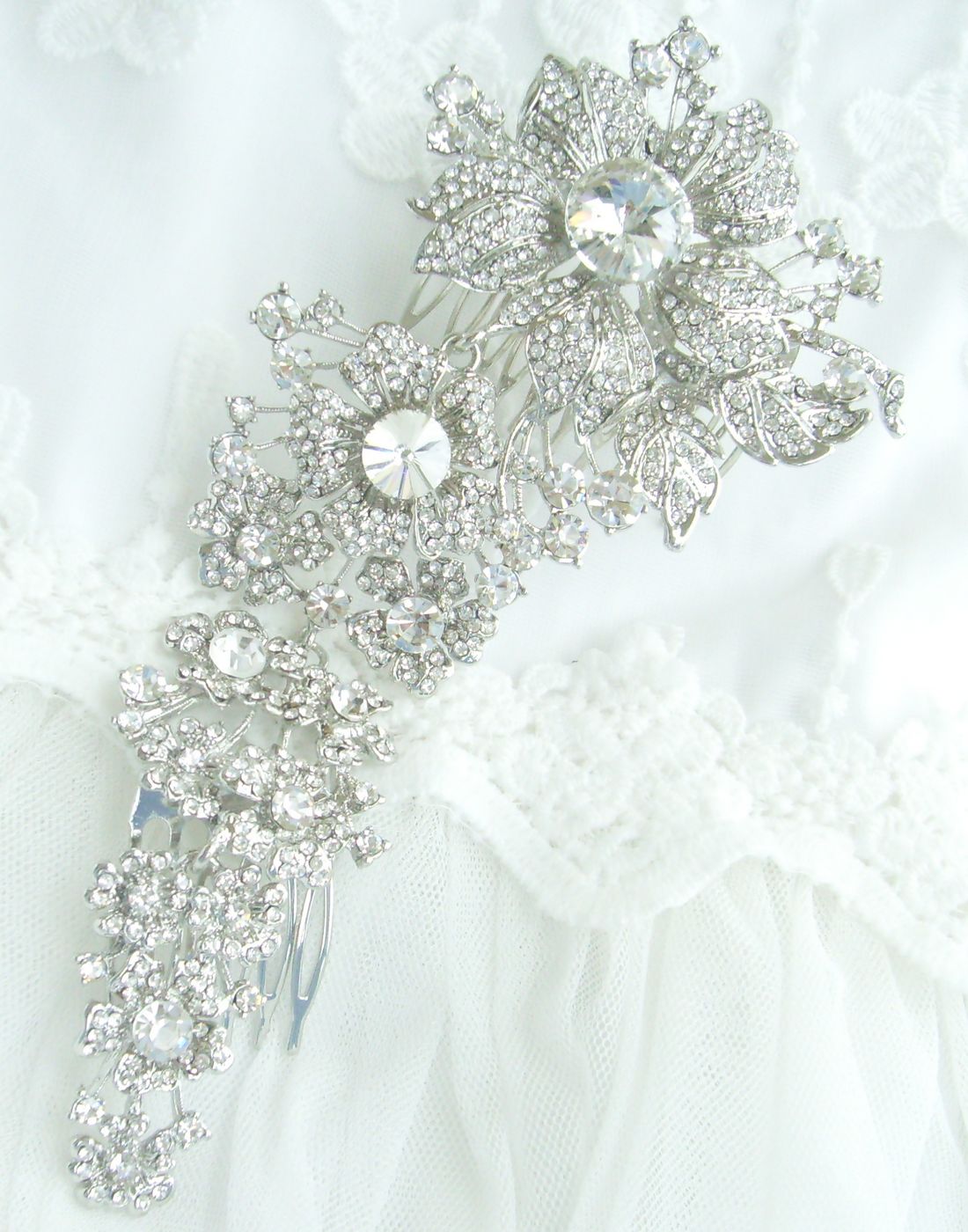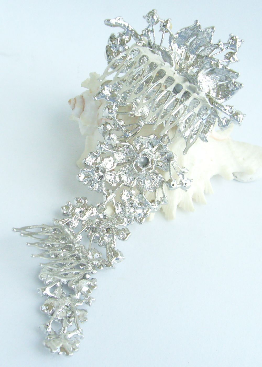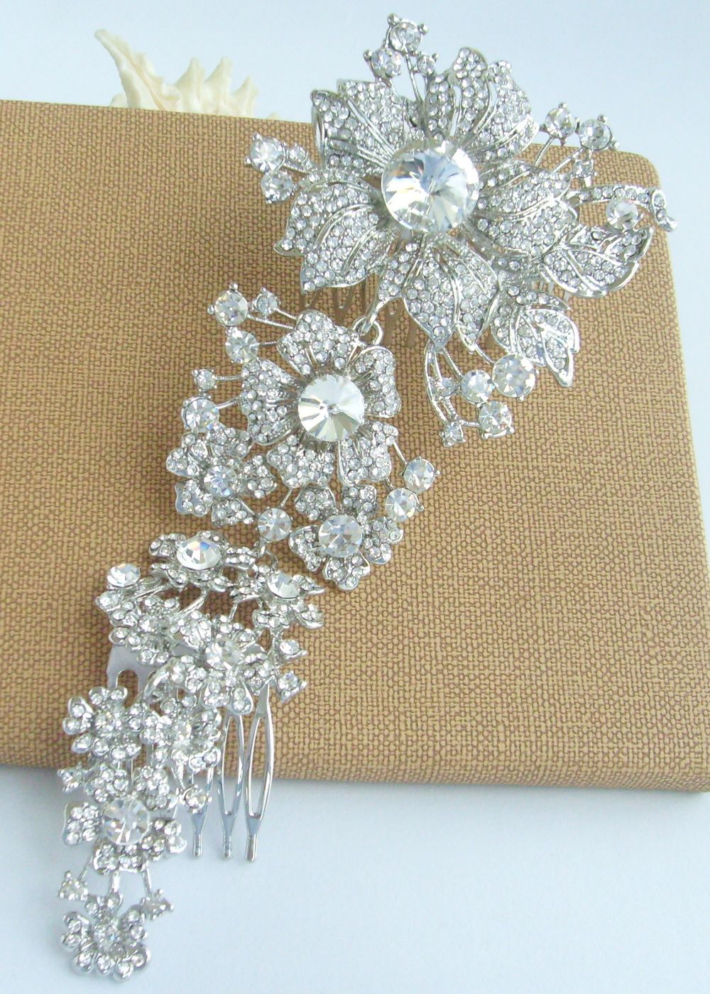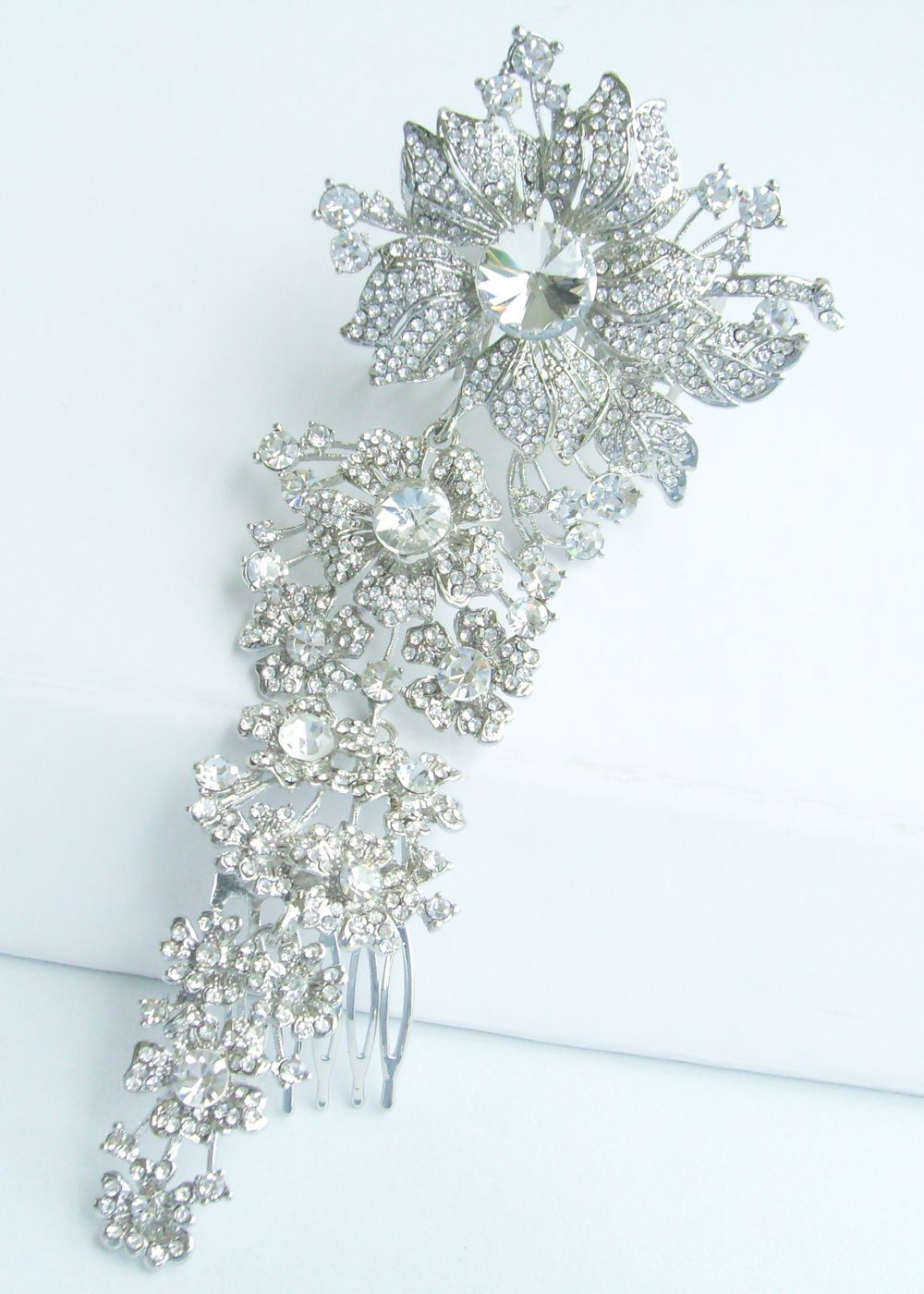 Sindary Wedding Bridal Party Headpiece Flower Hair Clip Side Comb Rhinestone Hair Comb HC04704 (Silver-Tone Clear) 100g
