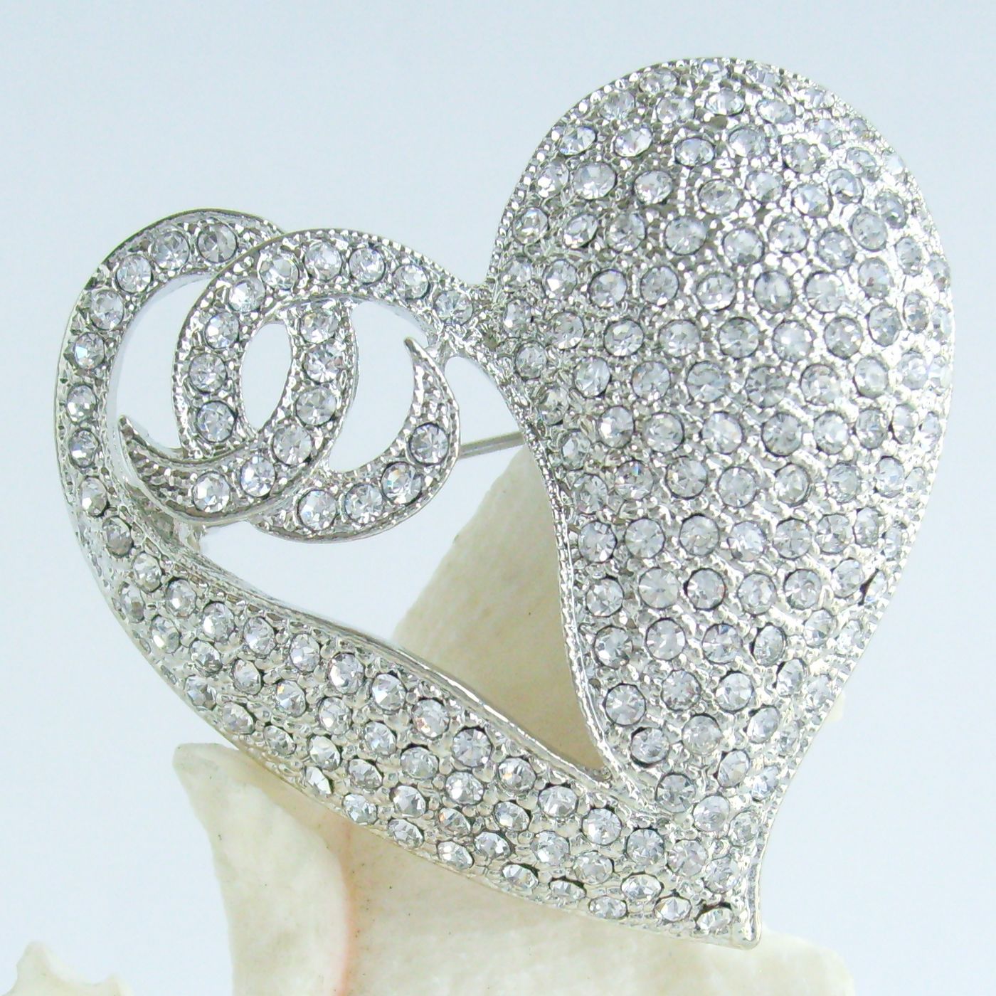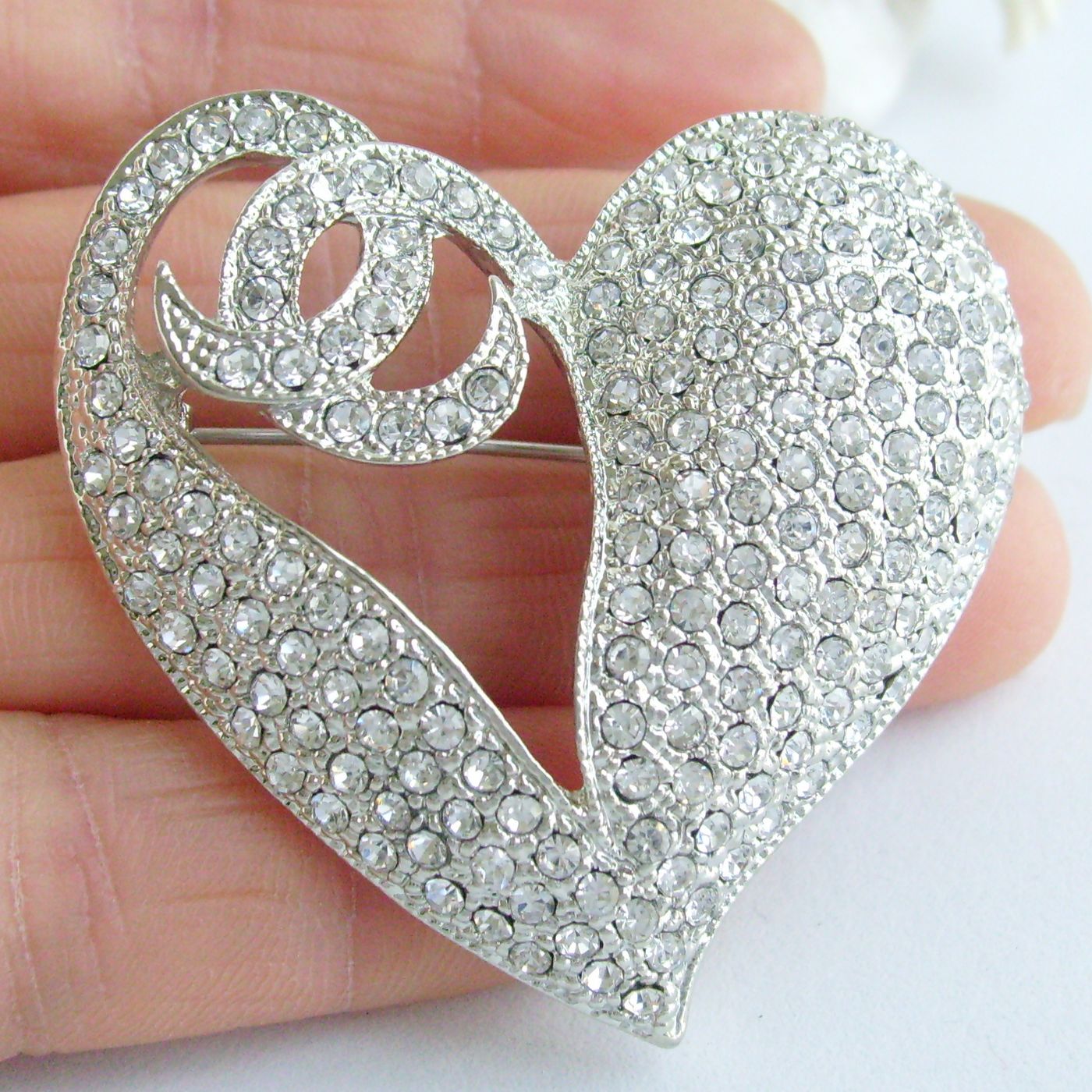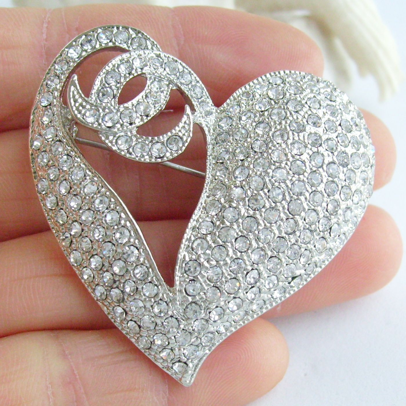 Sindary Rhinestone Crystal Pendant Love Heart Brooch Pin Pendant BP04831 (Silver-Tone Clear) 20g