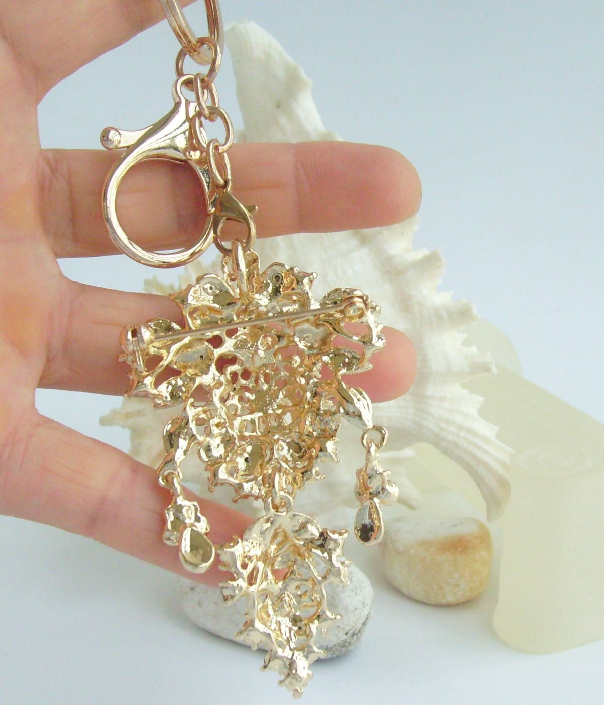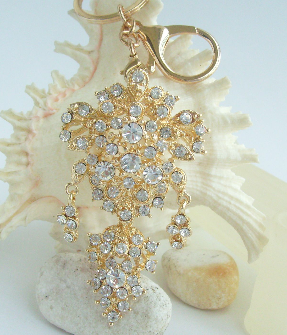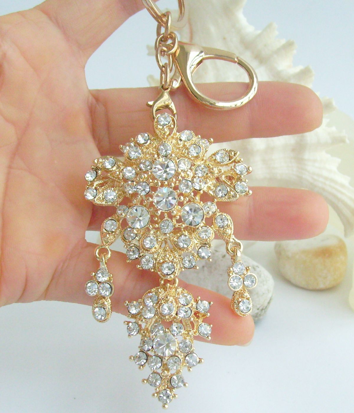 Sindary Rhinestone Crystal Elegant Flower Keychain Pendant KP03543 (Gold-Tone Clear) 30g