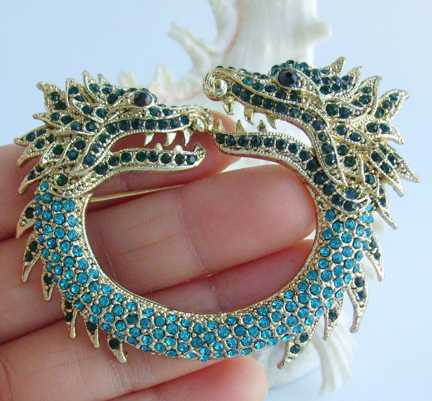 Sindary Animal Unique Dragon Brooch Pin Pendant Rhinestone Crystal BP05007 (Gold-Tone Turquoise Green) 35g