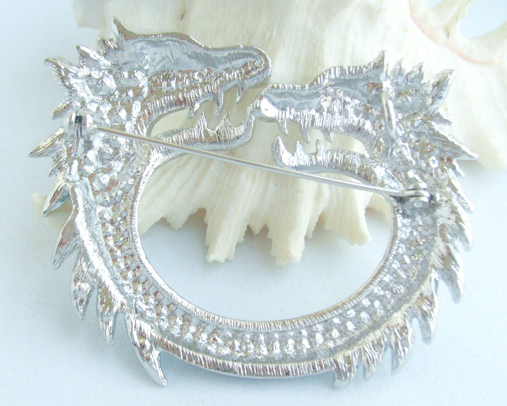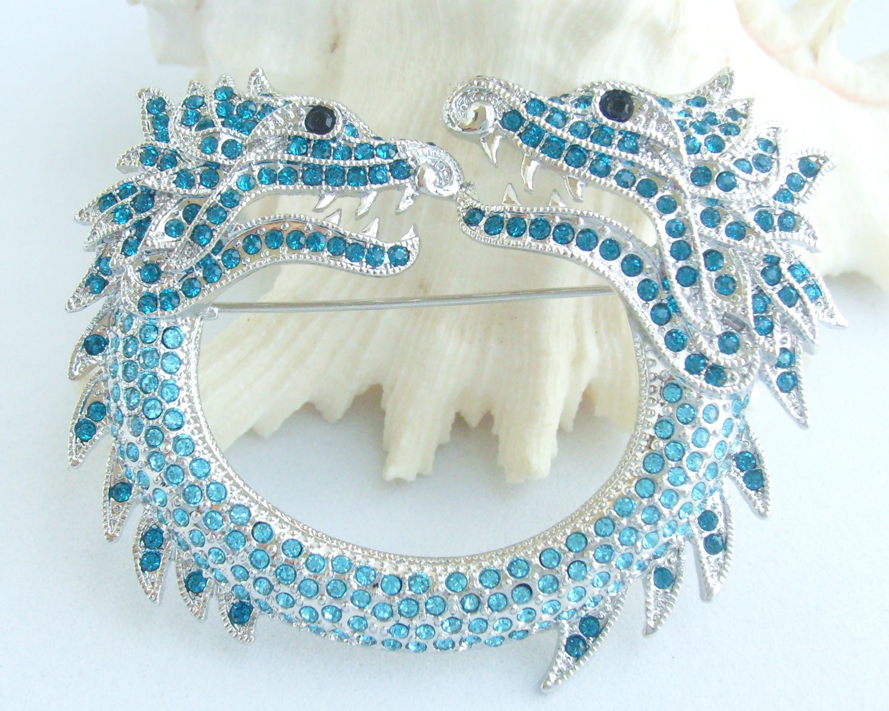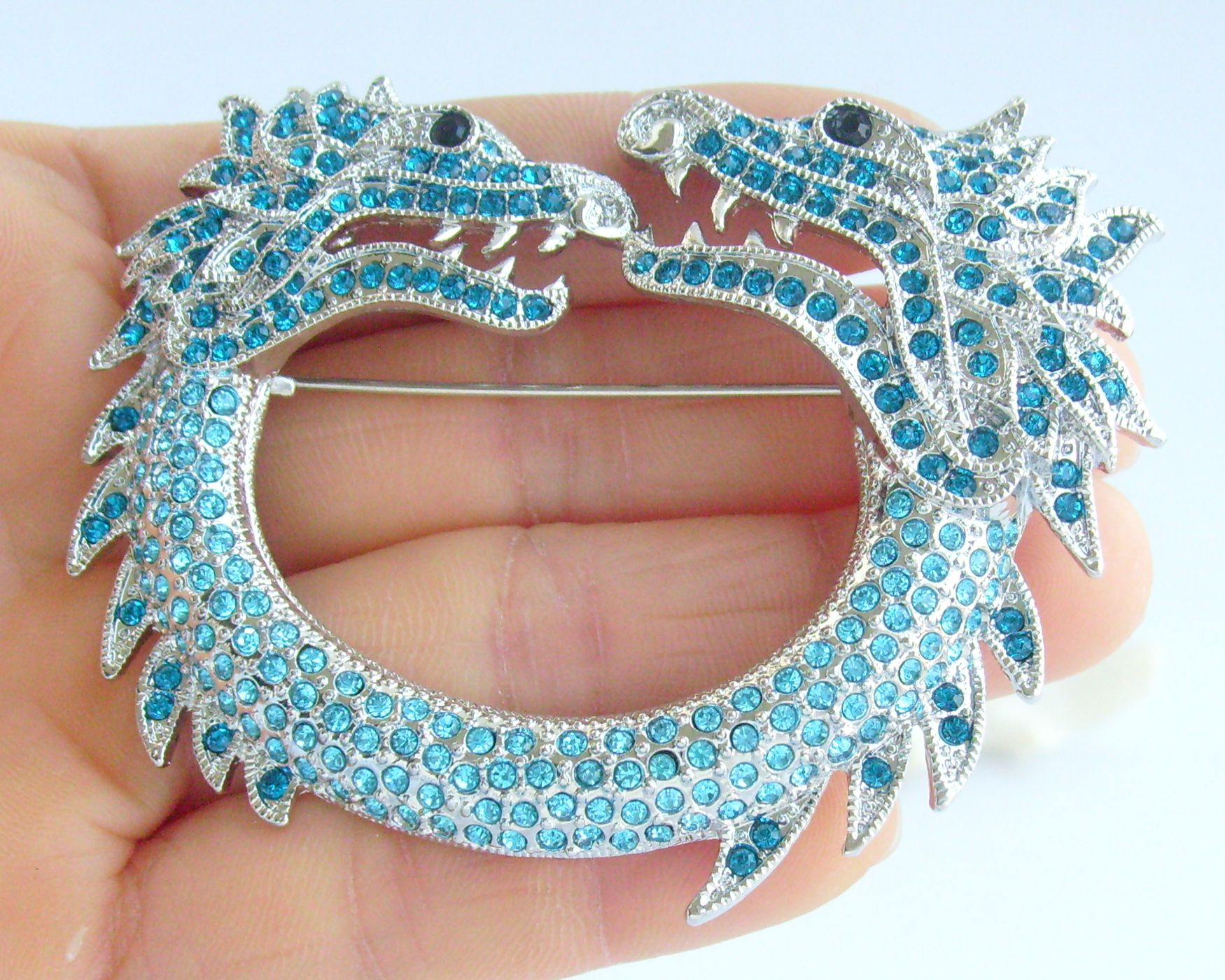 Sindary Animal Unique Dragon Brooch Pin Pendant Rhinestone Crystal BP05007 (Silver-Tone Lake Blue) 35g