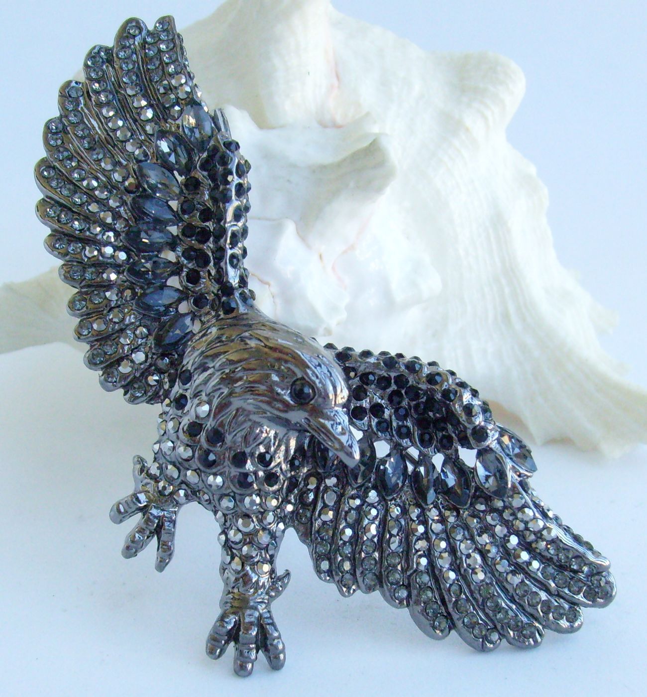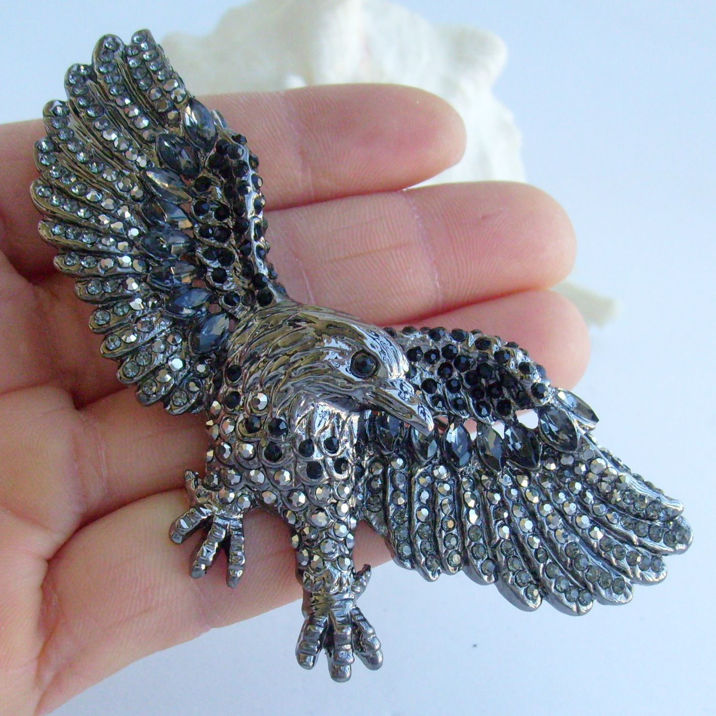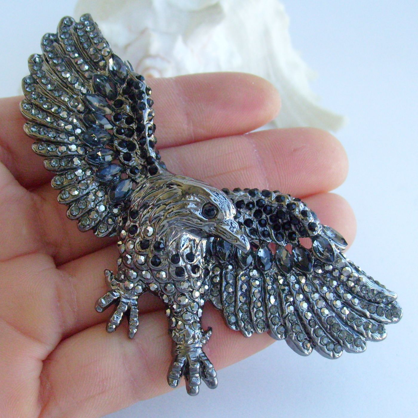 Sindary Unique Animal Bird Eagle Brooch Pin Rhinestone Crystal Pendant BP04717 (Black-Tone Black Gray) 30g