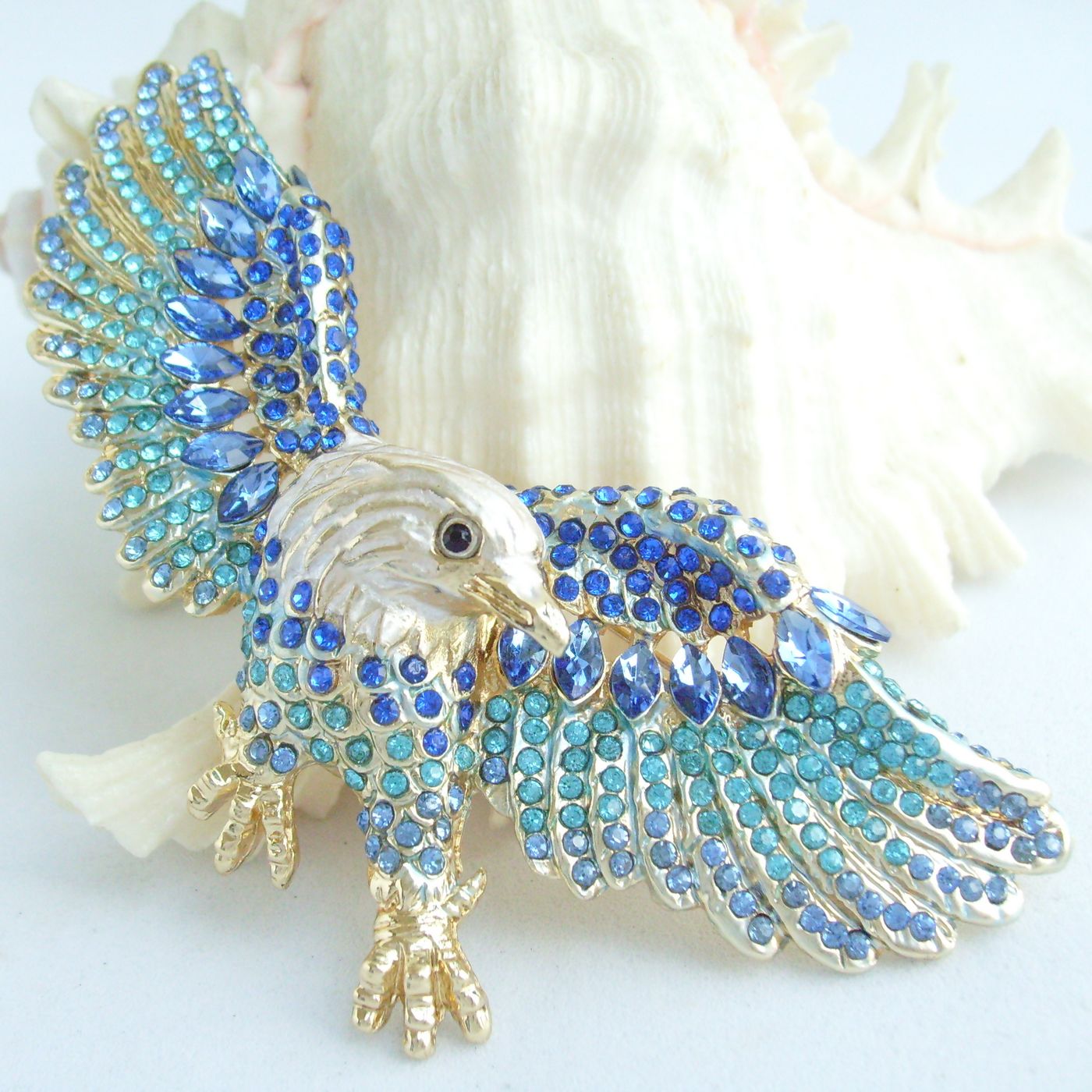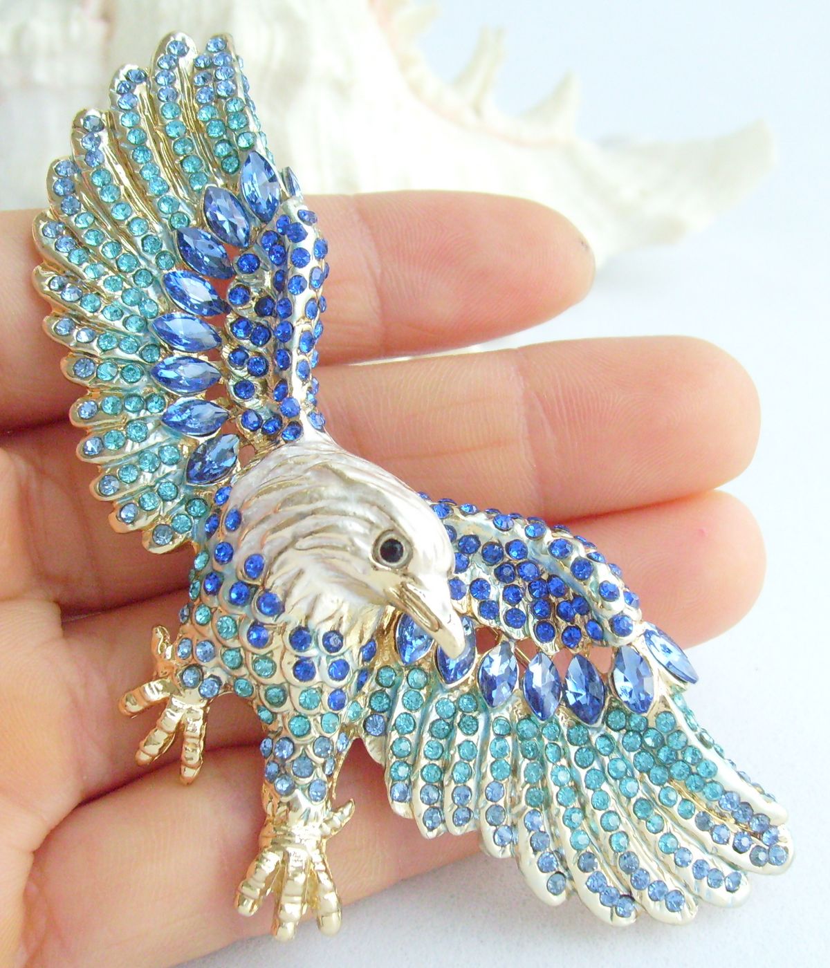 Sindary Unique Animal Bird Eagle Brooch Pin Rhinestone Crystal Pendant BP04717 (Gold-Tone Blue) 30g