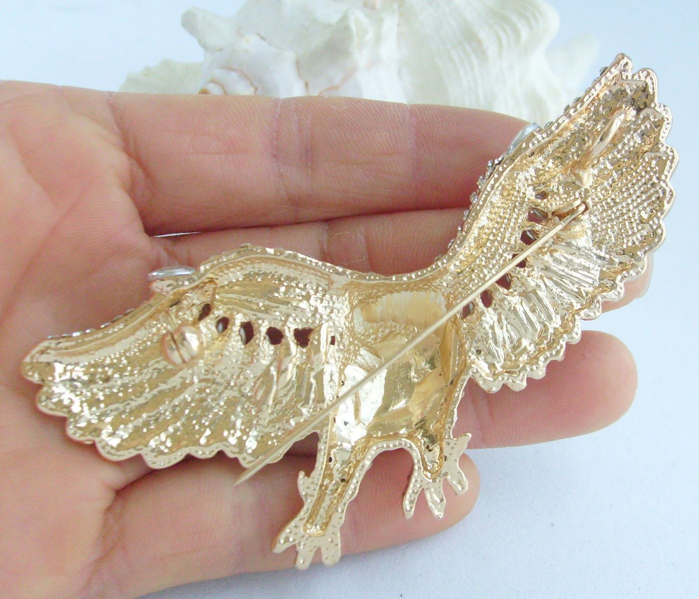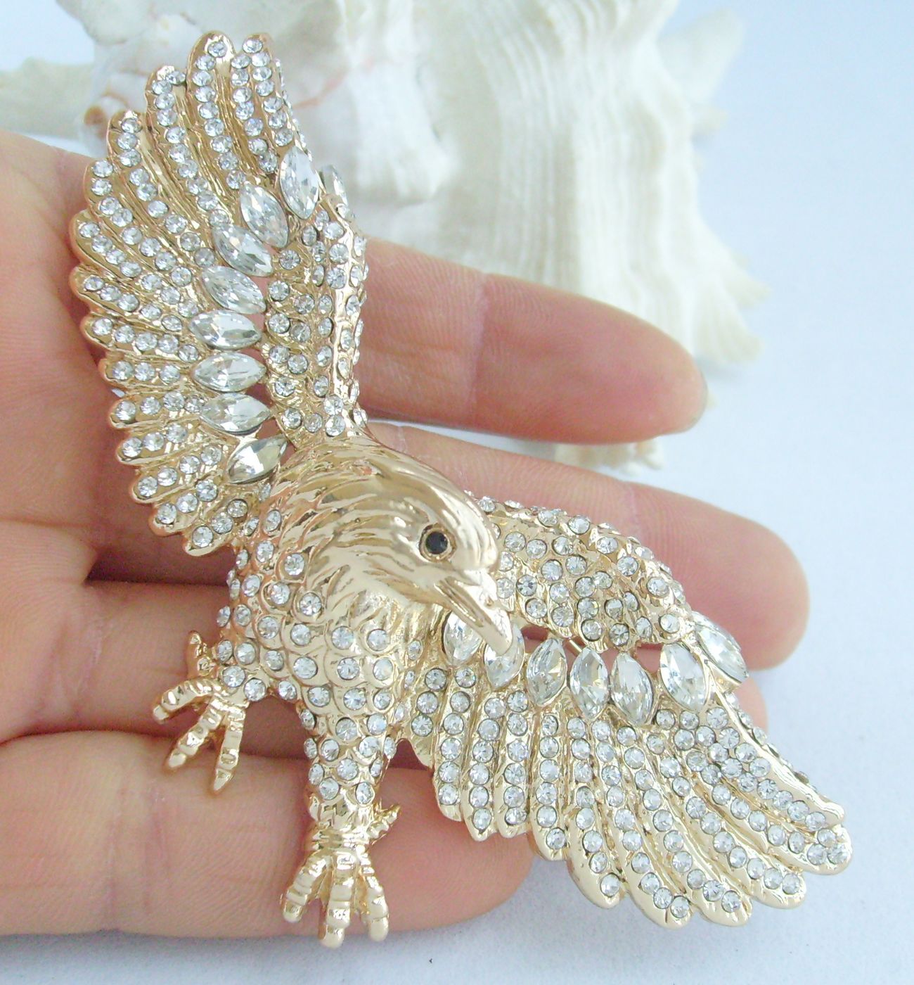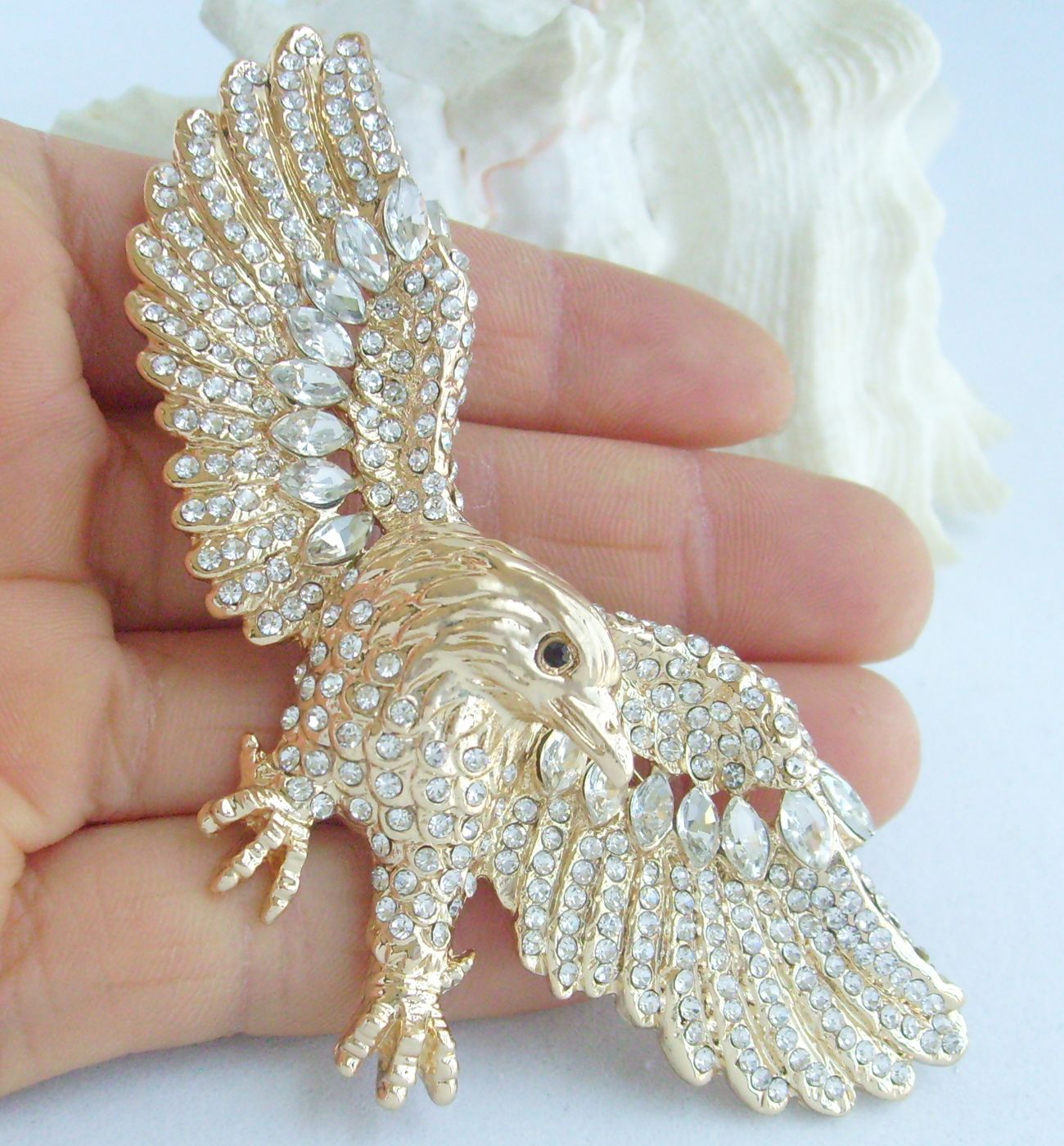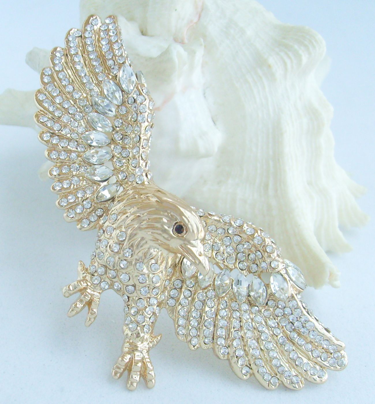 Sindary Unique Animal Bird Eagle Brooch Pin Rhinestone Crystal Pendant BP04717 (Gold-Tone Clear) 30g