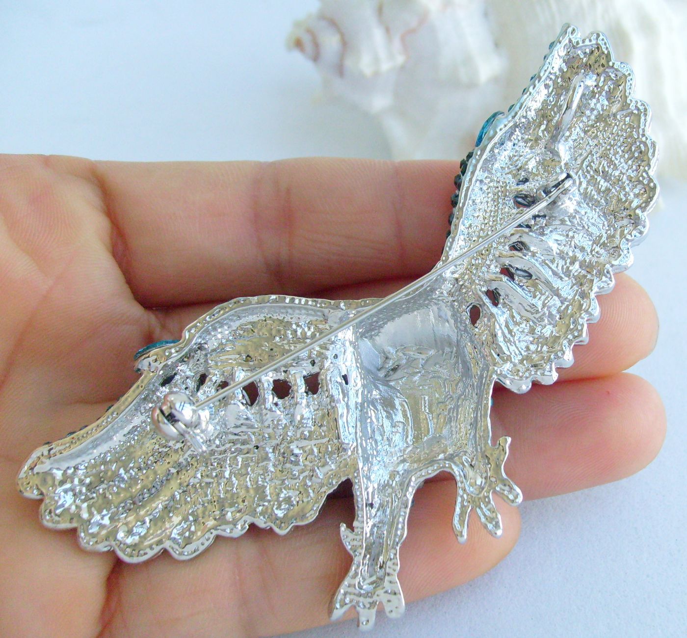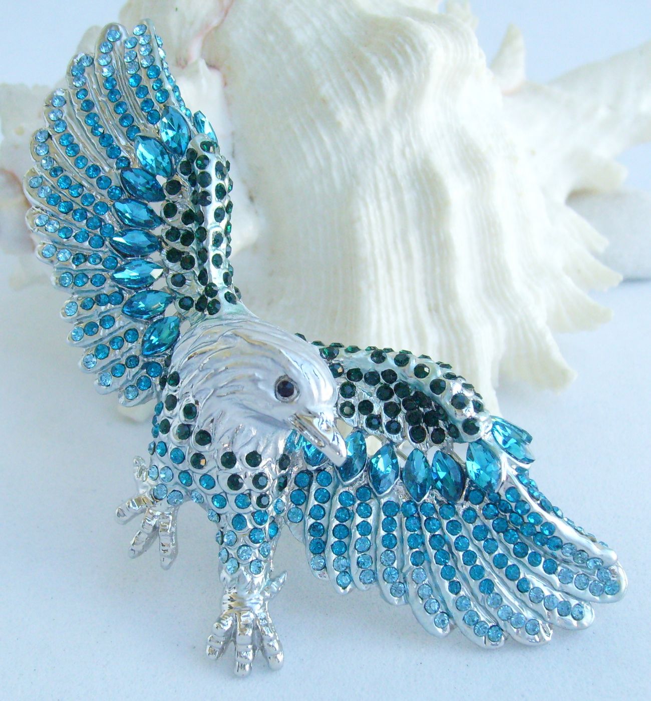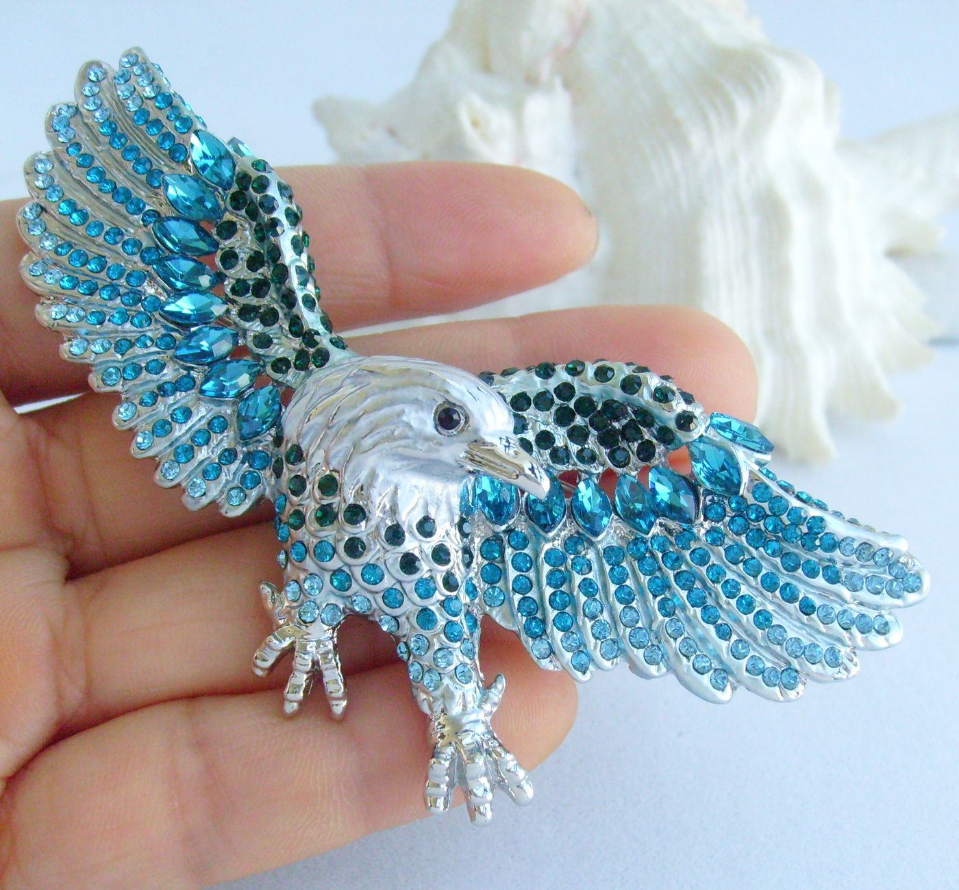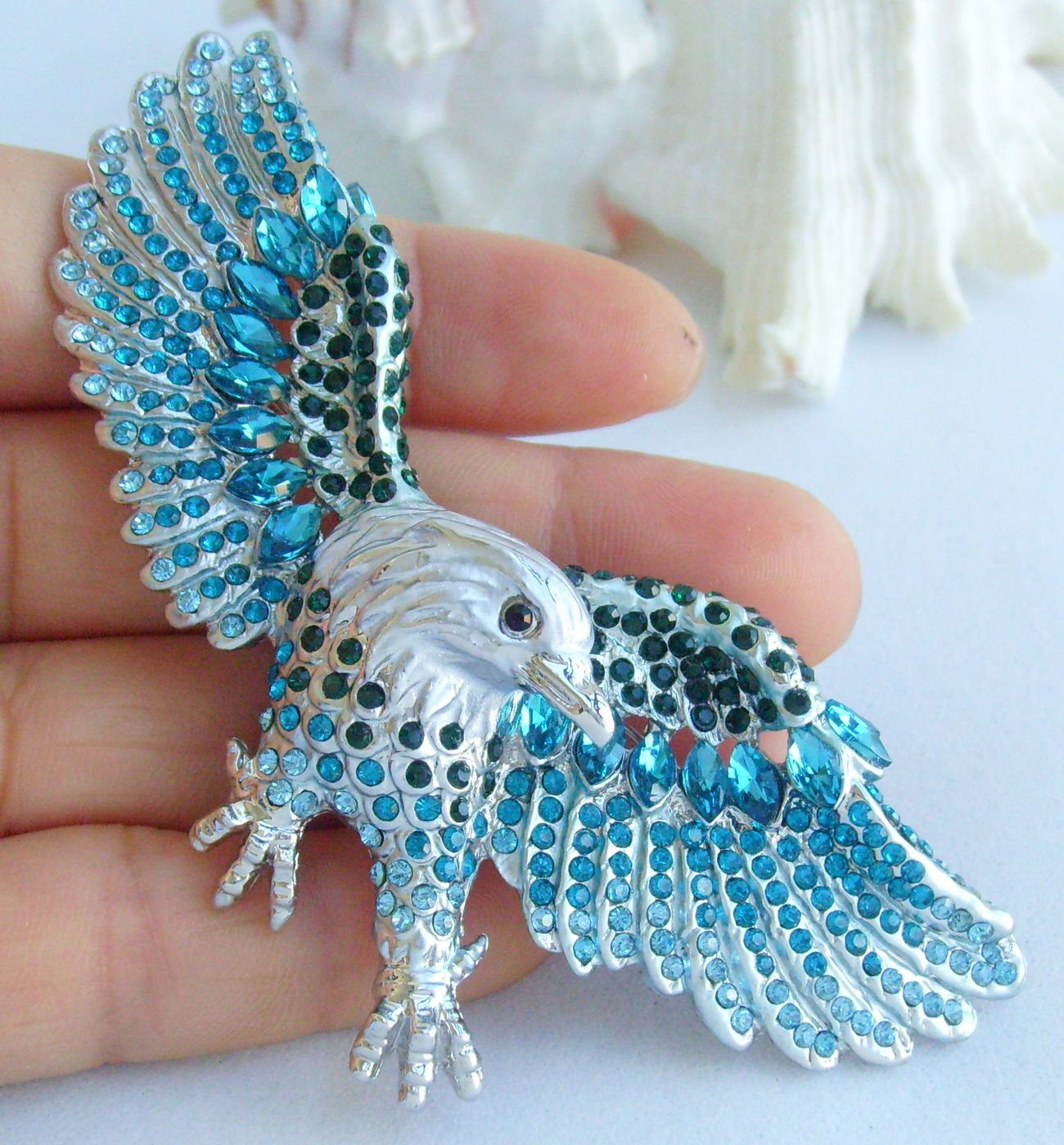 Sindary Unique Animal Bird Eagle Brooch Pin Rhinestone Crystal Pendant BP04717 (Silver-Tone Turquoise Green) 30g