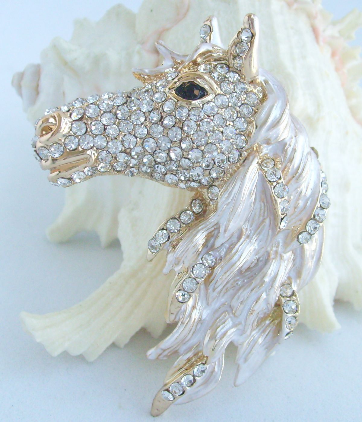 Sindary Unique Rhinestone Crystal Animal Horse Brooch Pin Pendant BP06535 (Gold-Tone Clear) 35g