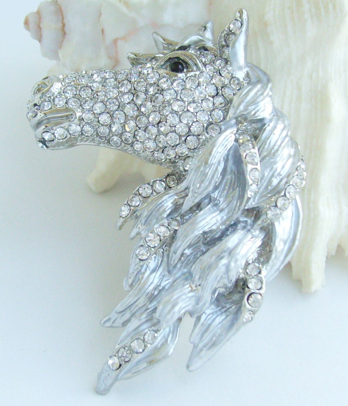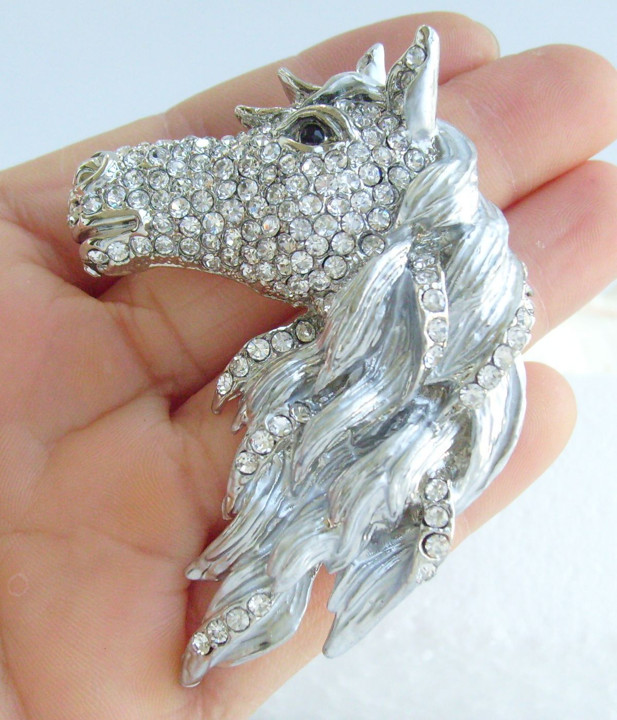 Sindary Unique Rhinestone Crystal Animal Horse Brooch Pin Pendant BP06535 (Silver-Tone Clear) 35g