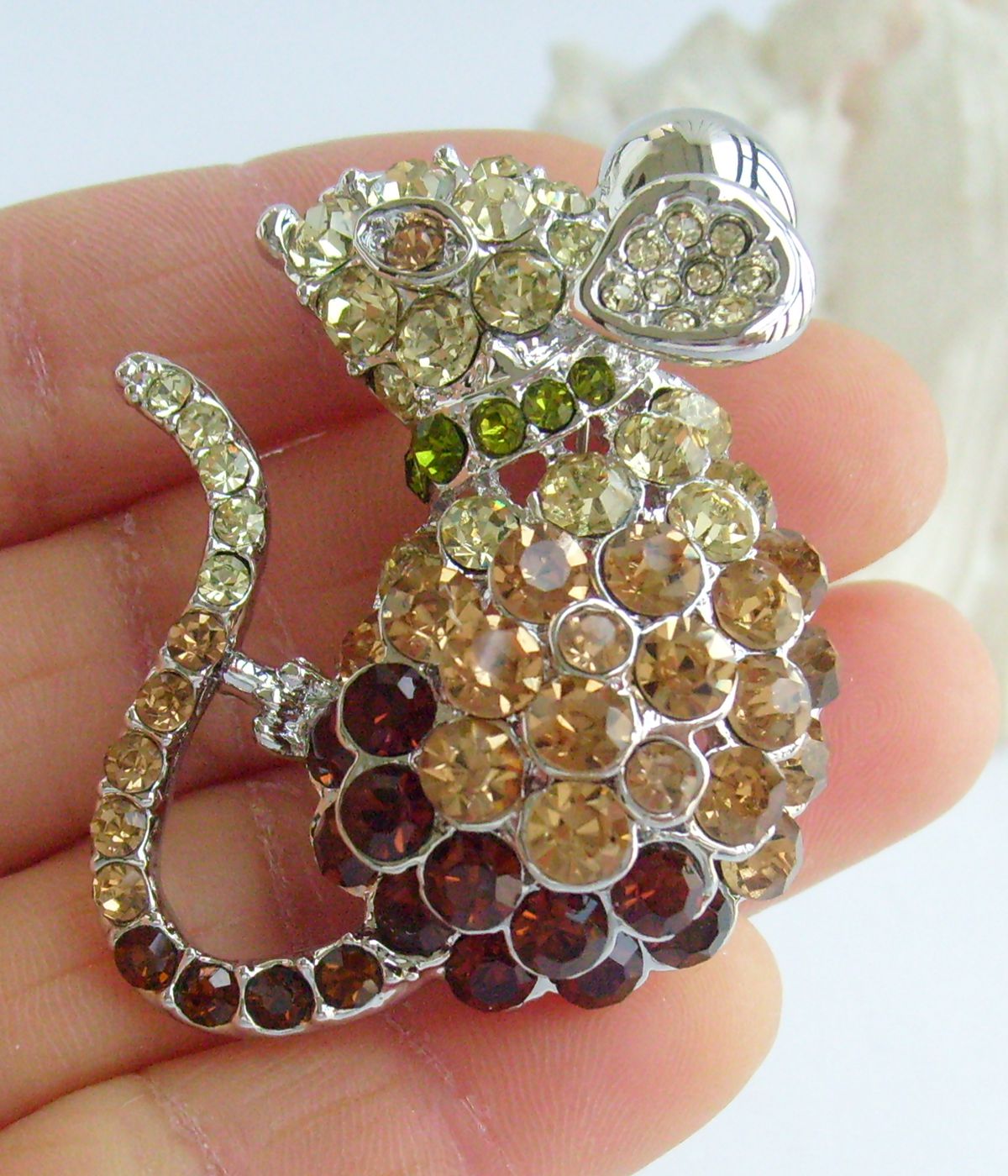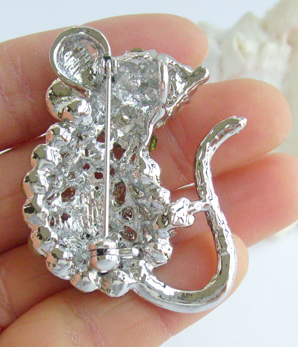 Sindary Unique Rhinestone Crystal Mouse Rat Animal Brooch Pin Pendant BP03276 (Silver-Tone Topaz) 20g