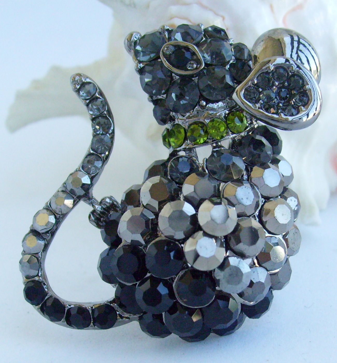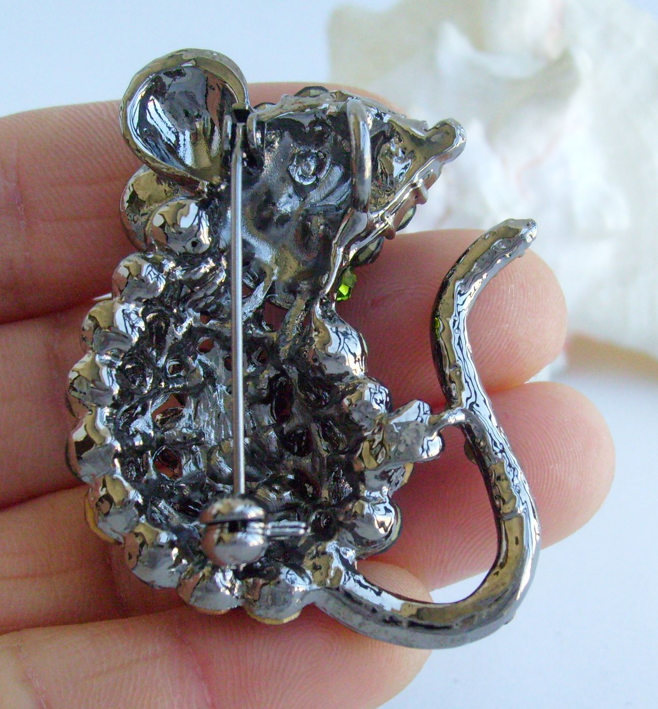 Sindary Unique Rhinestone Crystal Mouse Rat Animal Brooch Pin Pendant BP03276 (Black-Tone Black Gray) 20g