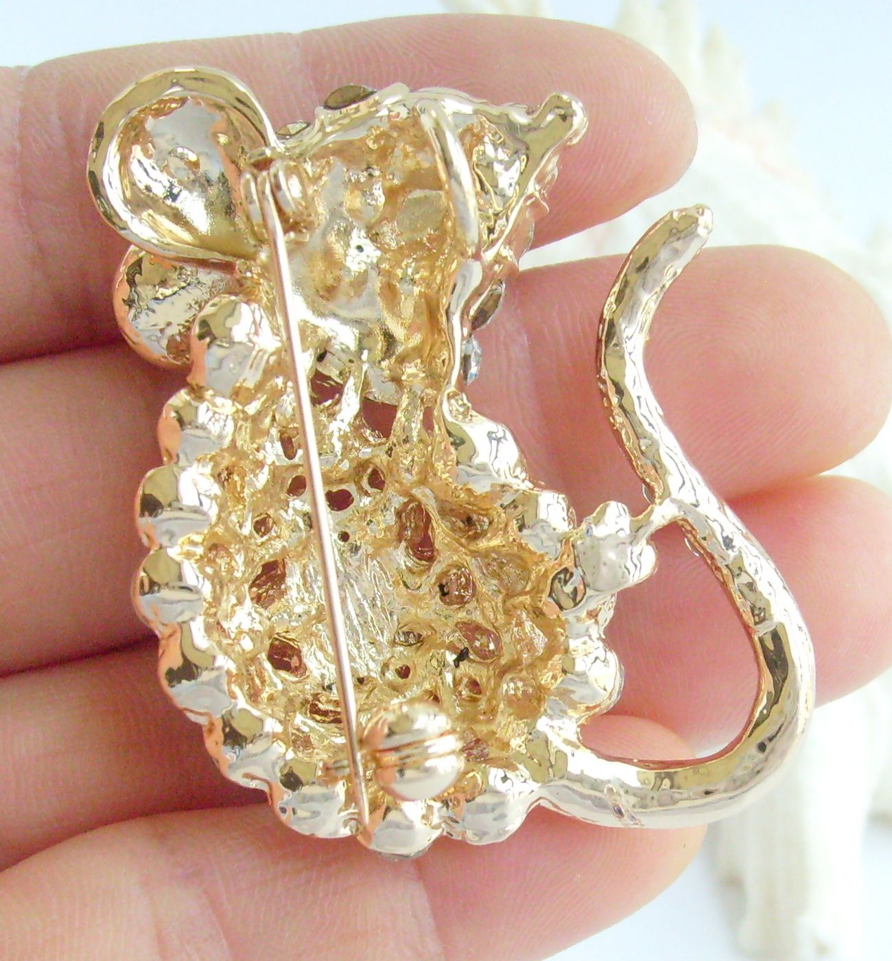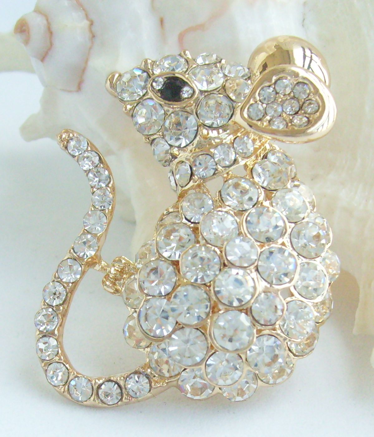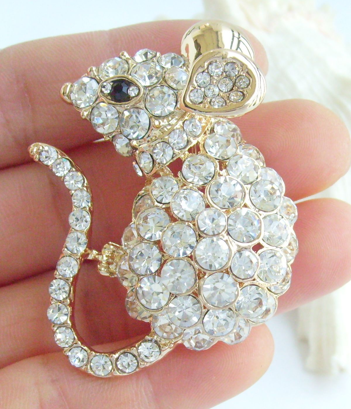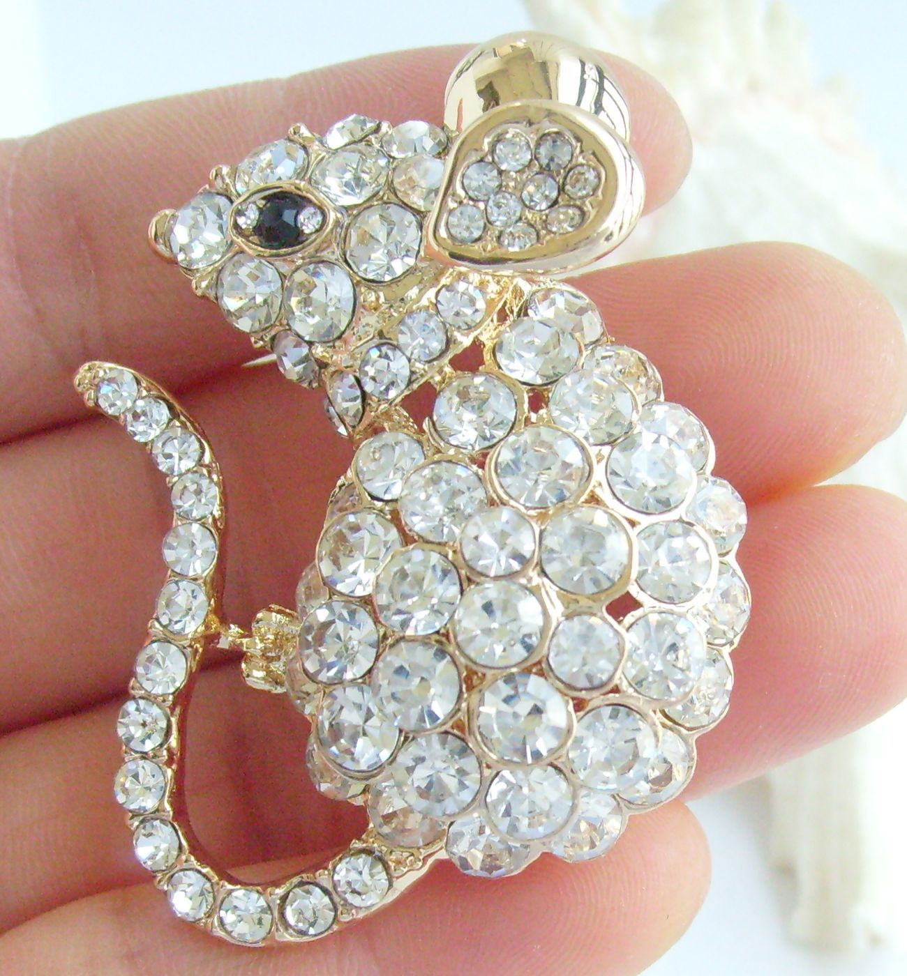 Sindary Unique Rhinestone Crystal Mouse Rat Animal Brooch Pin Pendant BP03276 (Gold-Tone Clear) 20g