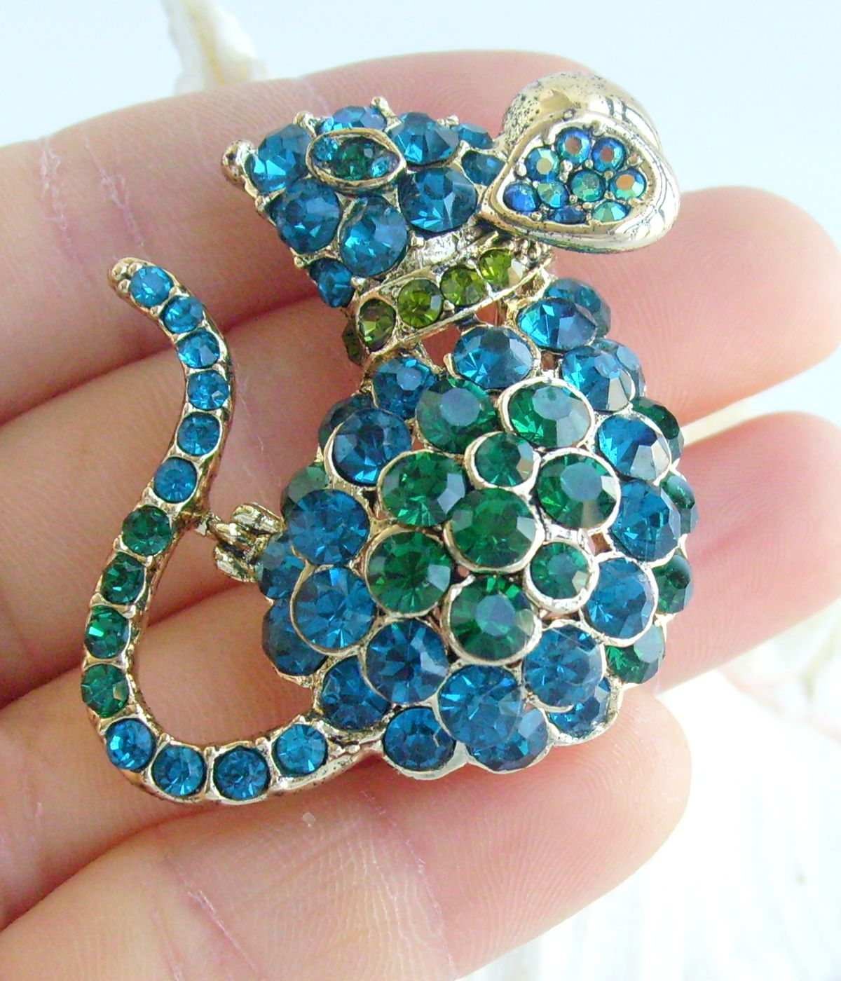 Sindary Unique Rhinestone Crystal Mouse Rat Animal Brooch Pin Pendant BP03276 (Gold-Tone Turquoise Green) 20g