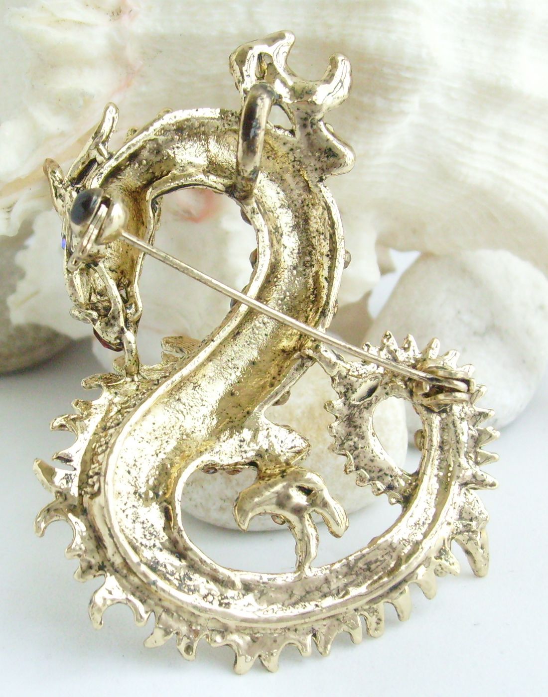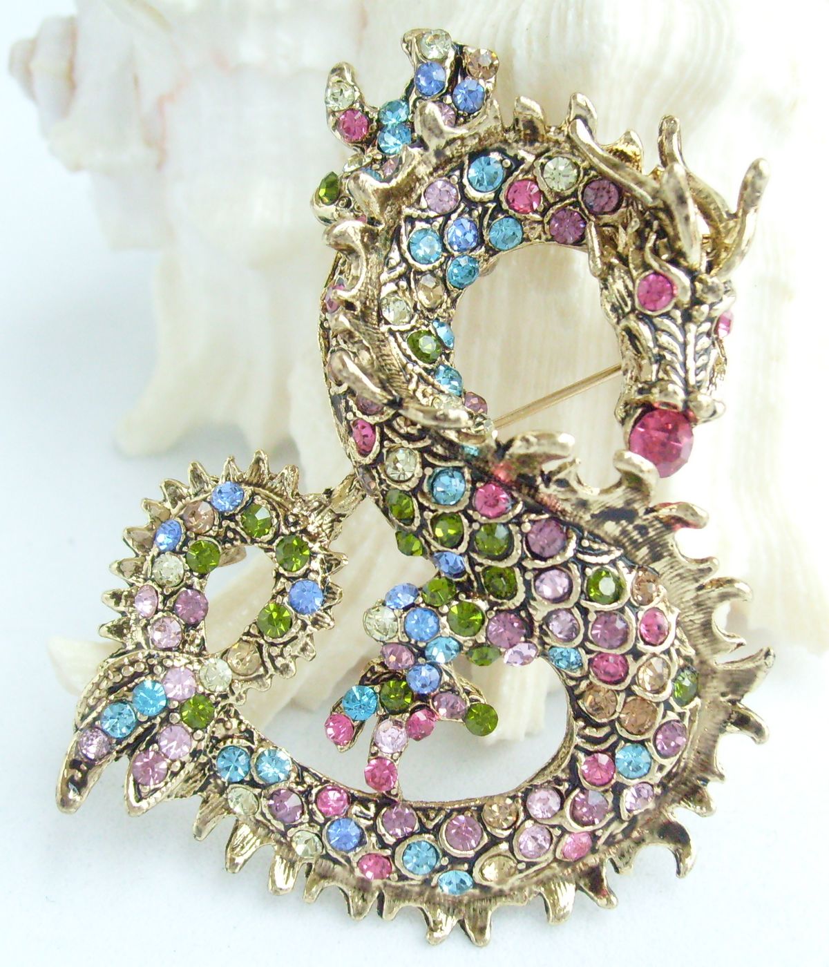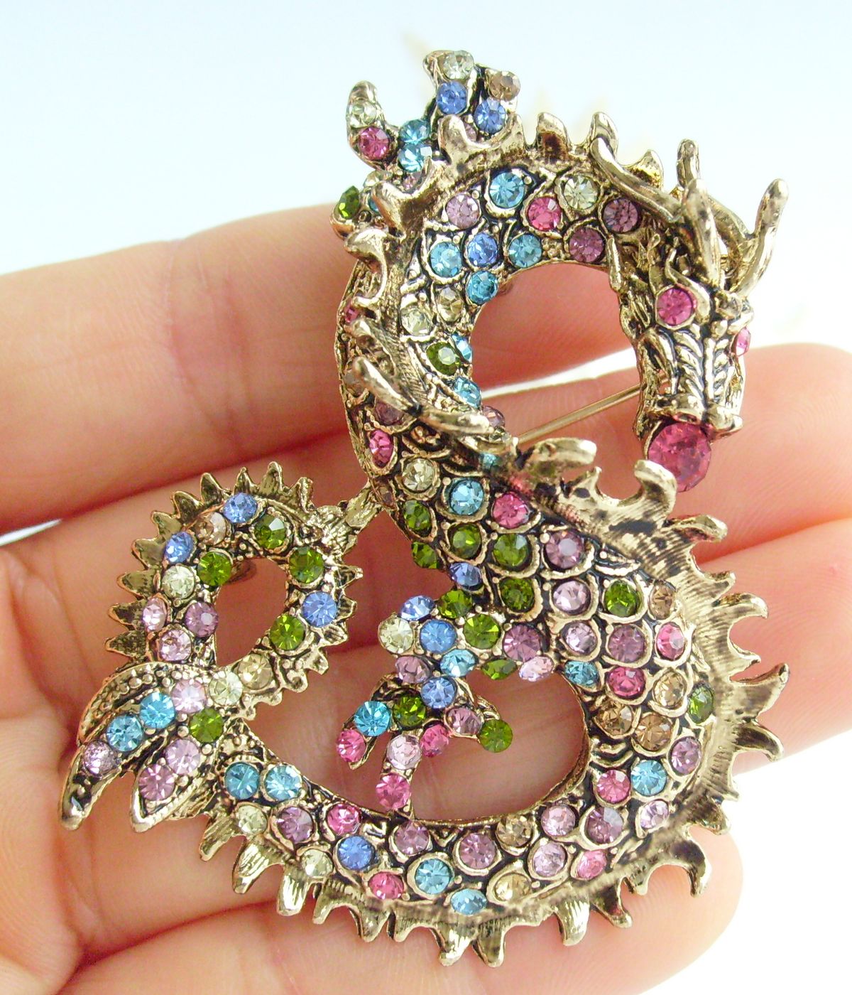 Sindary Unique Rhinestone Crystal Dragon Animal Brooch Pin Pendant BP02980 (Gold-Tone Multicolor) 20g