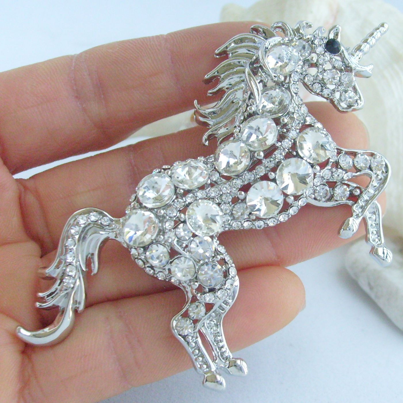 Sindary Unique Rhinestone Crystal Animal Horse Brooch Pin Pendant BP06172 (Silver-Tone Clear) 20g