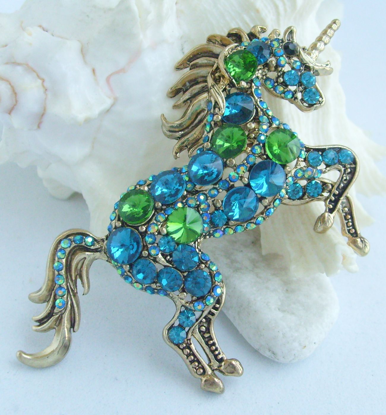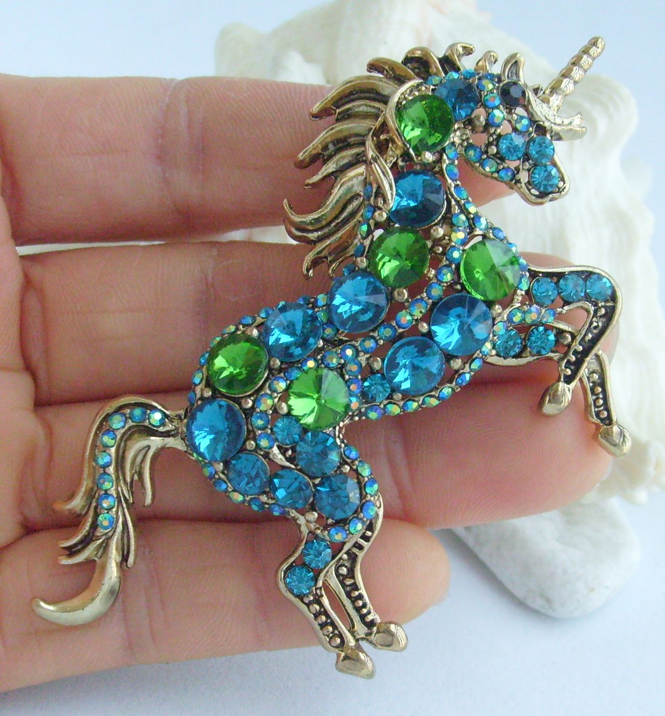 Sindary Unique Rhinestone Crystal Animal Horse Brooch Pin Pendant BP06172 (Gold-Tone Turquoise Green) 20g