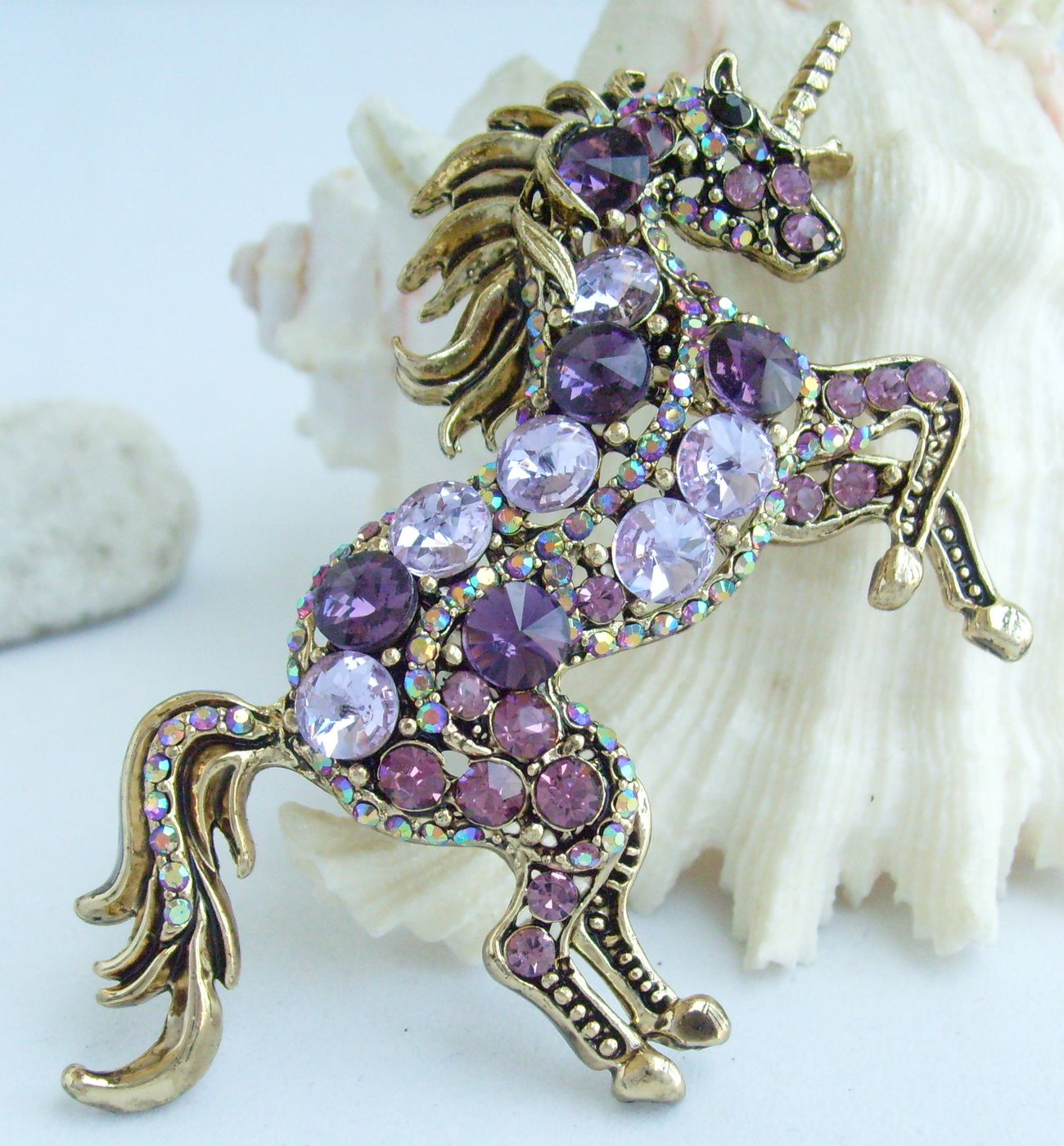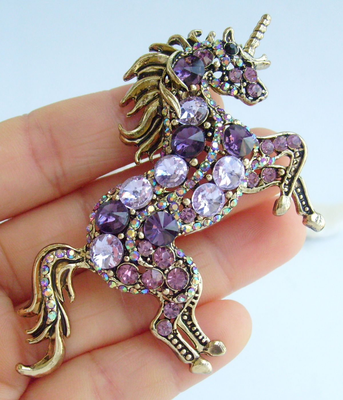 Sindary Unique Rhinestone Crystal Animal Horse Brooch Pin Pendant BP06172 (Gold-Tone Purple) 20g