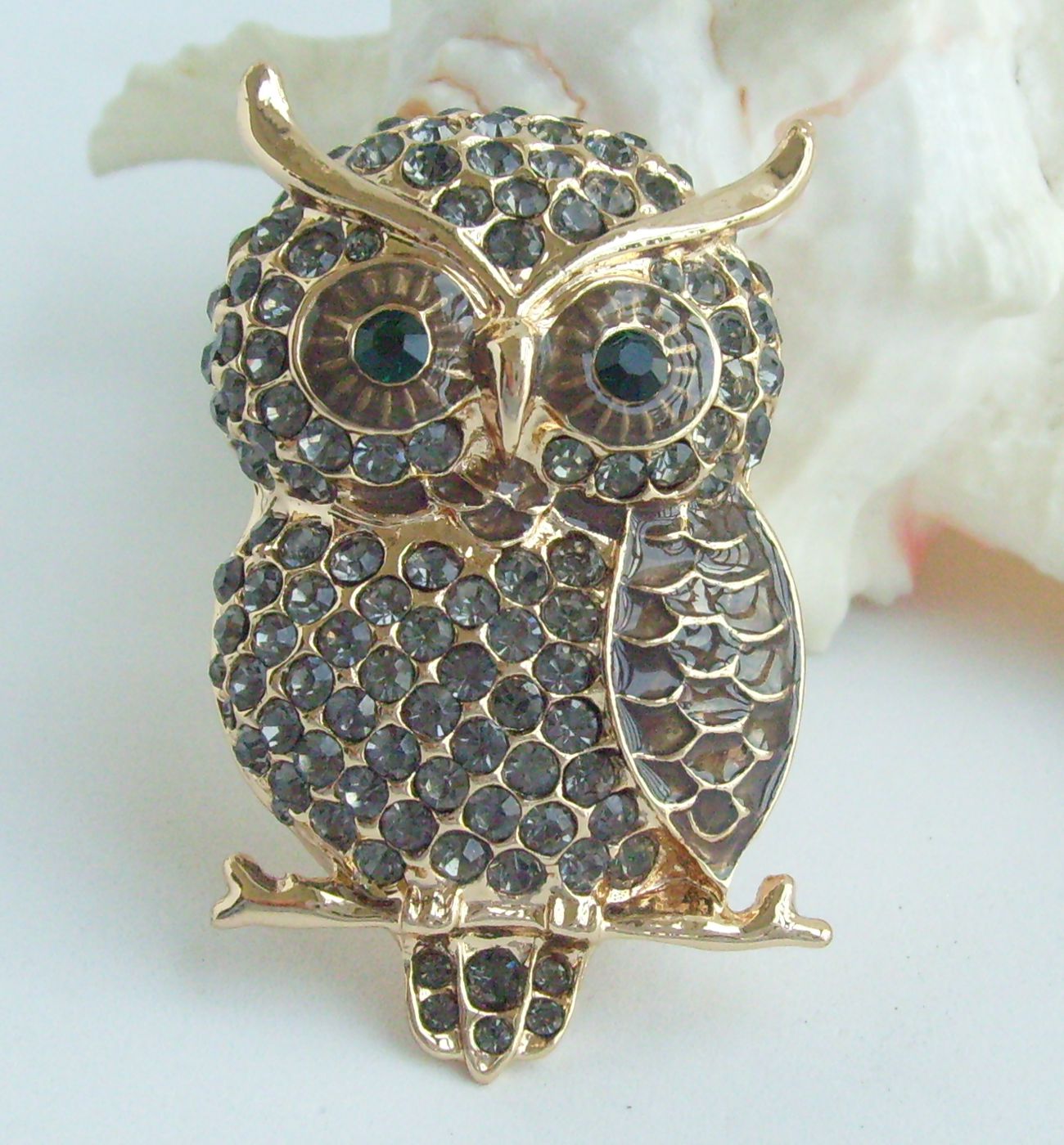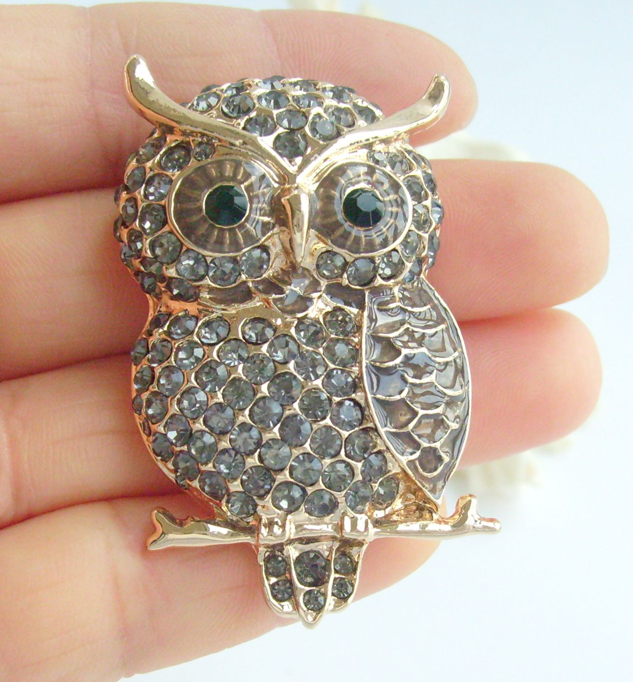 Sindary Unique Animal Owl Brooch Pin Pendant Rhinestone Crystal BP03502 (Gold-Tone Gray) 20g