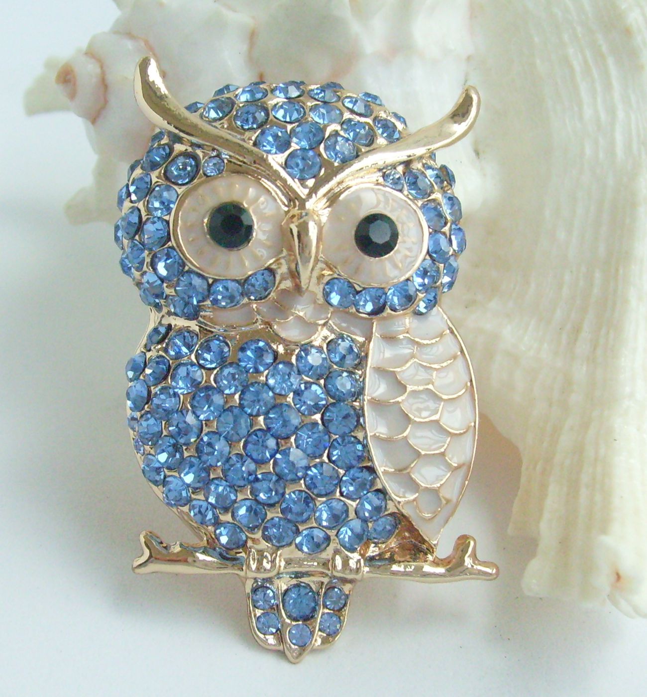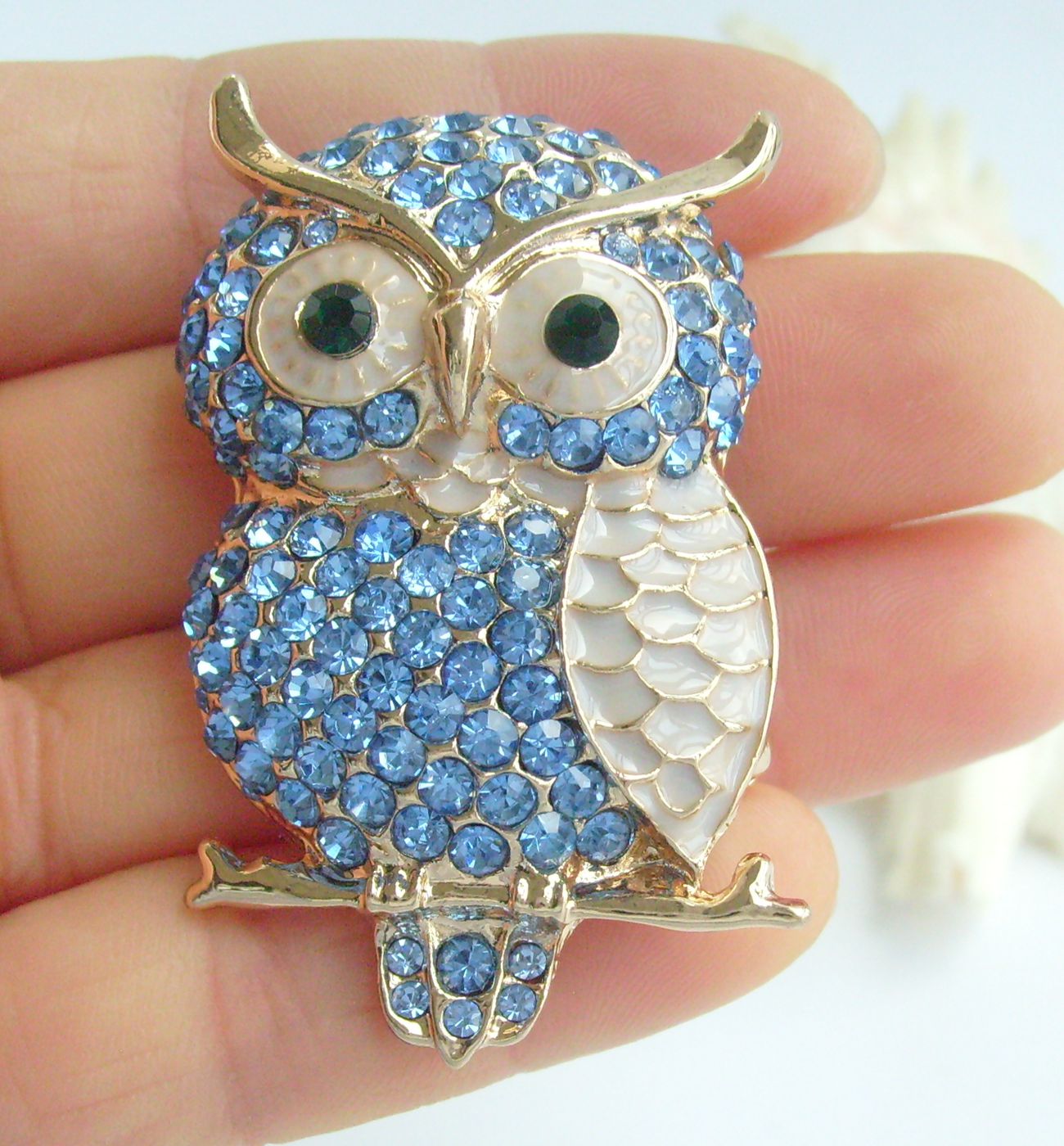 Sindary Unique Animal Owl Brooch Pin Pendant Rhinestone Crystal BP03502 (Gold-Tone Blue) 20g