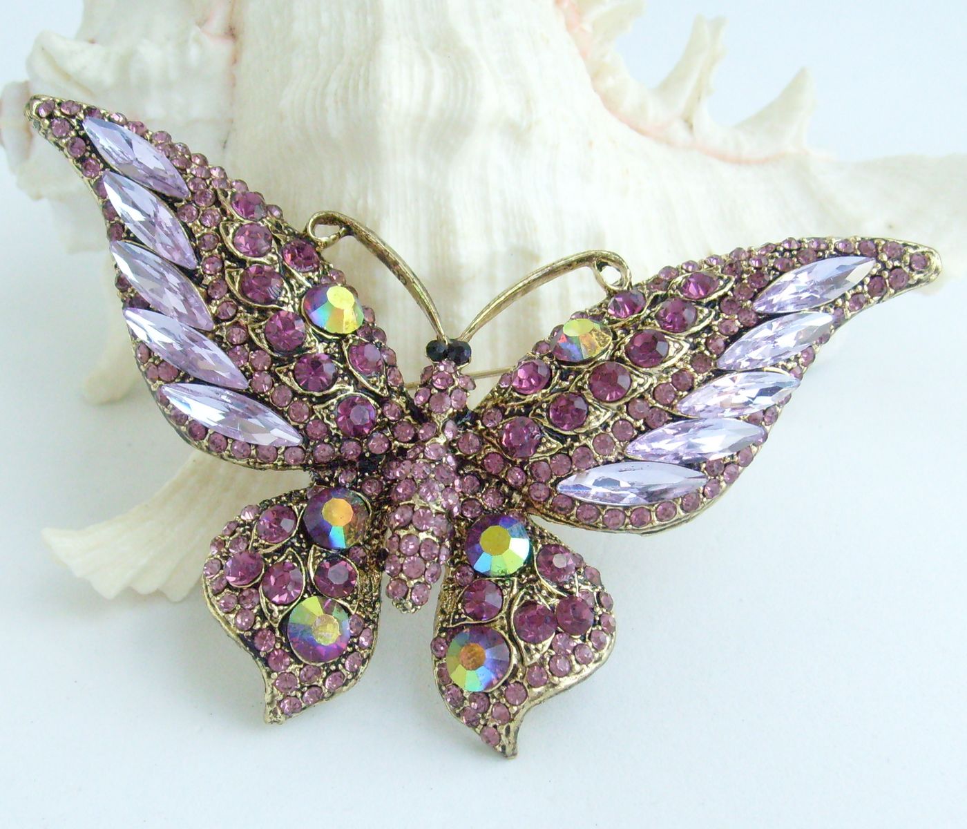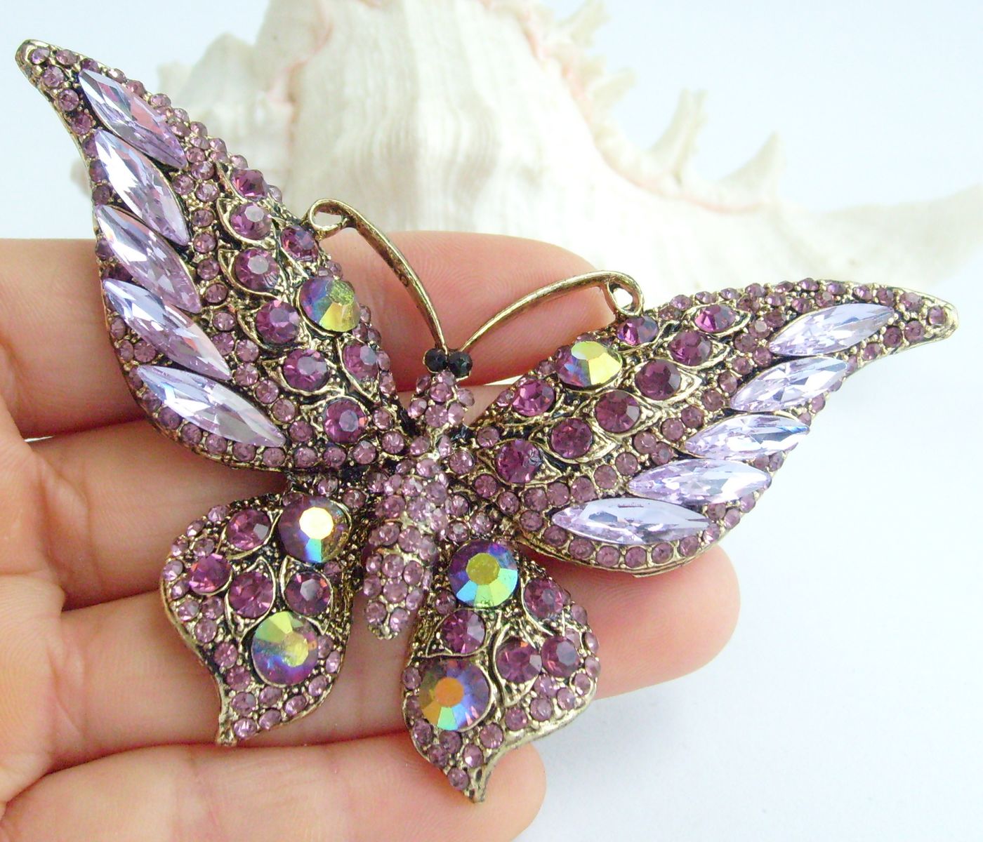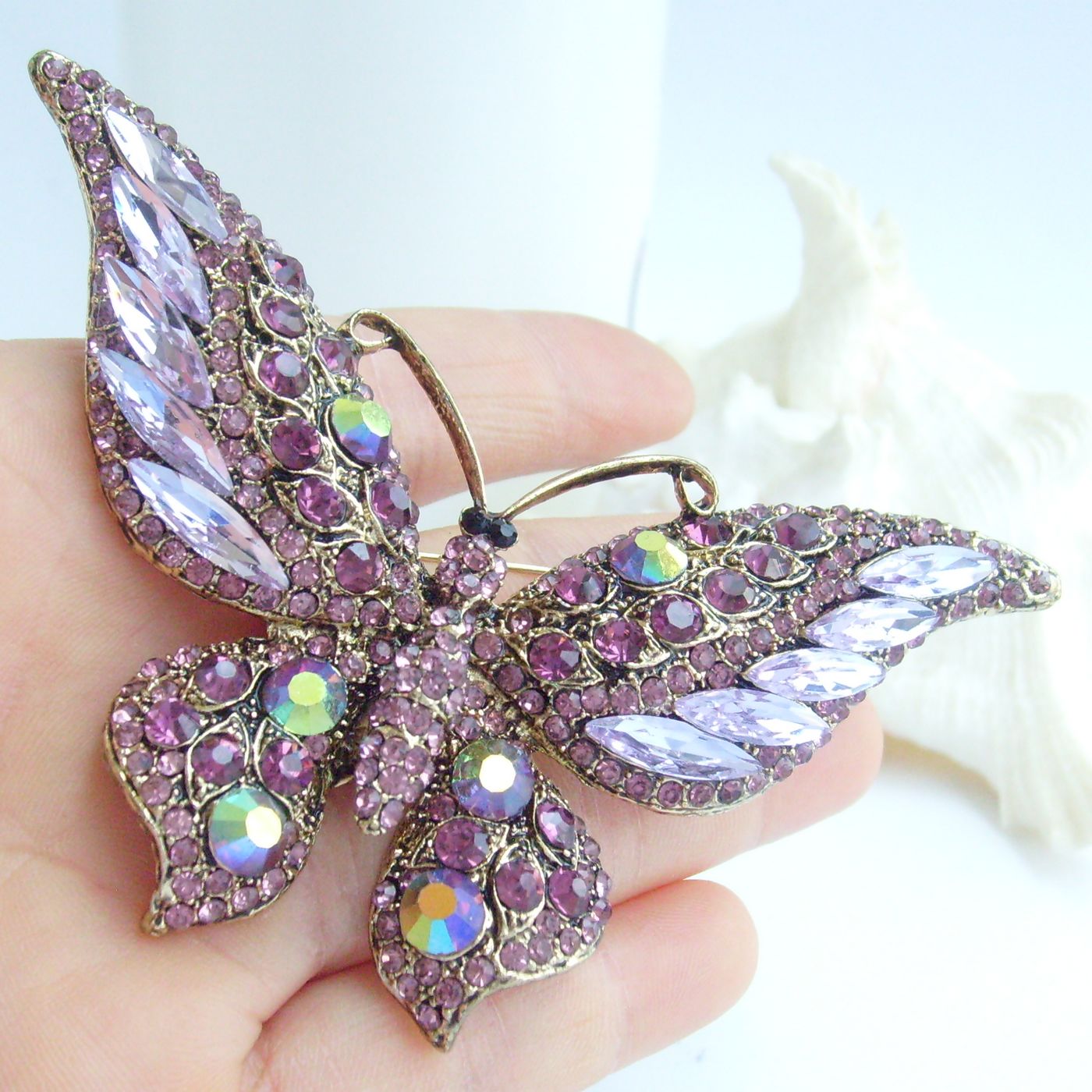Sindary Pretty Butterfly Brooch Pin Pendant Rhinestone Crystal Rhinestone Crystal BP04538 (Gold-Tone Purple) 40g