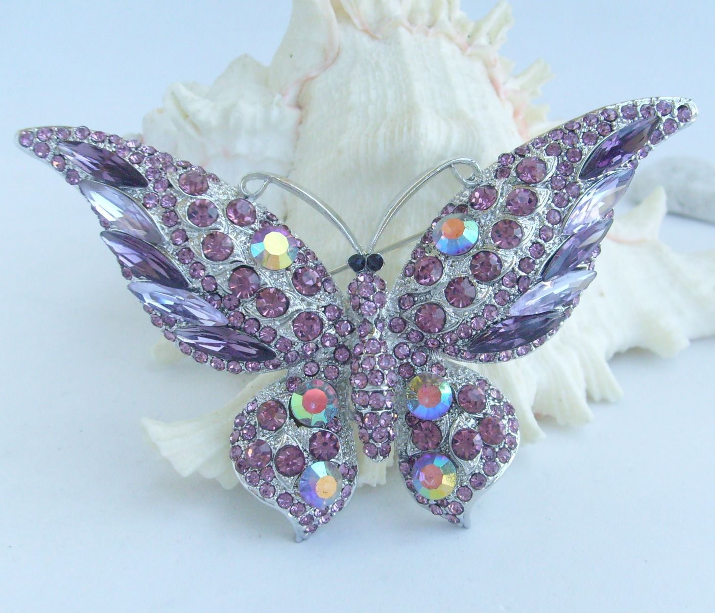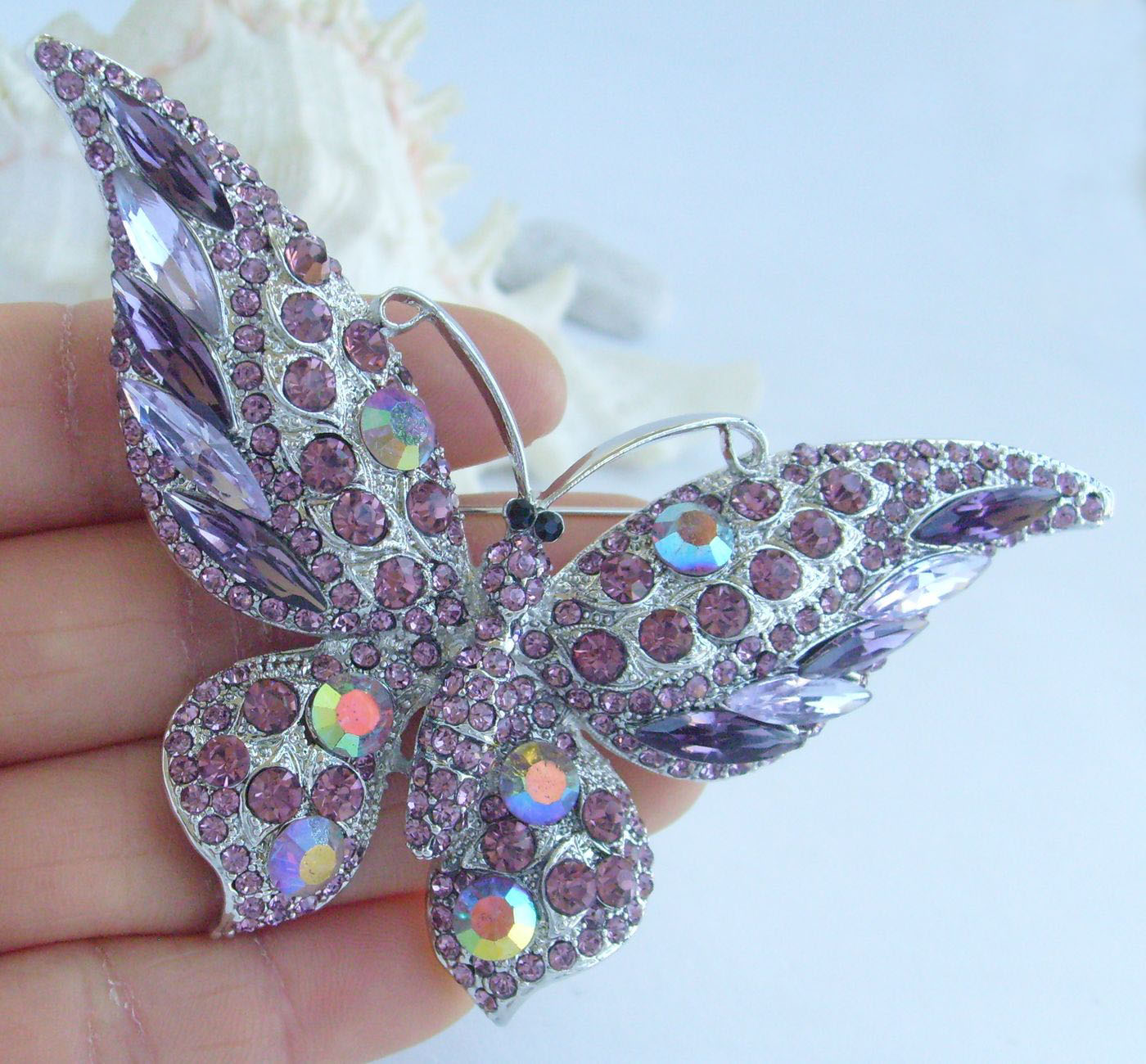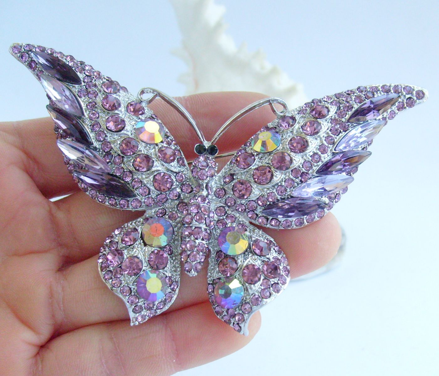 Sindary Pretty Butterfly Brooch Pin Pendant Rhinestone Crystal Rhinestone Crystal BP04538 (Silver-Tone Purple) 40g