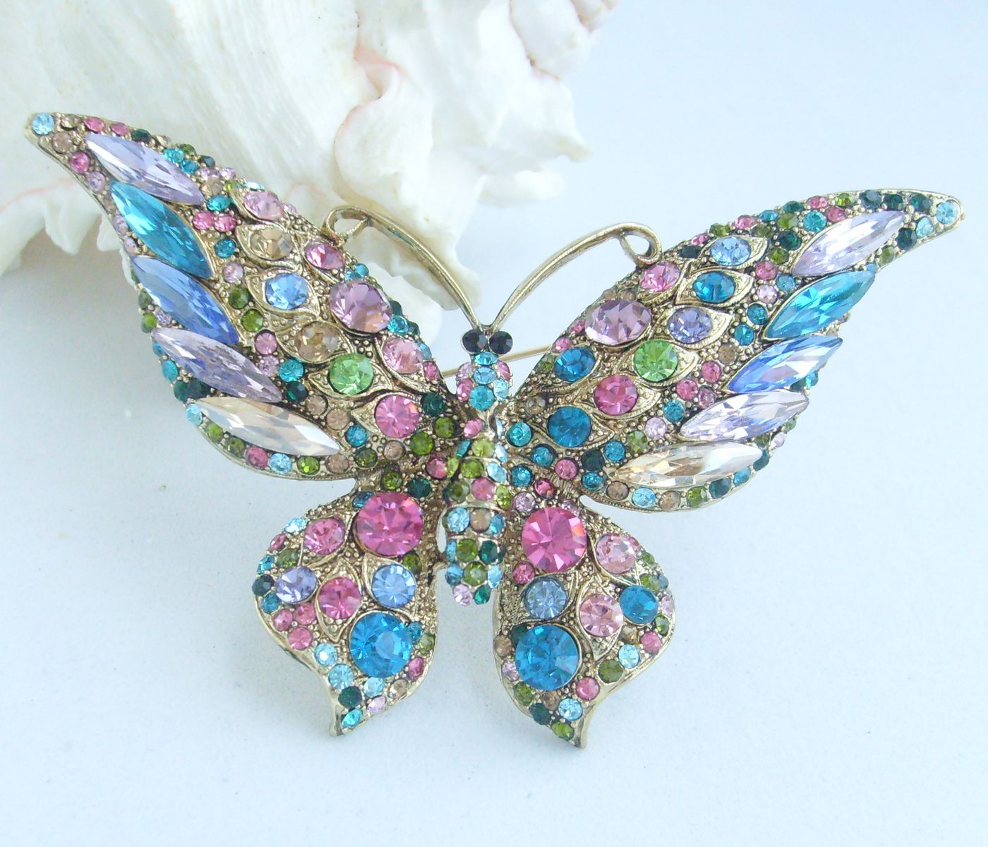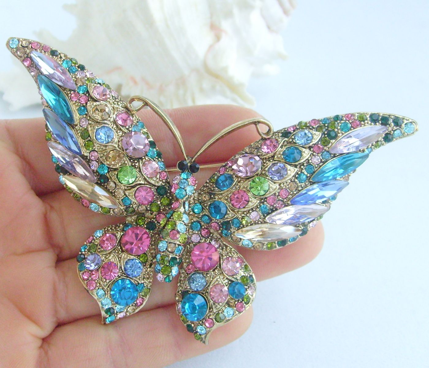 Sindary Pretty Butterfly Brooch Pin Pendant Rhinestone Crystal Rhinestone Crystal BP04538 (Gold-Tone Multicolor) 40g