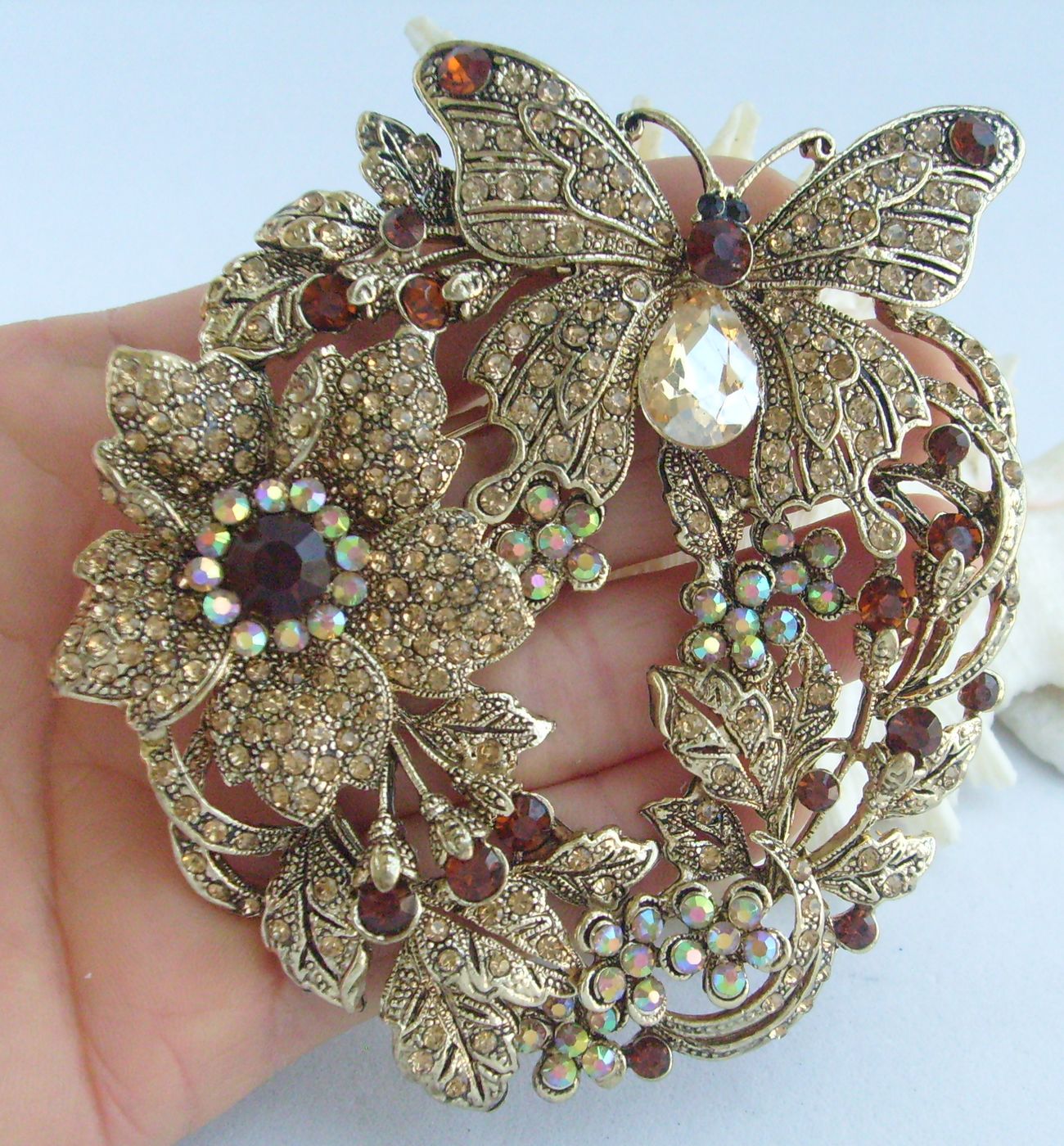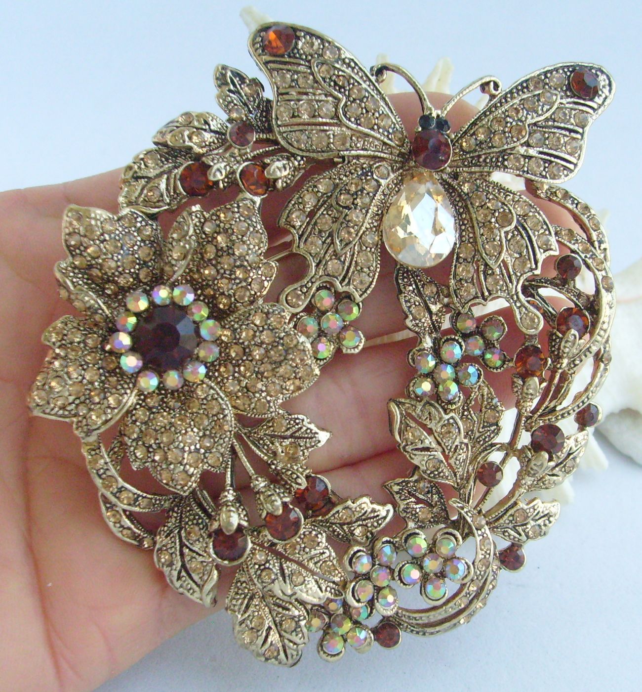 Sindary Charming Butterfly Flower Brooch Pin Pendant Rhinestone Crystal BP04489 (Gold-Tone Topaz) 65g