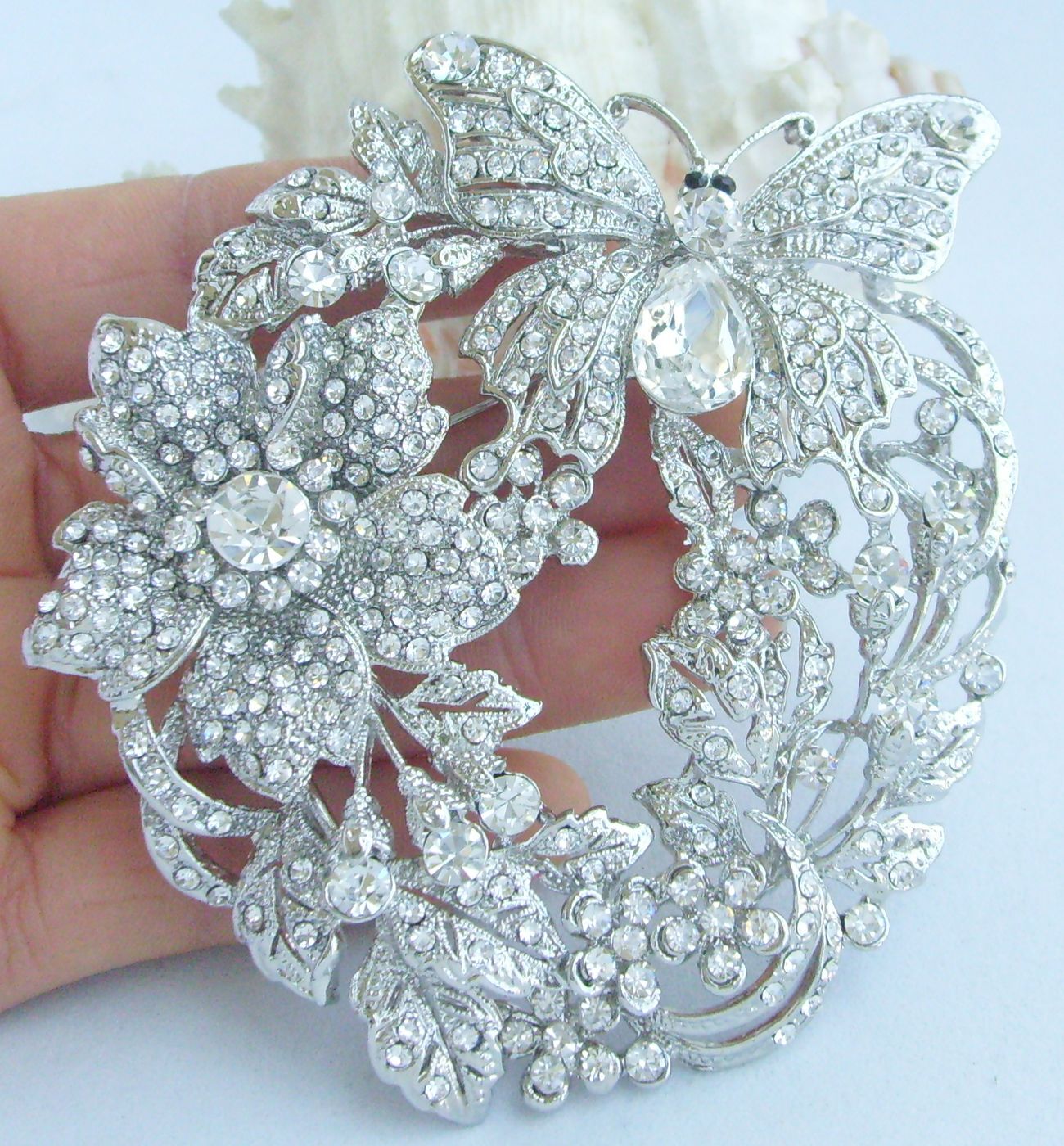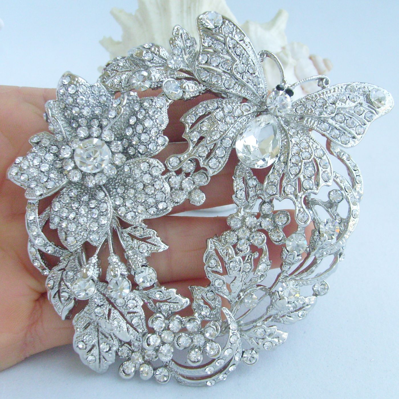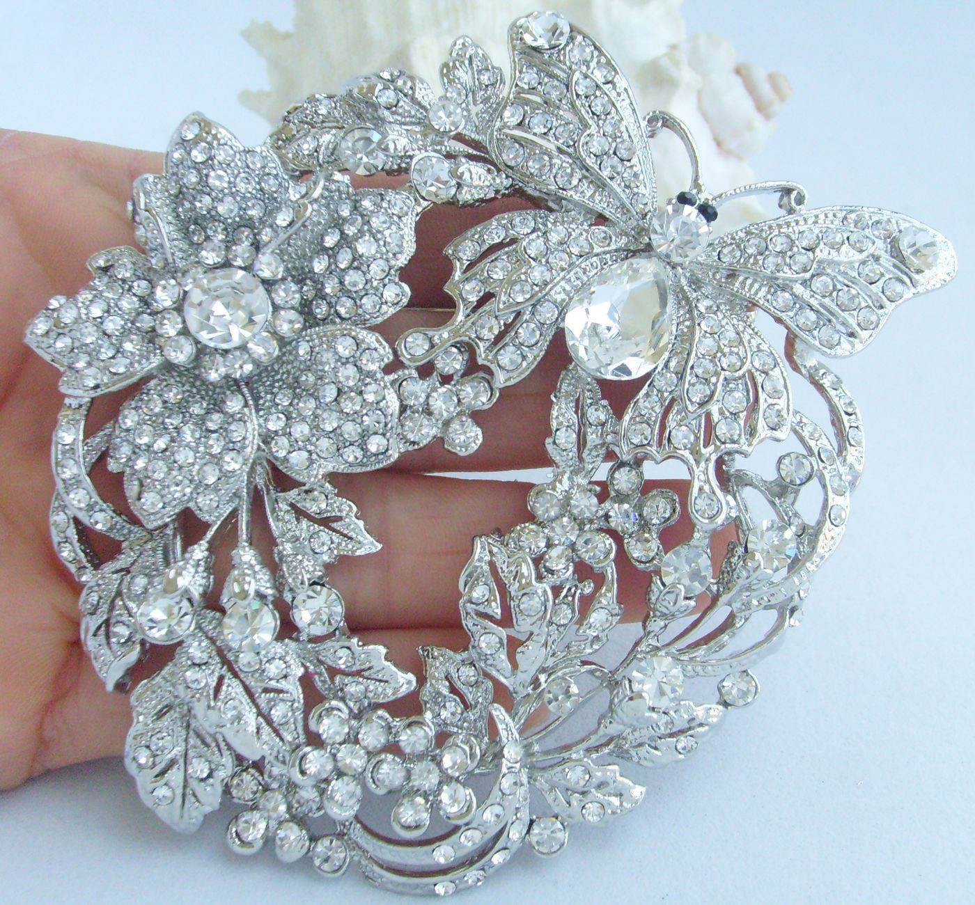 Sindary Charming Butterfly Flower Brooch Pin Pendant Rhinestone Crystal BP04489 (Silver-Tone Clear) 65g