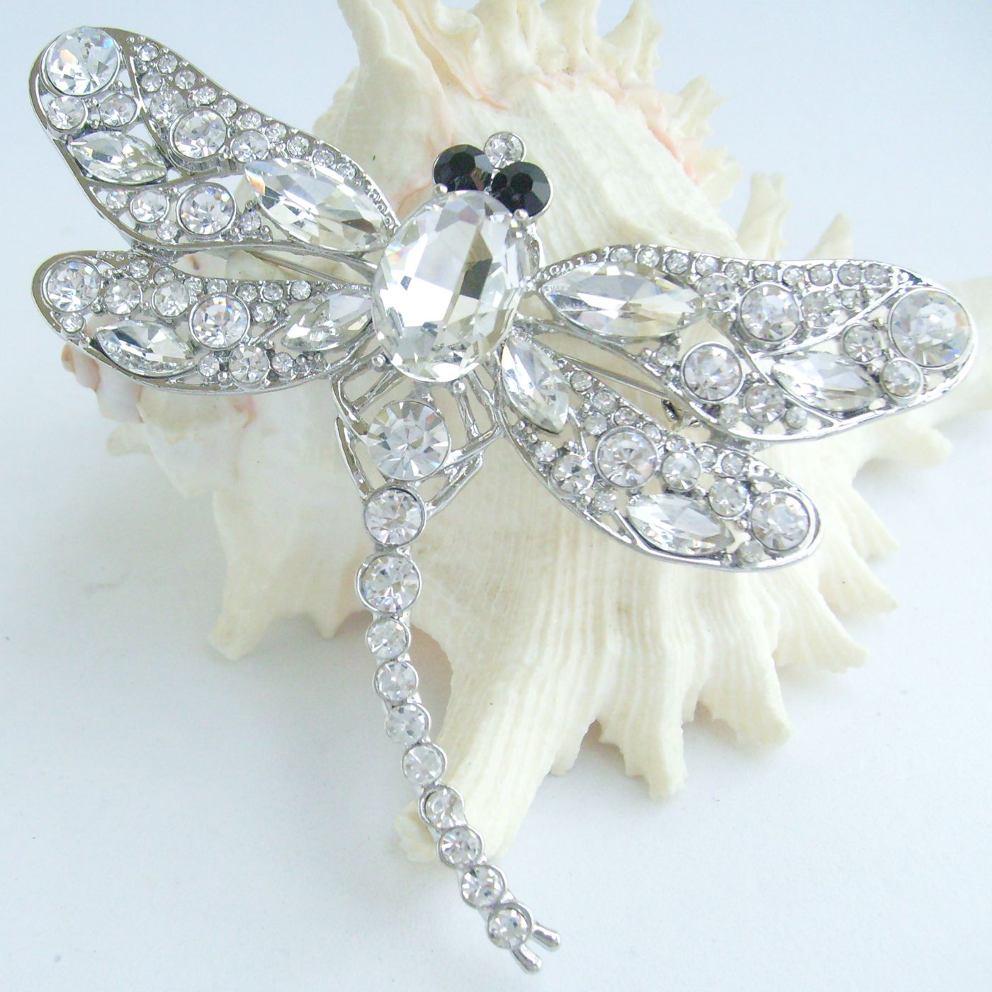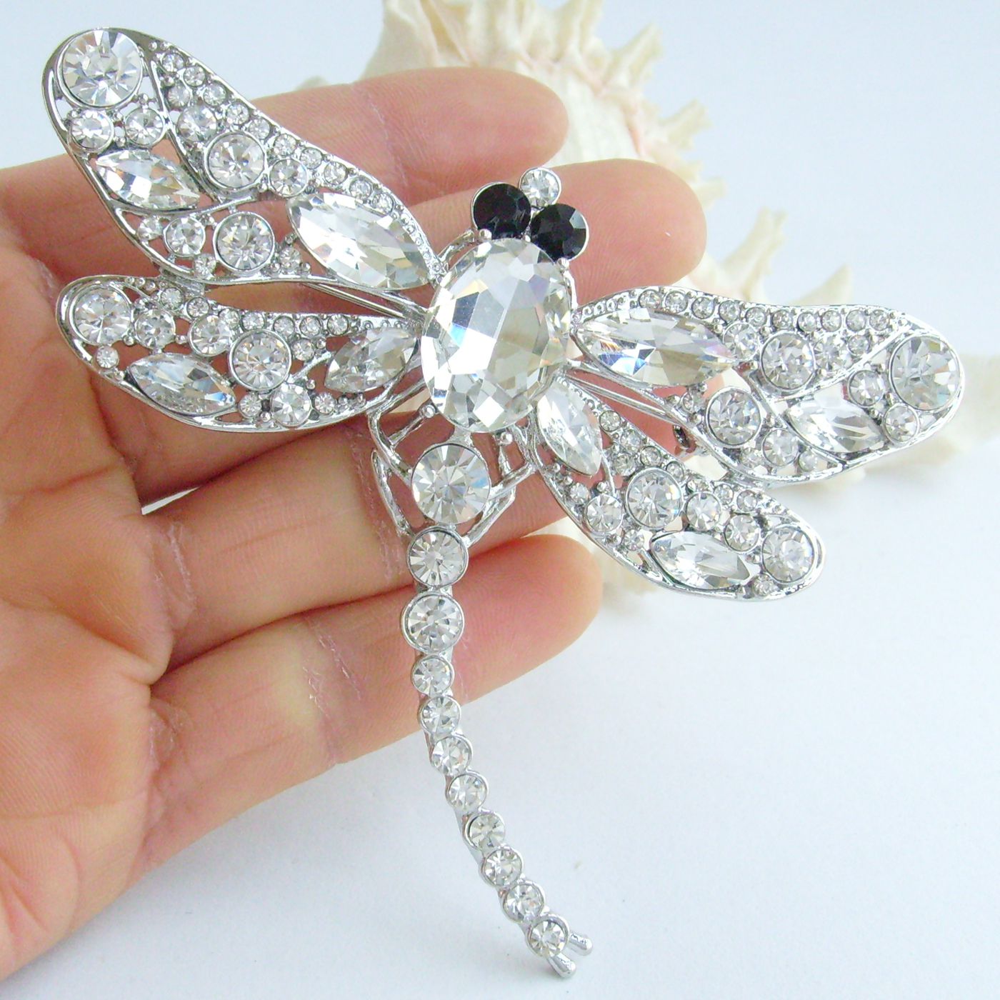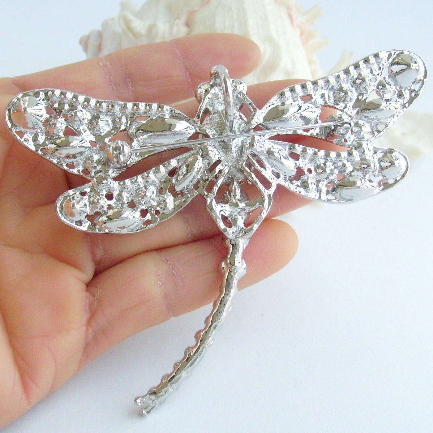 Sindary Pretty Insect Dragonfly Brooch Pin Pendant Rhinestone Crystal BP05684 (Silver-Tone Clear) 40g