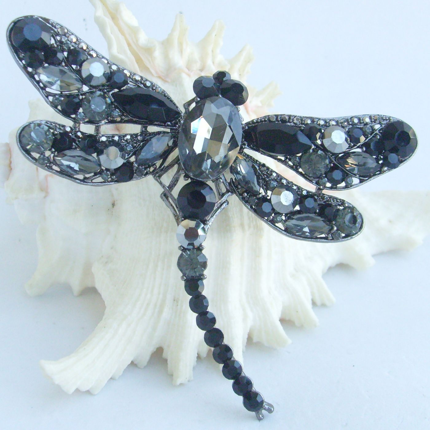 Sindary Pretty Insect Dragonfly Brooch Pin Pendant Rhinestone Crystal BP05684 (Black-Tone Black Gray) 40g
