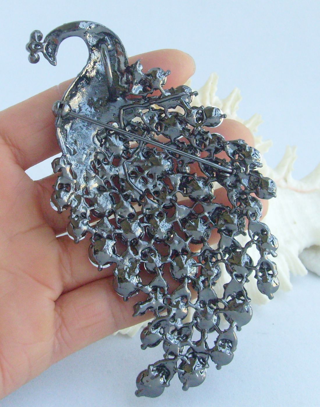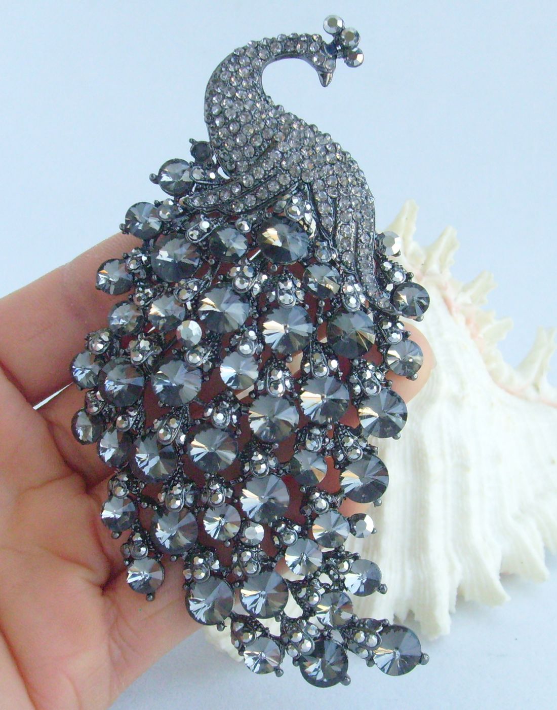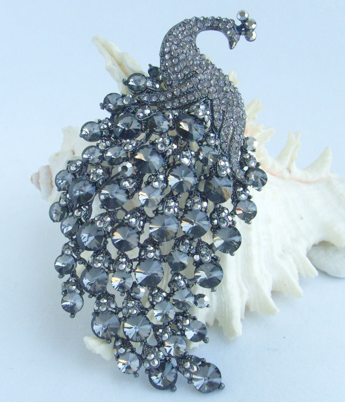 Sindary Elegant Crystal Bird Rhinestone Peacock Brooch Pin Pendant BP05651 (Black-Tone Black Gray) 50g