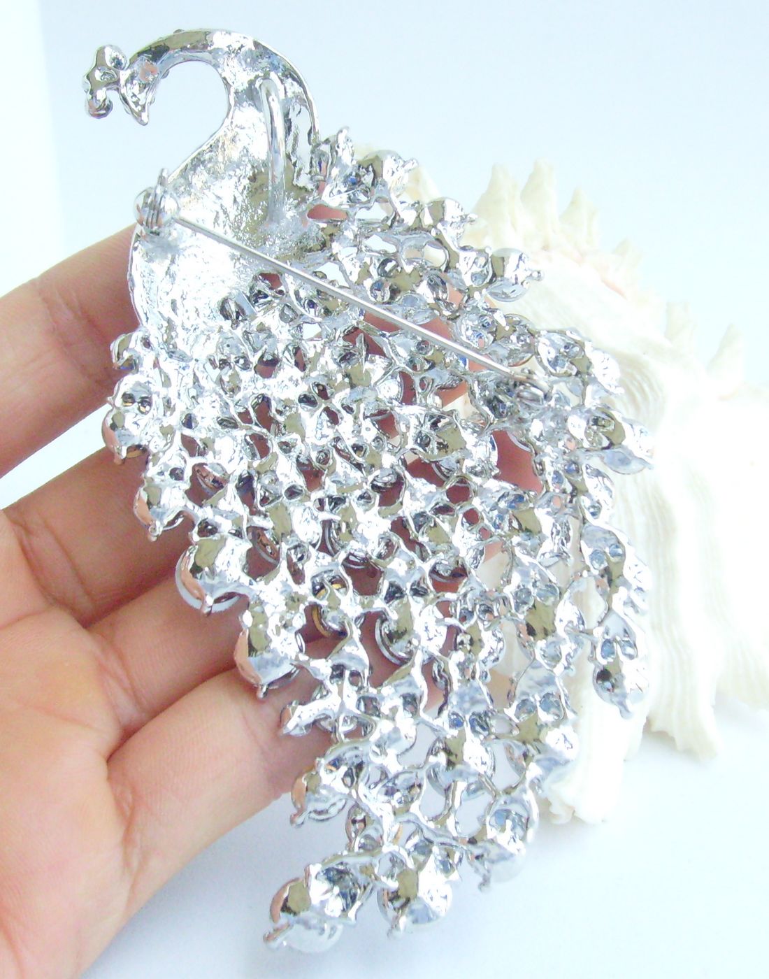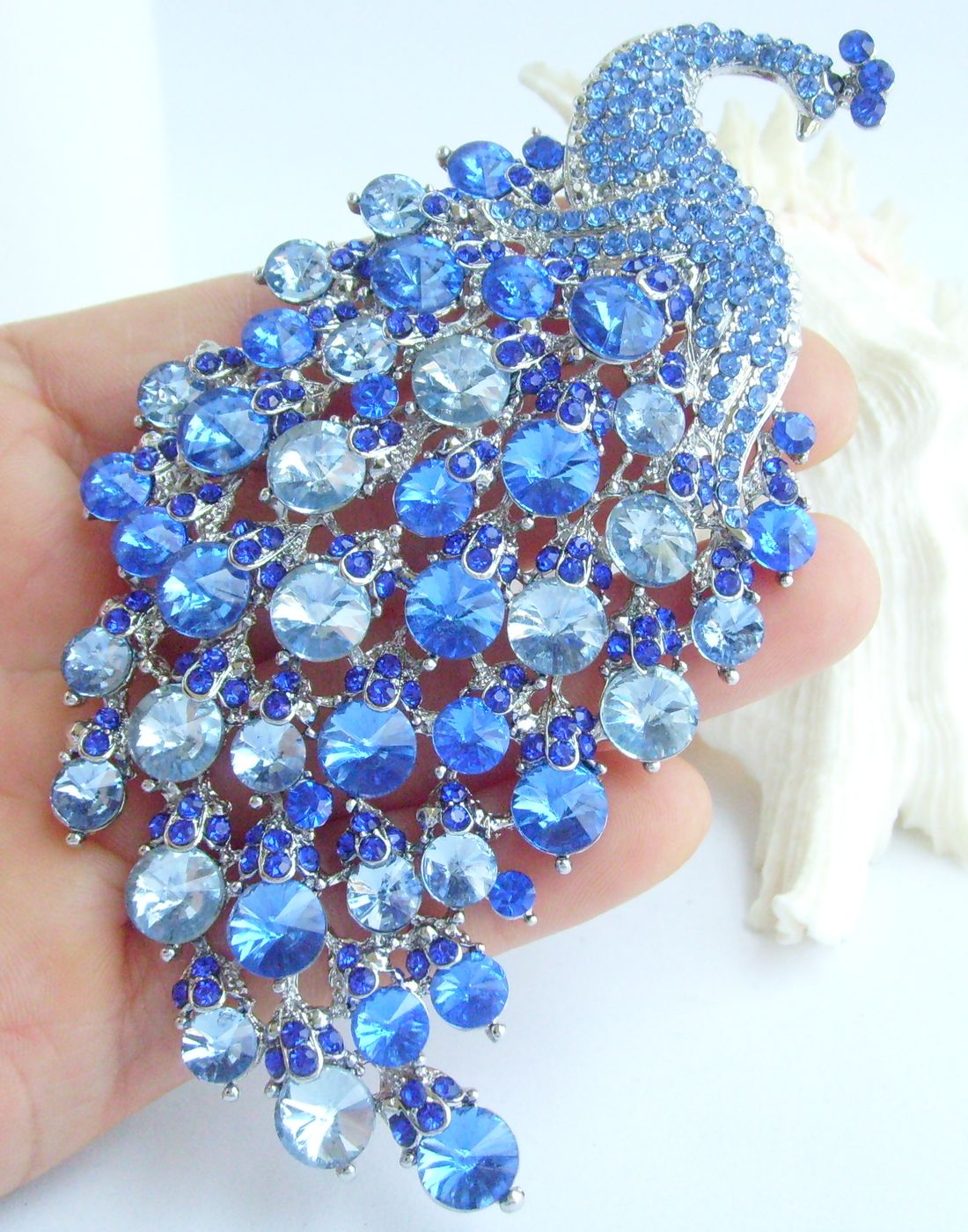 Sindary Elegant Crystal Bird Rhinestone Peacock Brooch Pin Pendant BP05651 (Silver-Tone Blue) 50g