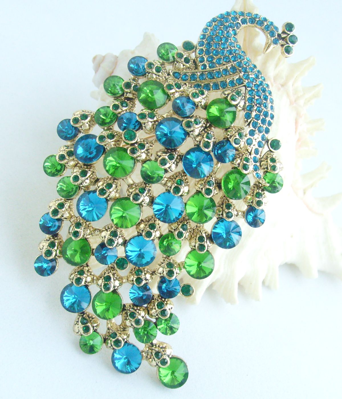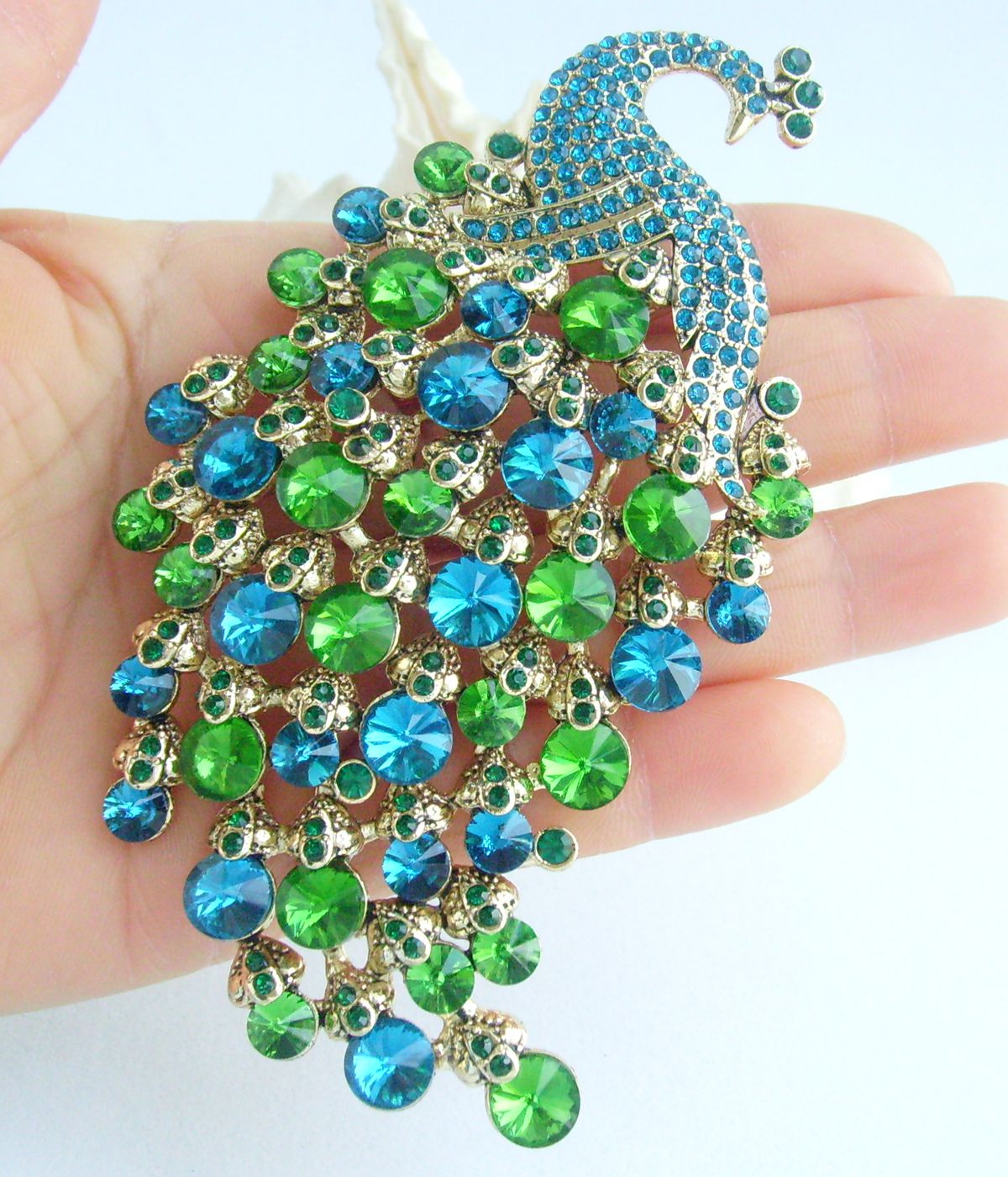 Sindary Elegant Crystal Bird Rhinestone Peacock Brooch Pin Pendant BP05651 (Gold-Tone Turquoise Green) 50g