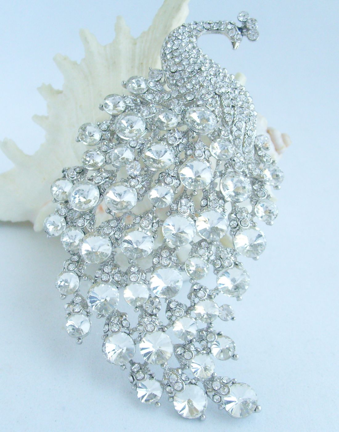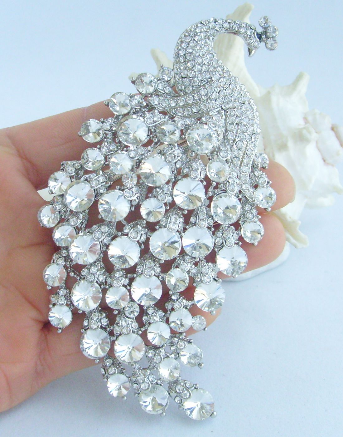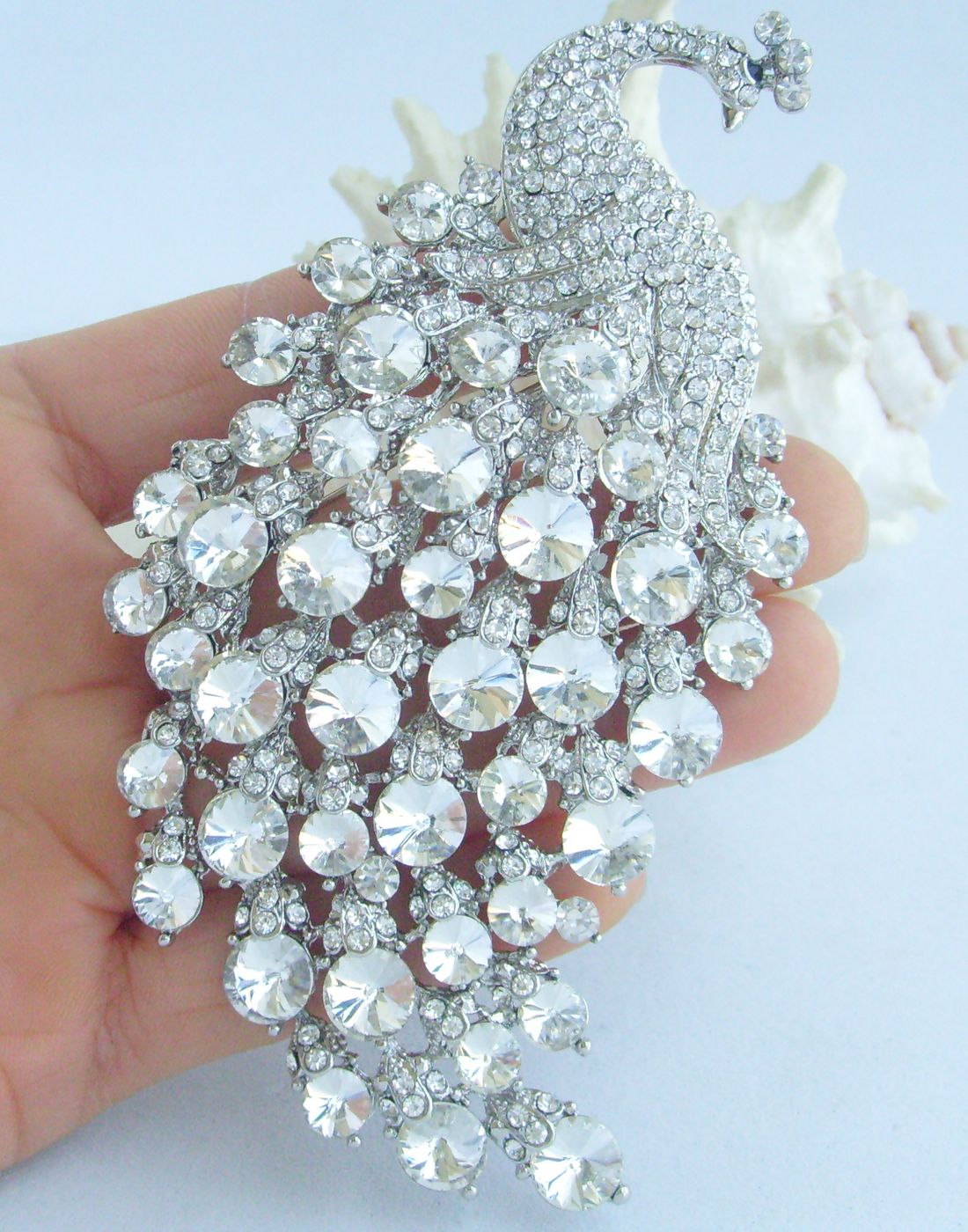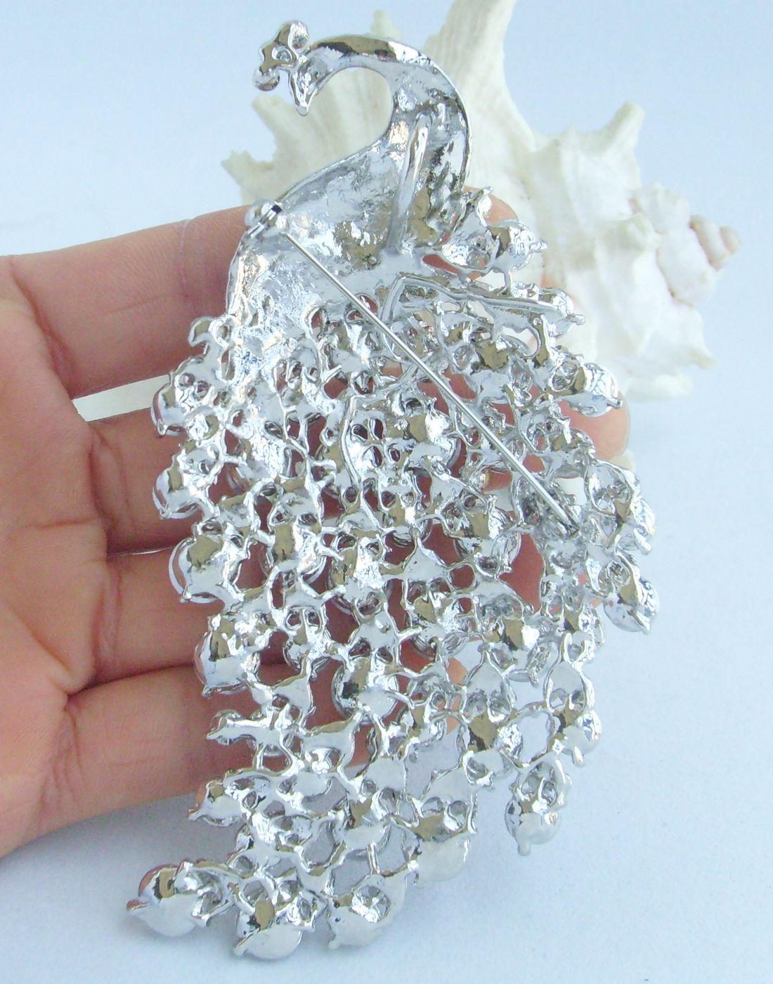 Sindary Elegant Crystal Bird Rhinestone Peacock Brooch Pin Pendant BP05651 (Silver-Tone Clear) 50g