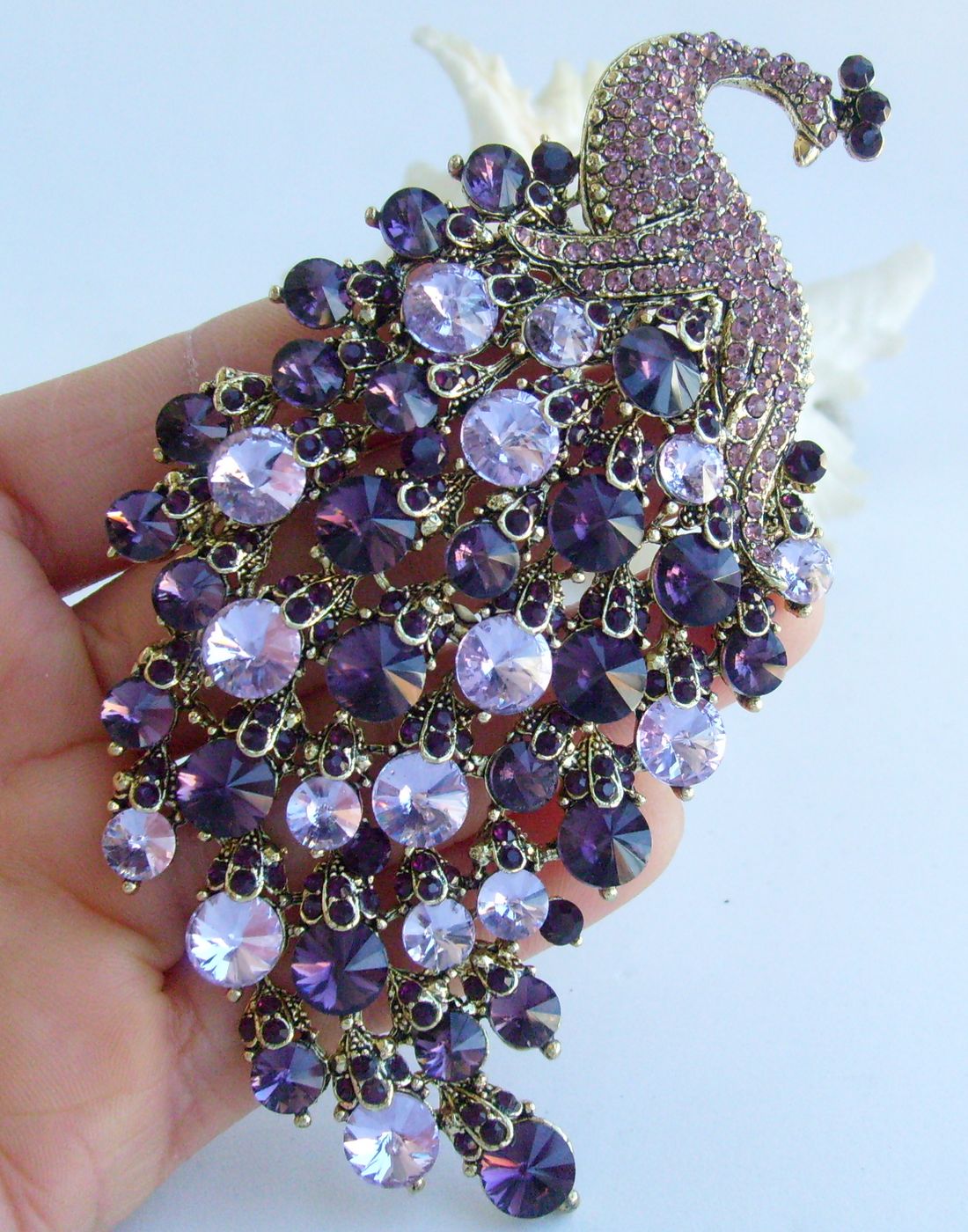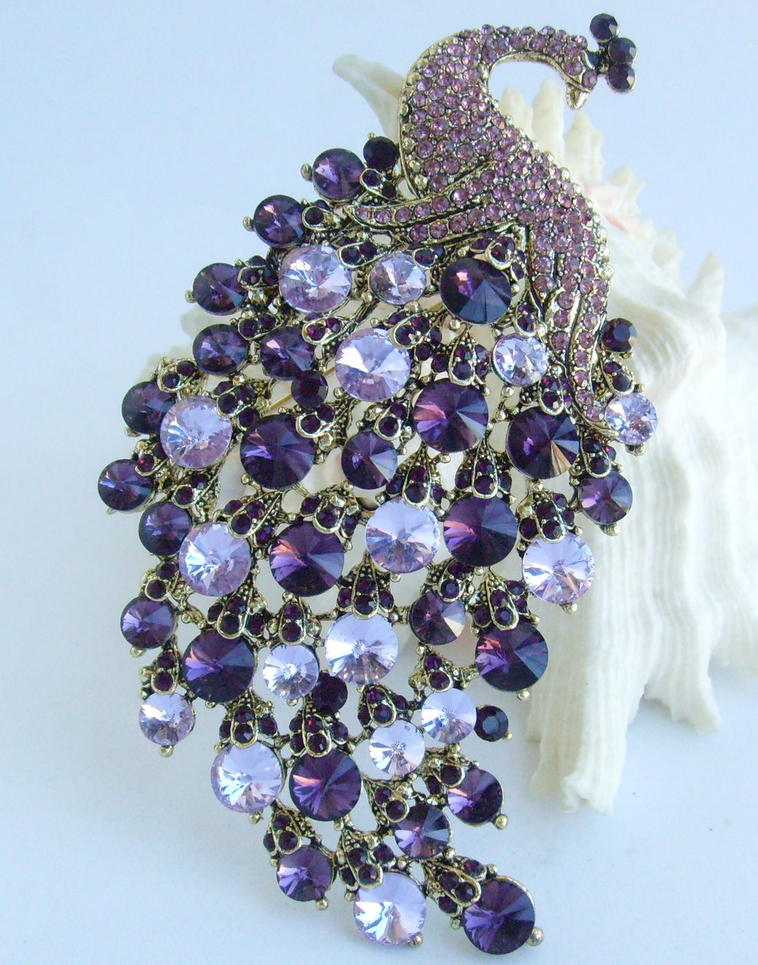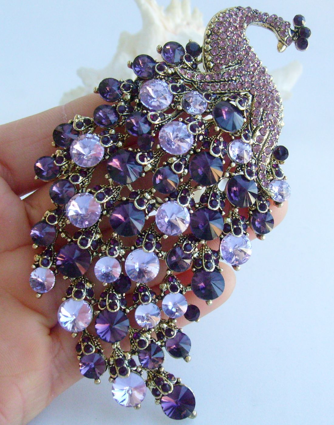 Sindary Elegant Crystal Bird Rhinestone Peacock Brooch Pin Pendant BP05651 (Gold-Tone Purple) 50g