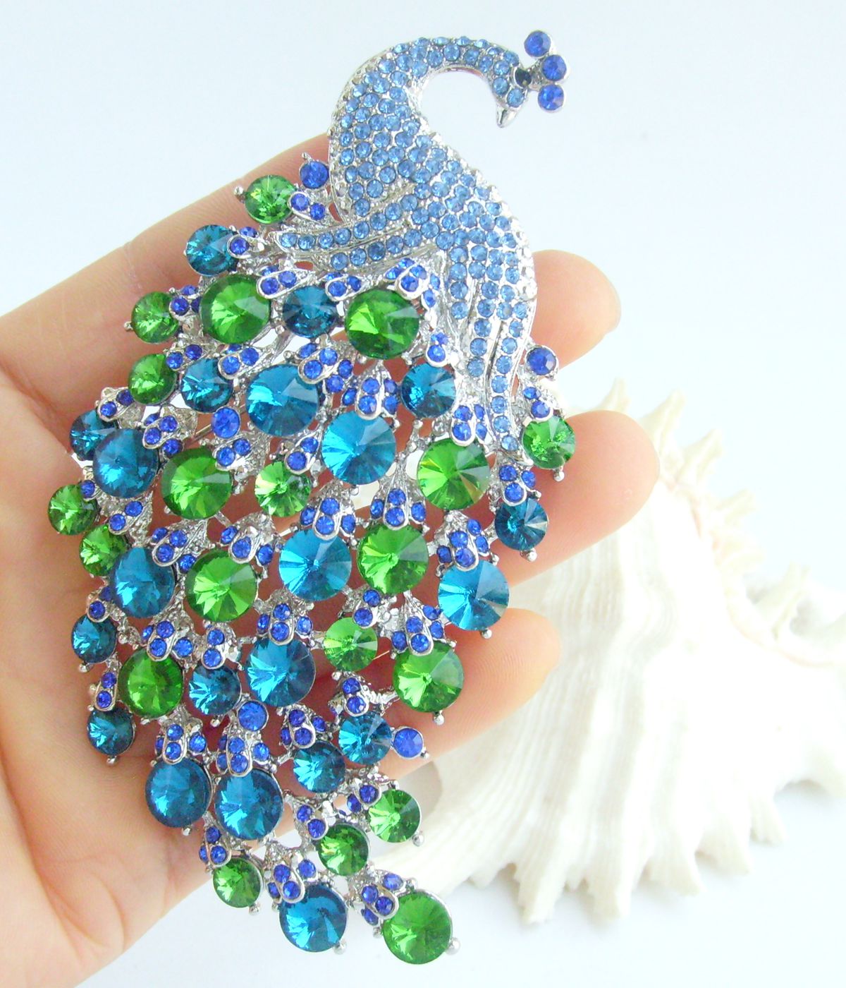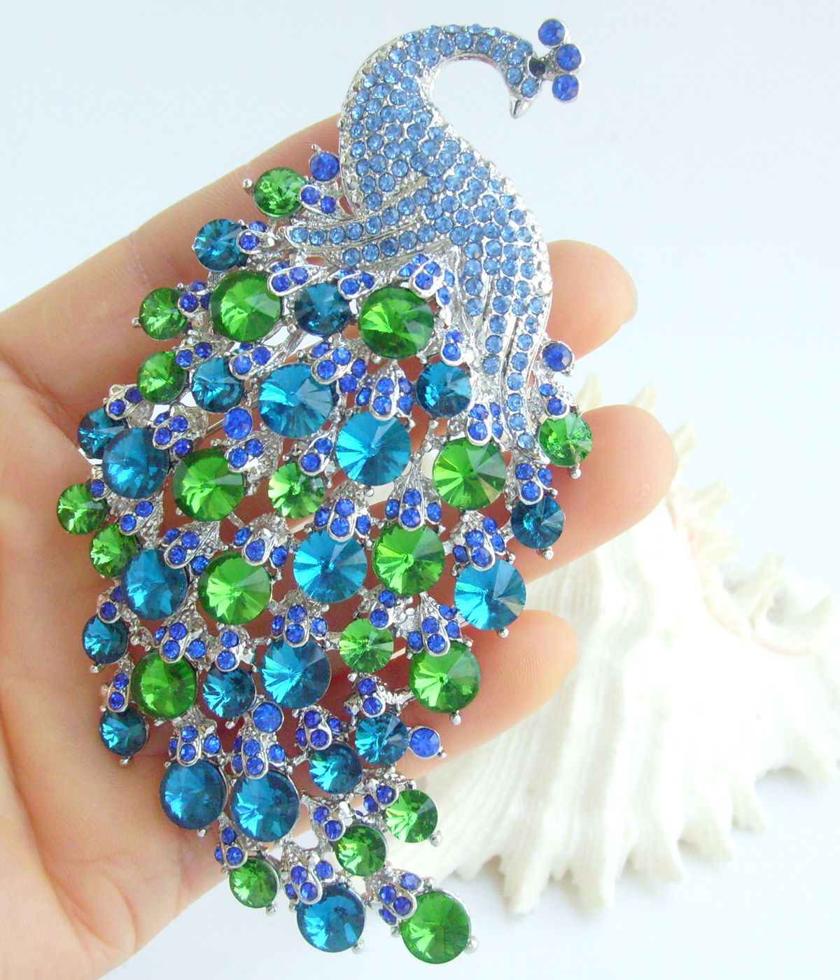 Sindary Elegant Crystal Bird Rhinestone Peacock Brooch Pin Pendant BP05651 (Silver-Tone Blue Green) 50g