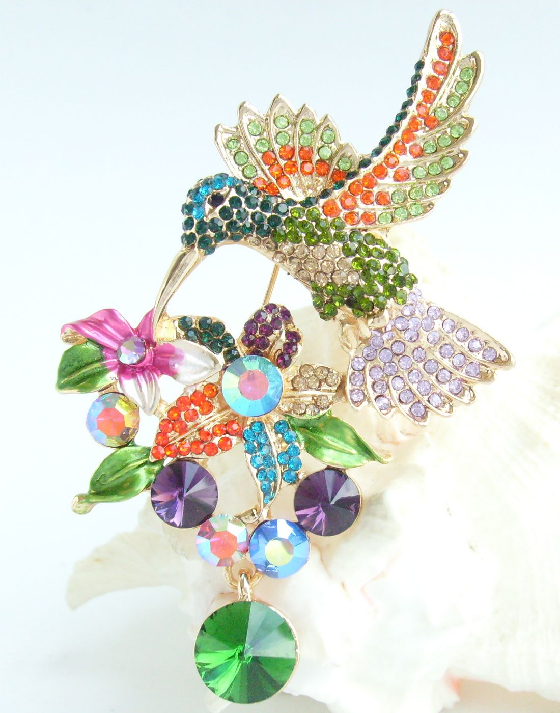 Sindary Rhinestone Hummingbird Brooch Pin Unique Animal Pendant BP06385 (Gold-Tone Green Multicolor) 30g