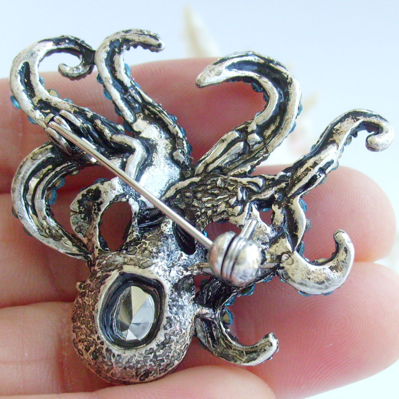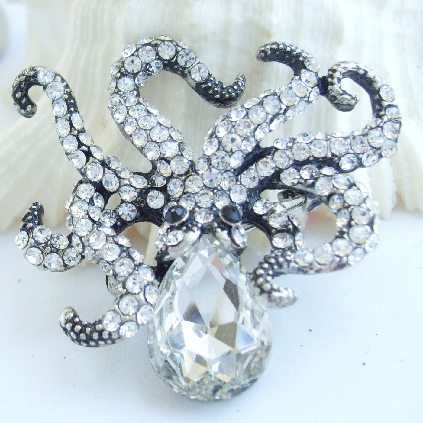 Sindary Unique Rhinestone Animal Octopus Brooch Pin Pendant BP083 (Black-Tone Clear) 20g