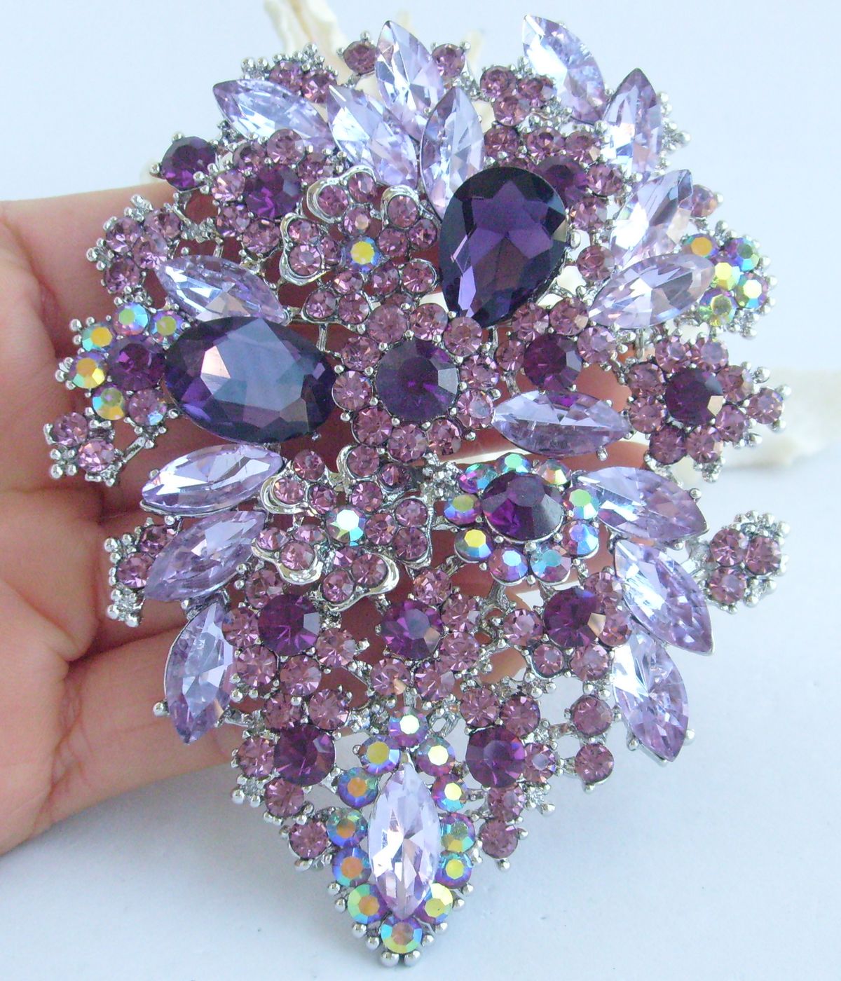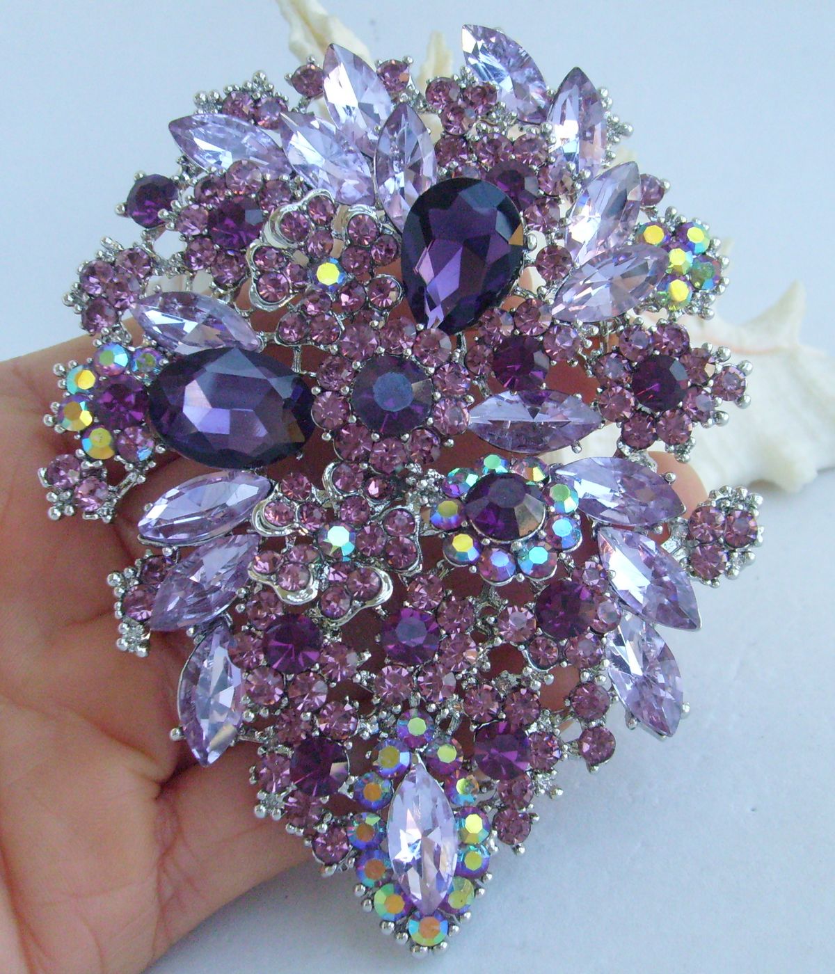 Sindary 4 Inch Rhinestone Crystal Flower Brooch Pin Pendant BP03905 (Silver-Tone Purple) 80g