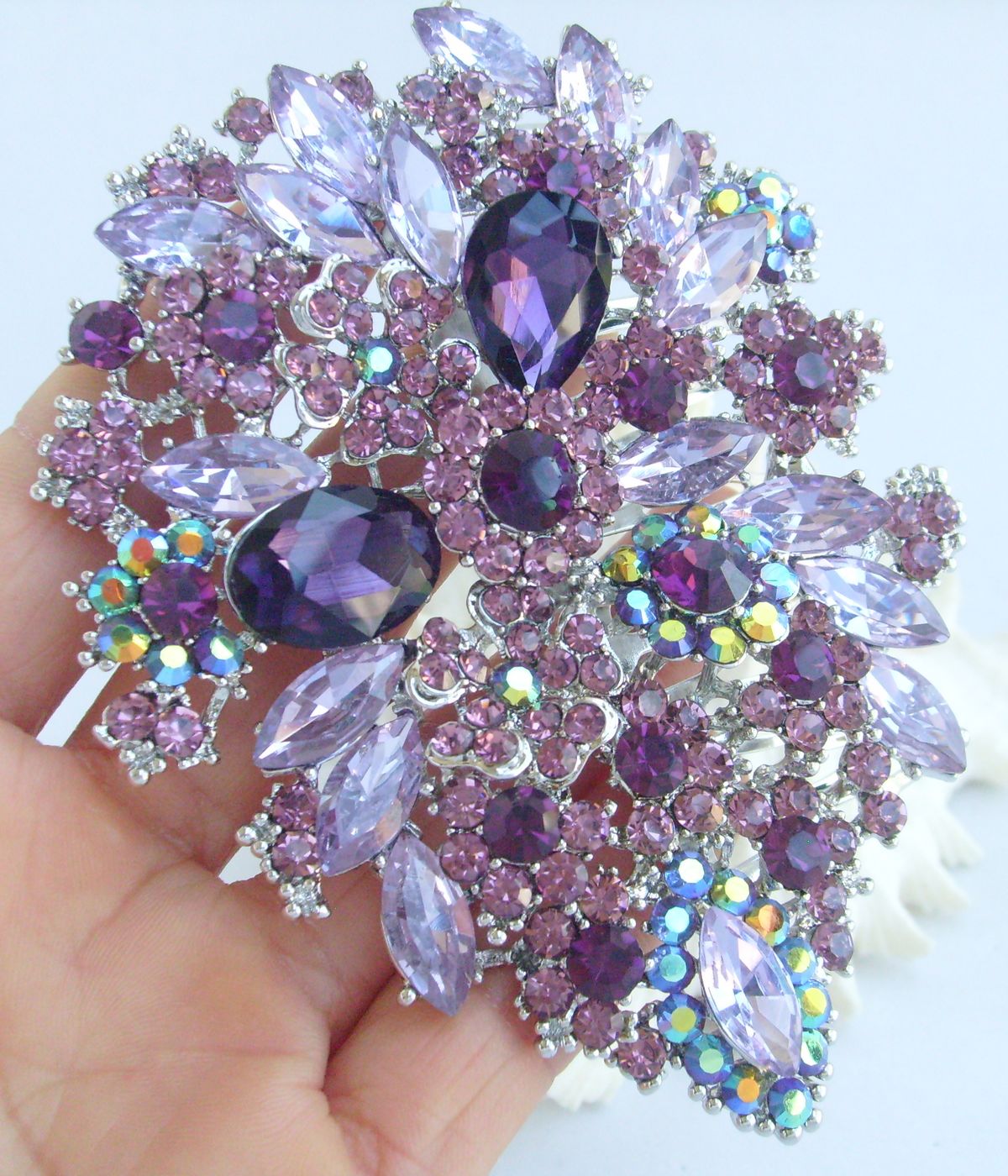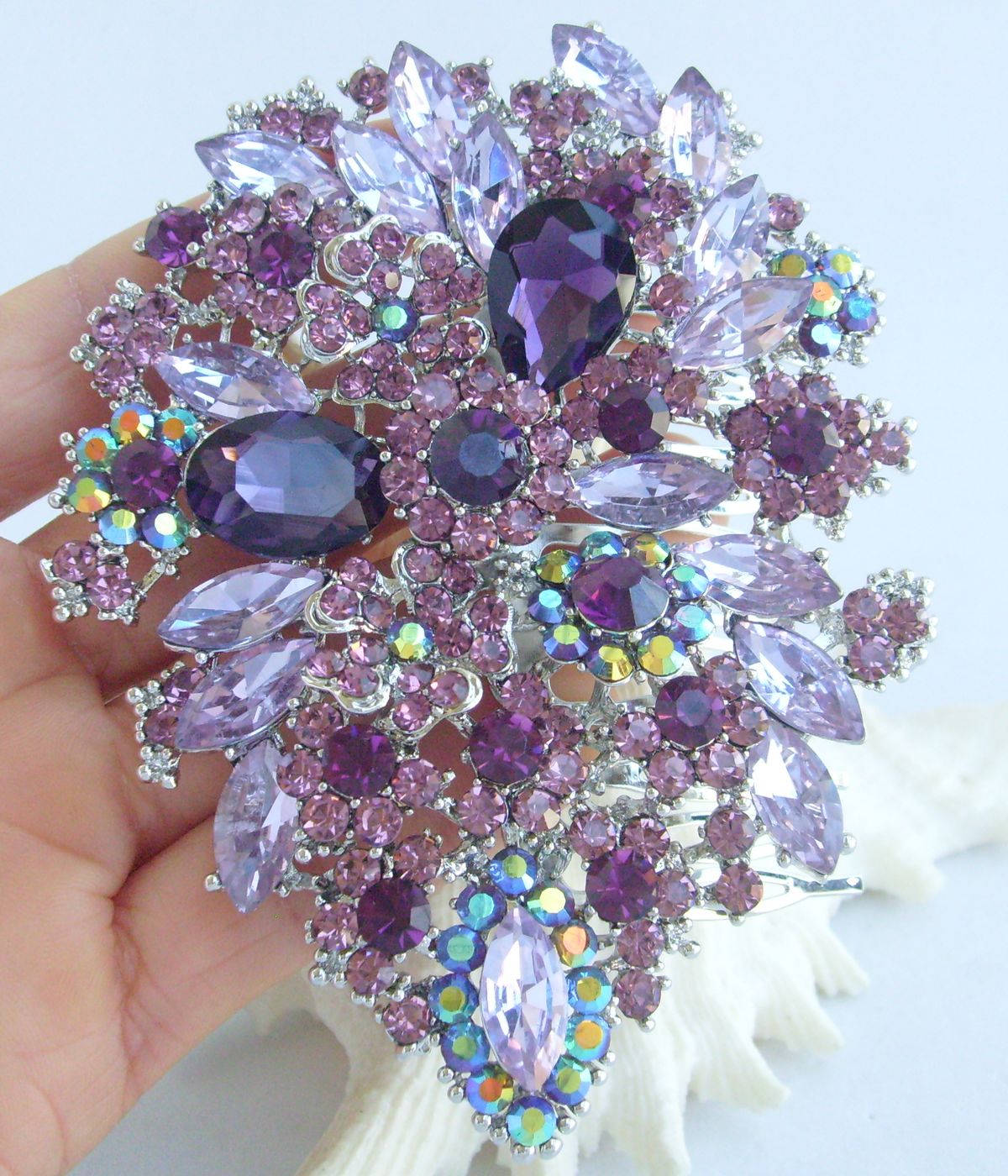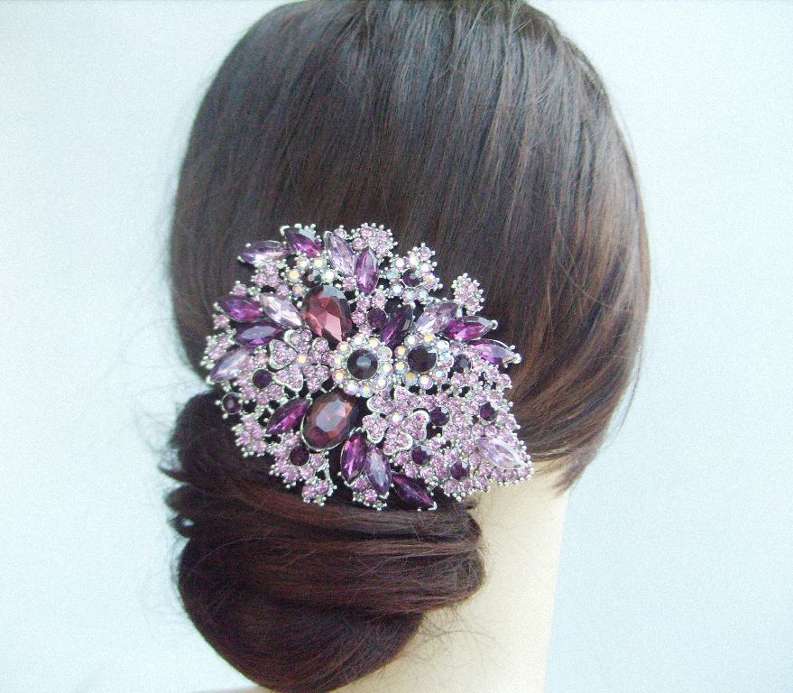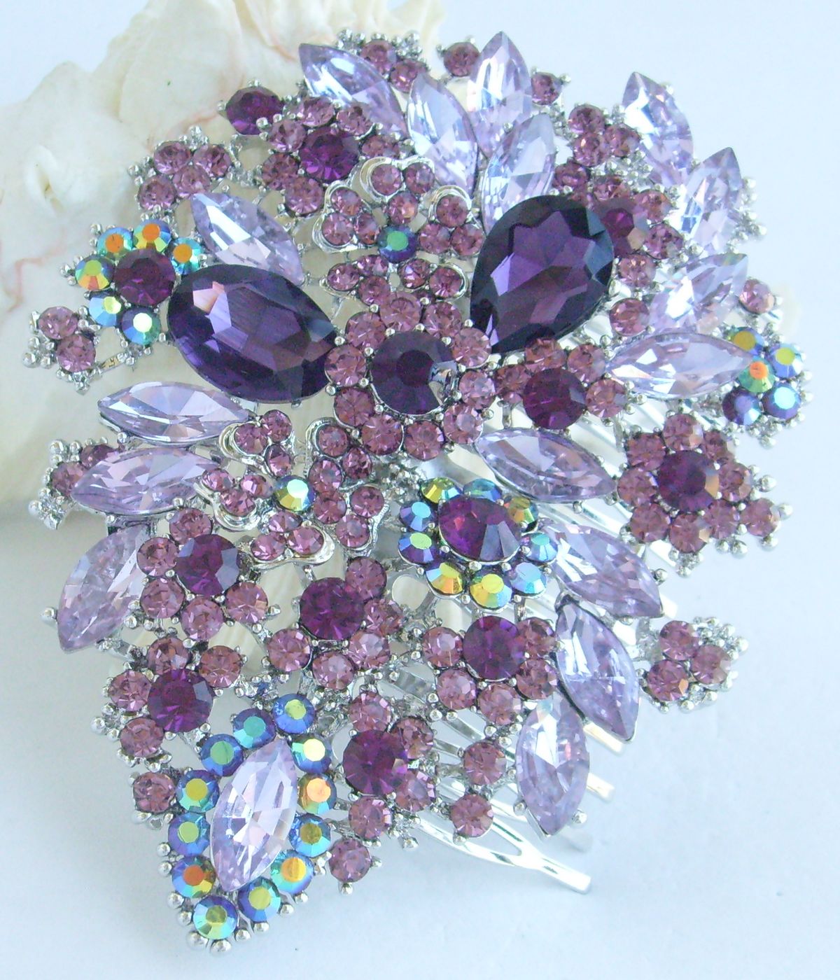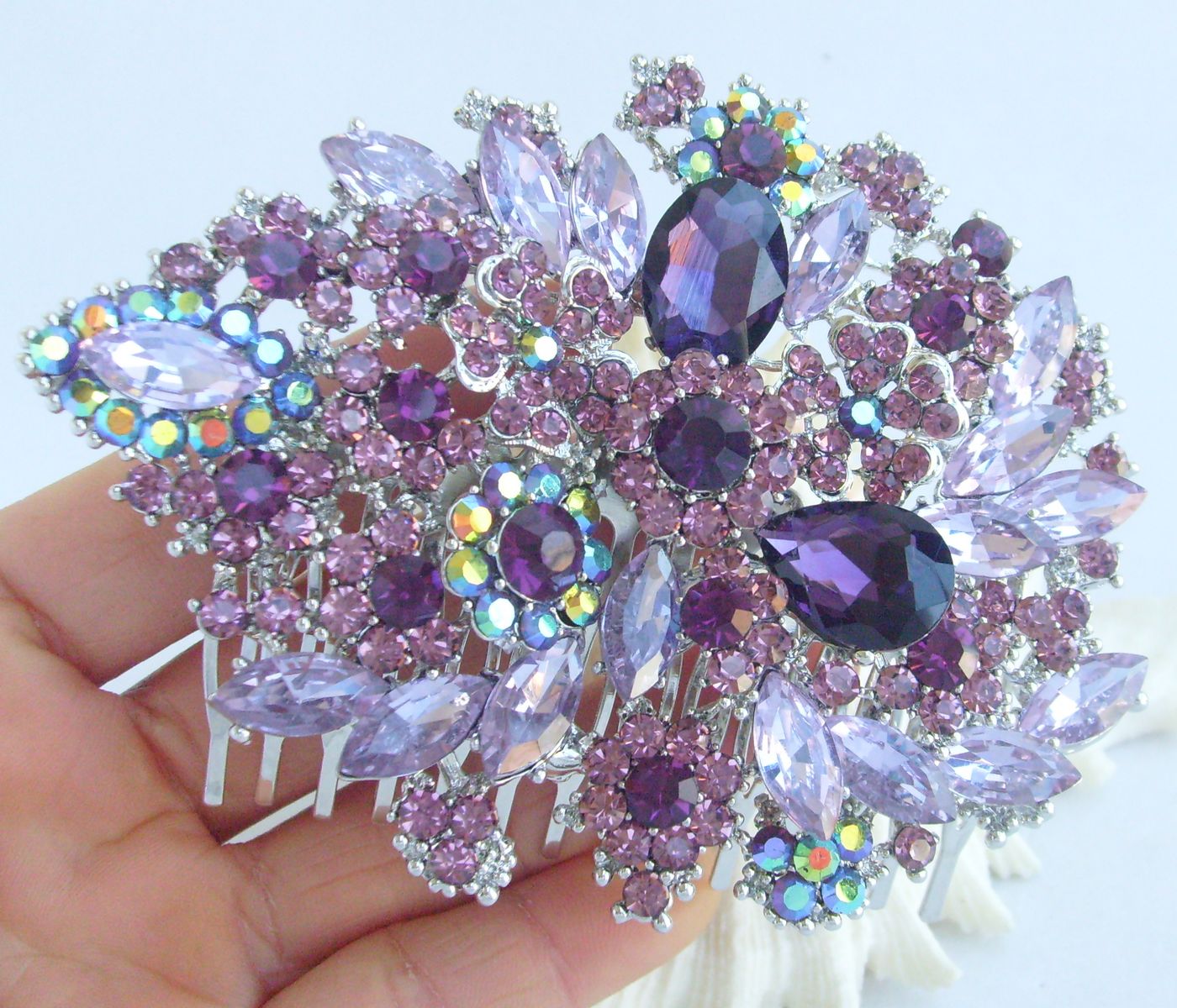 Sindary Wedding Bridal Party Headpiece Flower Hair Clip Side Comb Rhinestone Hair Comb HC03905 (Silver-Tone Purple)