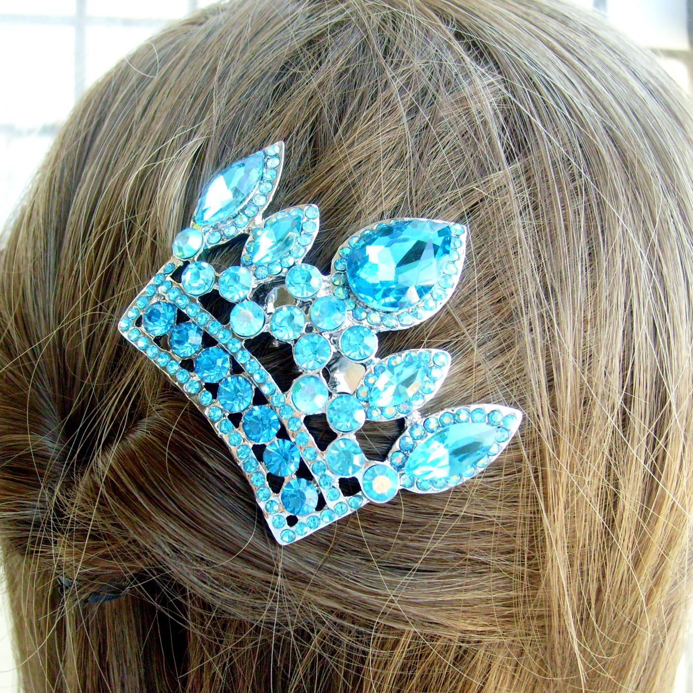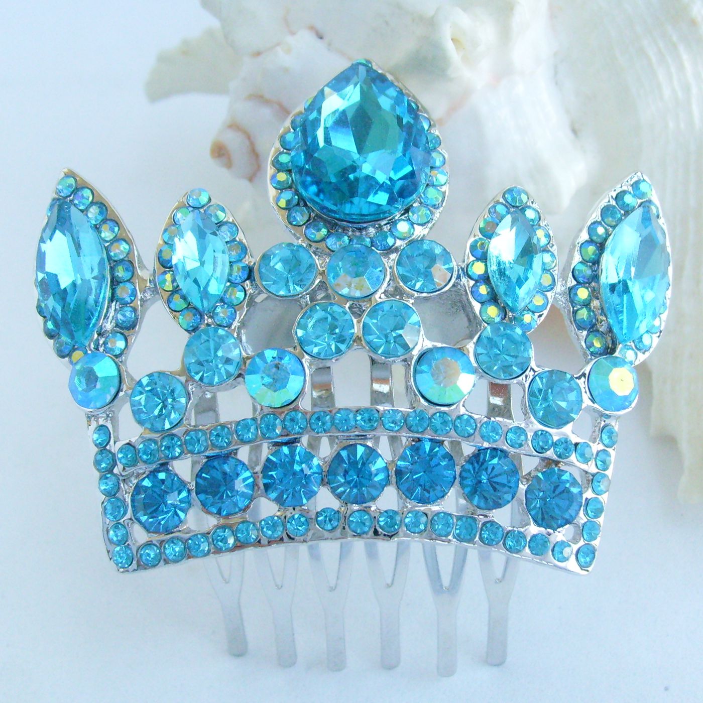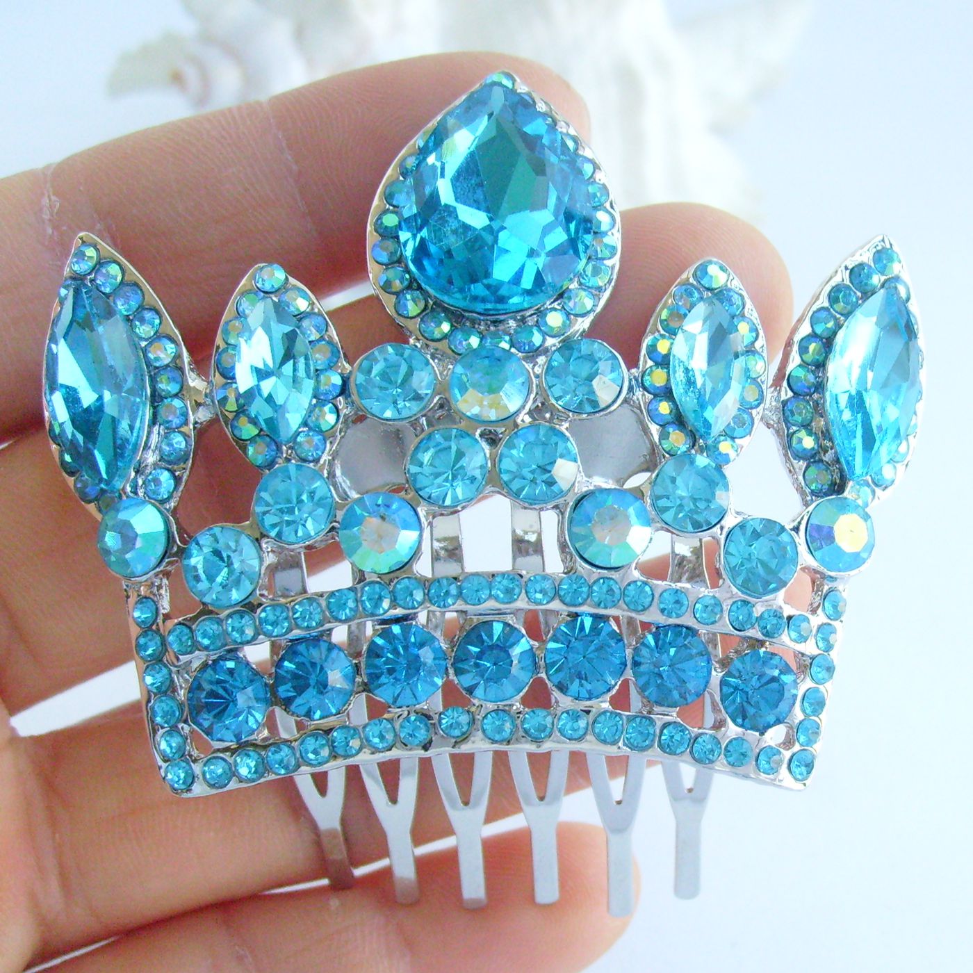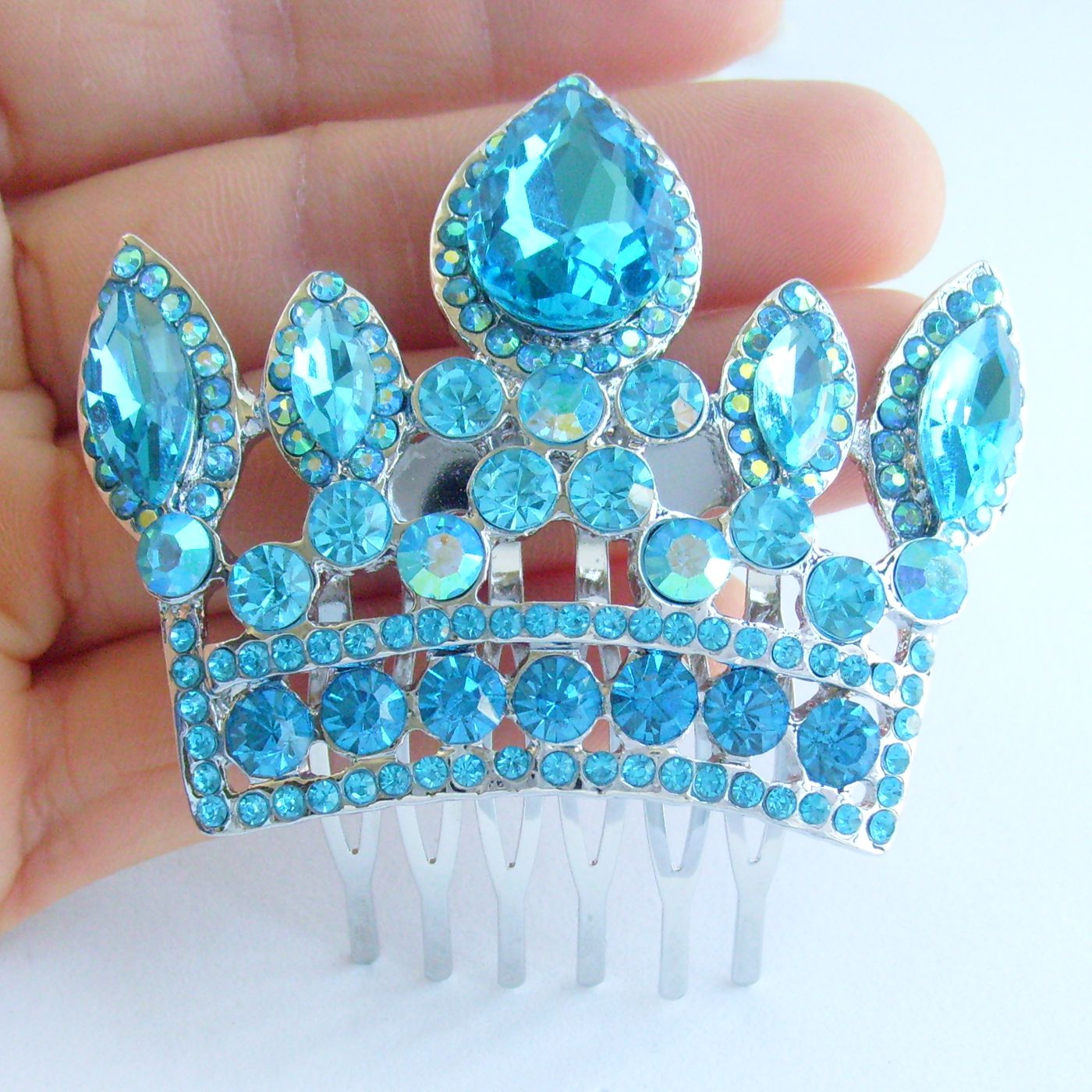 Sindary Wedding Bridal Party Headpiece Crown Hair Clip Side Comb Rhinestone Hair Comb HC05050 (Silver-Tone Lake Blue)