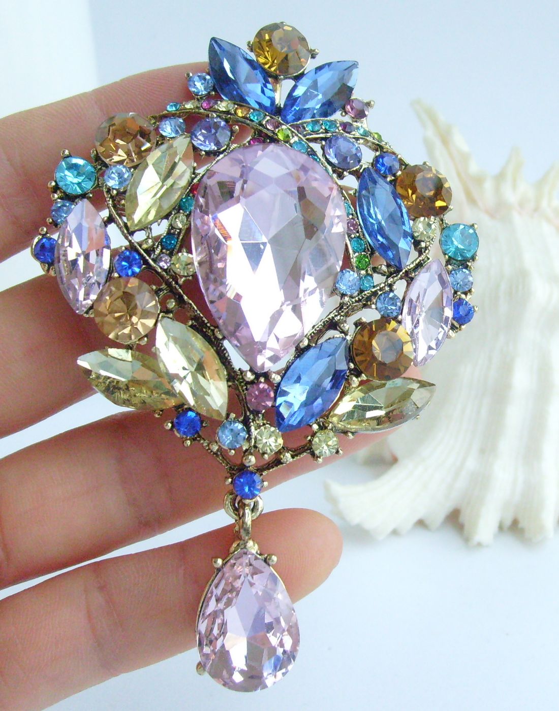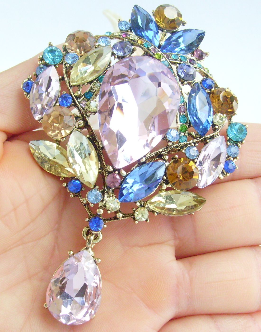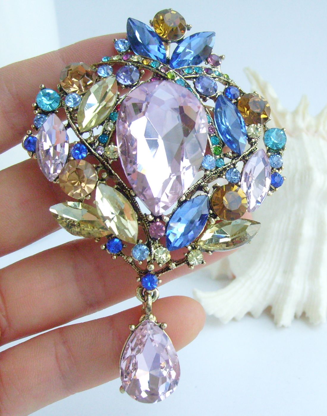 Sindary Classic Teardrop Brooch Pin Pendant Rhinestone Crystal Teardrop Pin BP04082 (Gold-Tone Multicolor) 50g