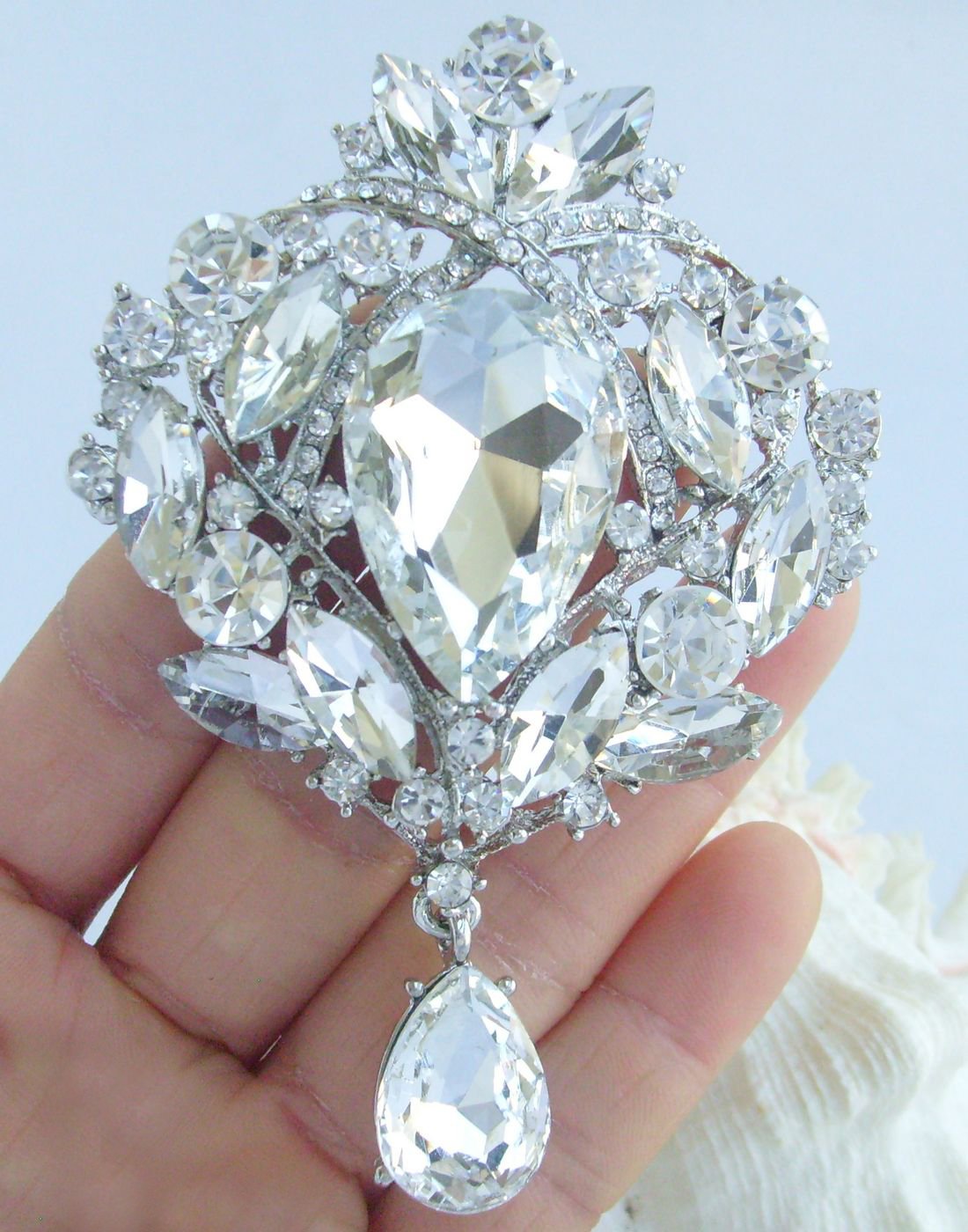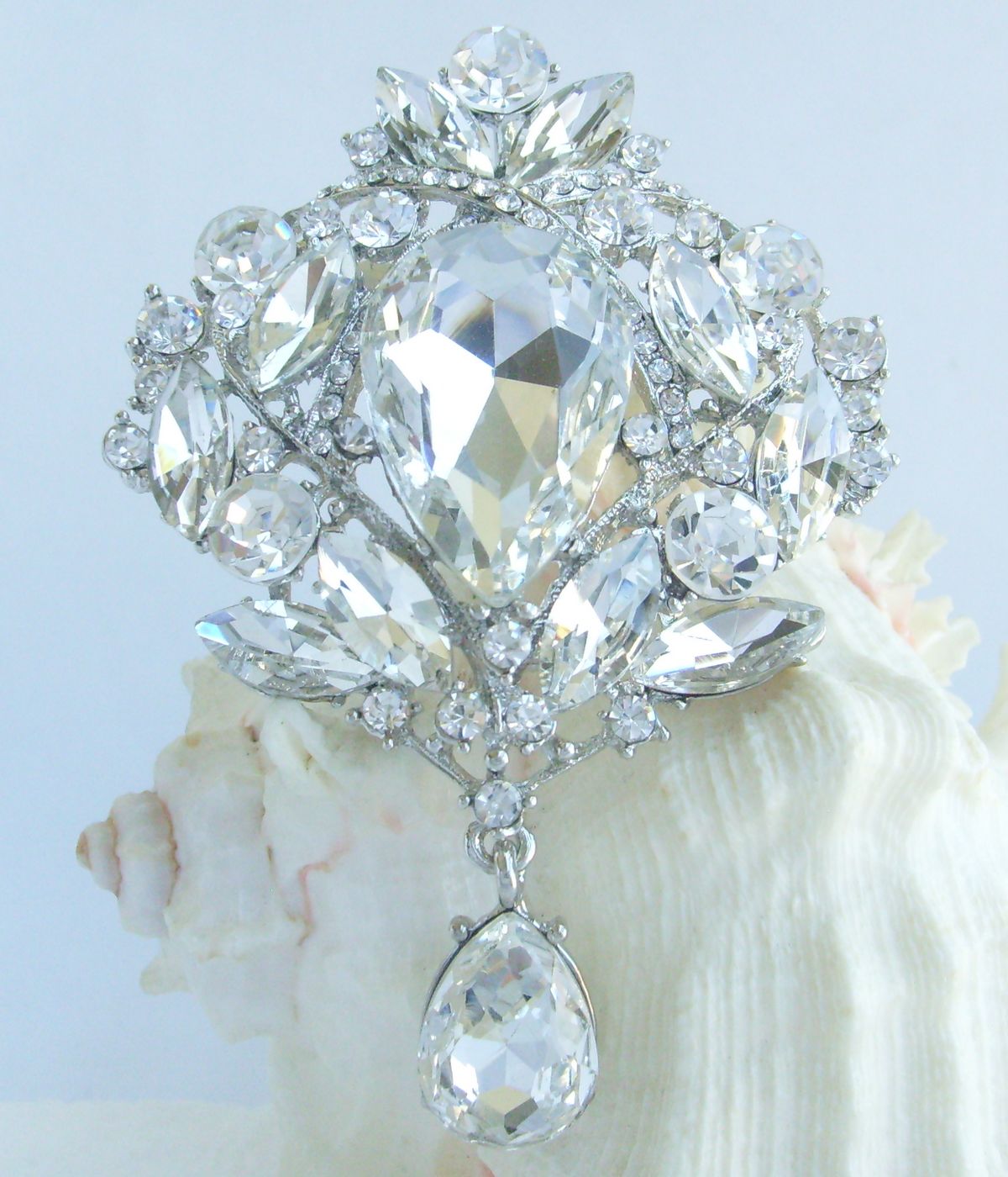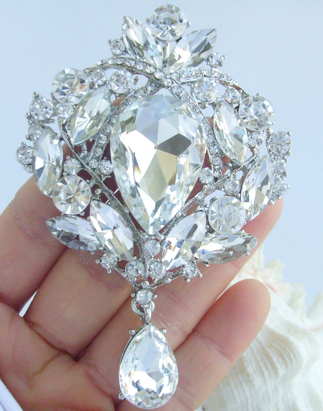 Sindary Classic Teardrop Brooch Pin Pendant Rhinestone Crystal Teardrop Pin BP04082 (Silver-Tone Clear) 50g