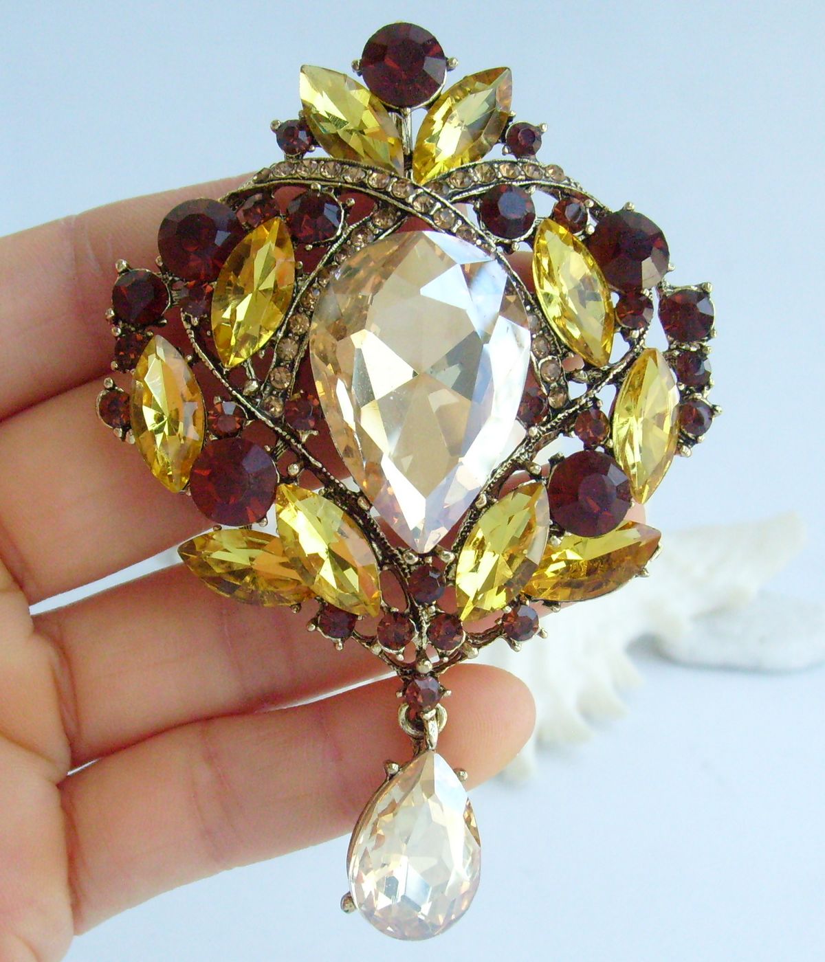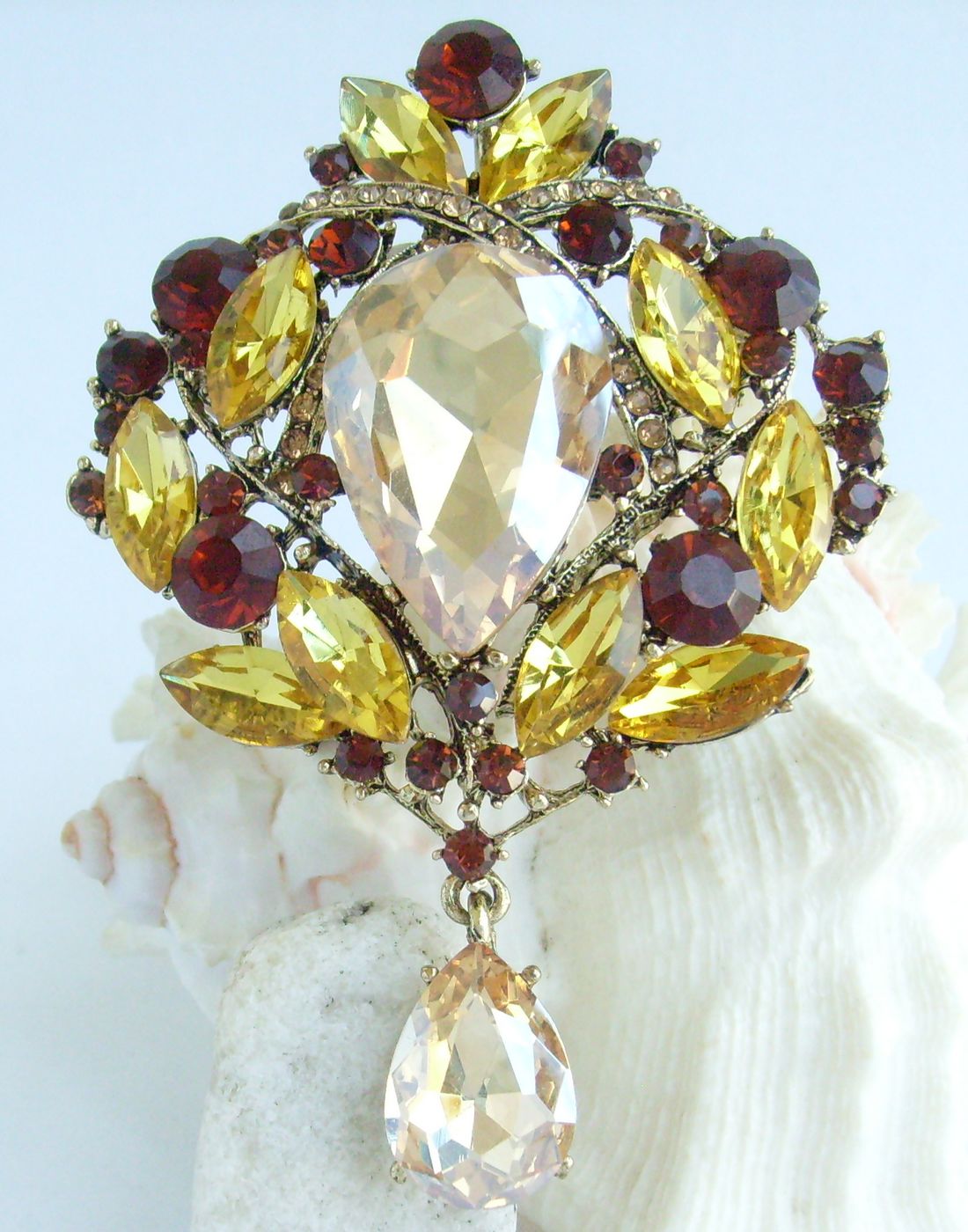 Sindary Classic Teardrop Brooch Pin Pendant Rhinestone Crystal Teardrop Pin BP04082 (Gold-Tone Brown) 50g