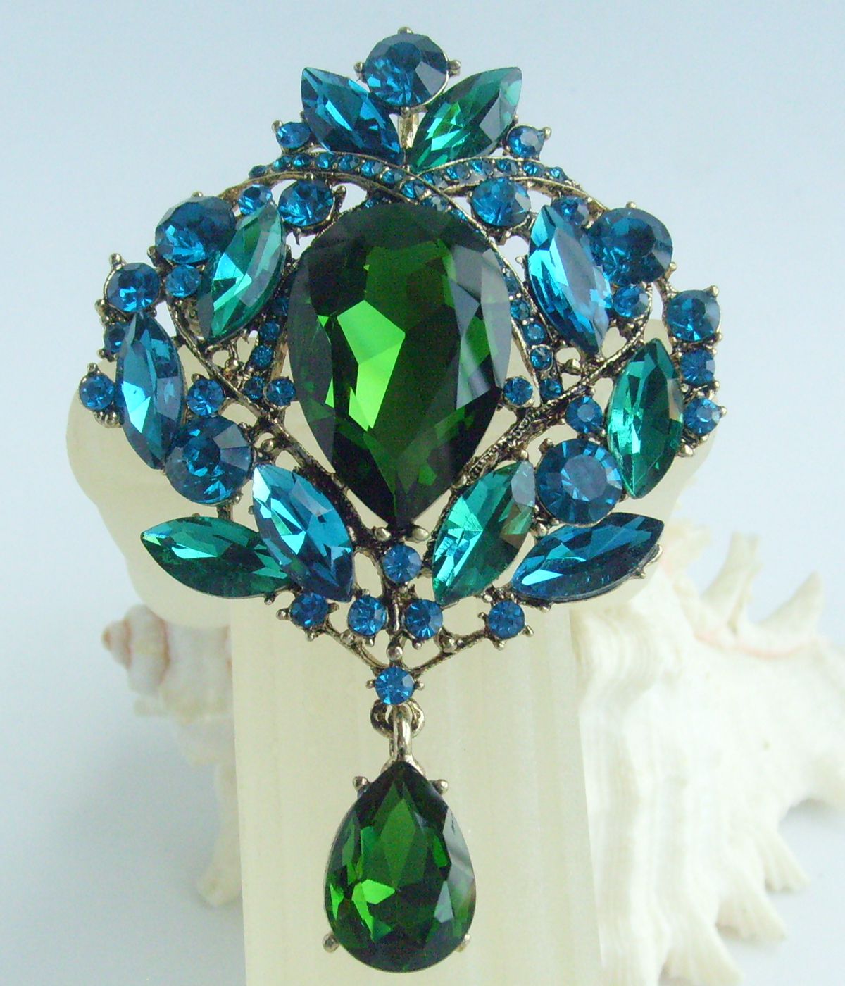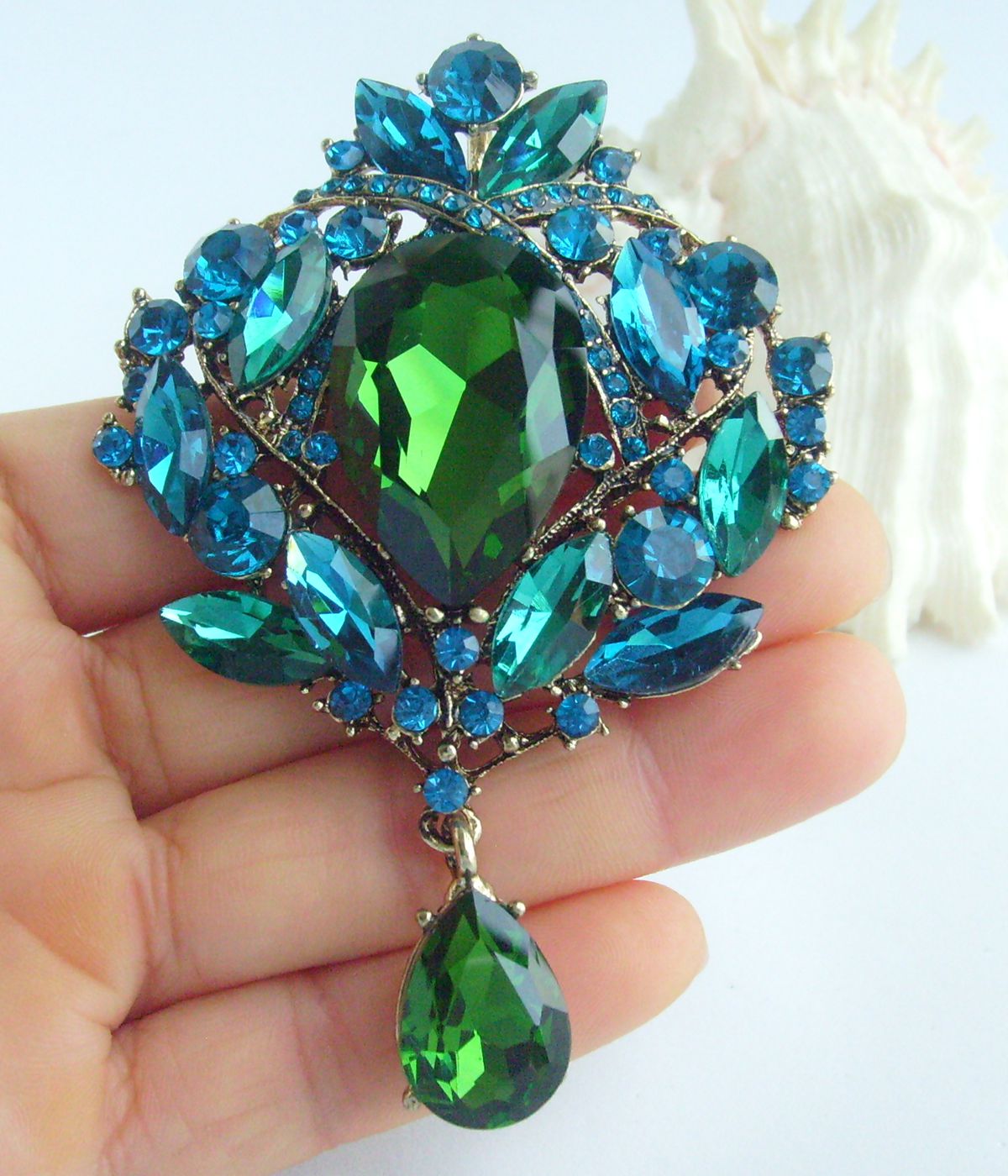 Sindary Classic Teardrop Brooch Pin Pendant Rhinestone Crystal Teardrop Pin BP04082 (Gold-Tone Green) 50g
