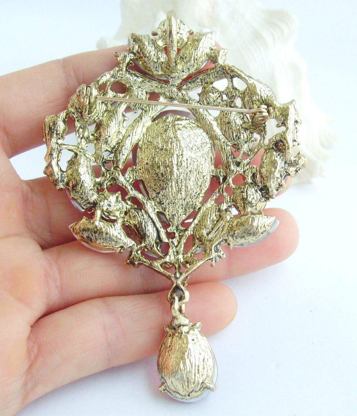 The size of the brooch: 9.0cm (3.54") Length by 6.0cm (2.36") Width.