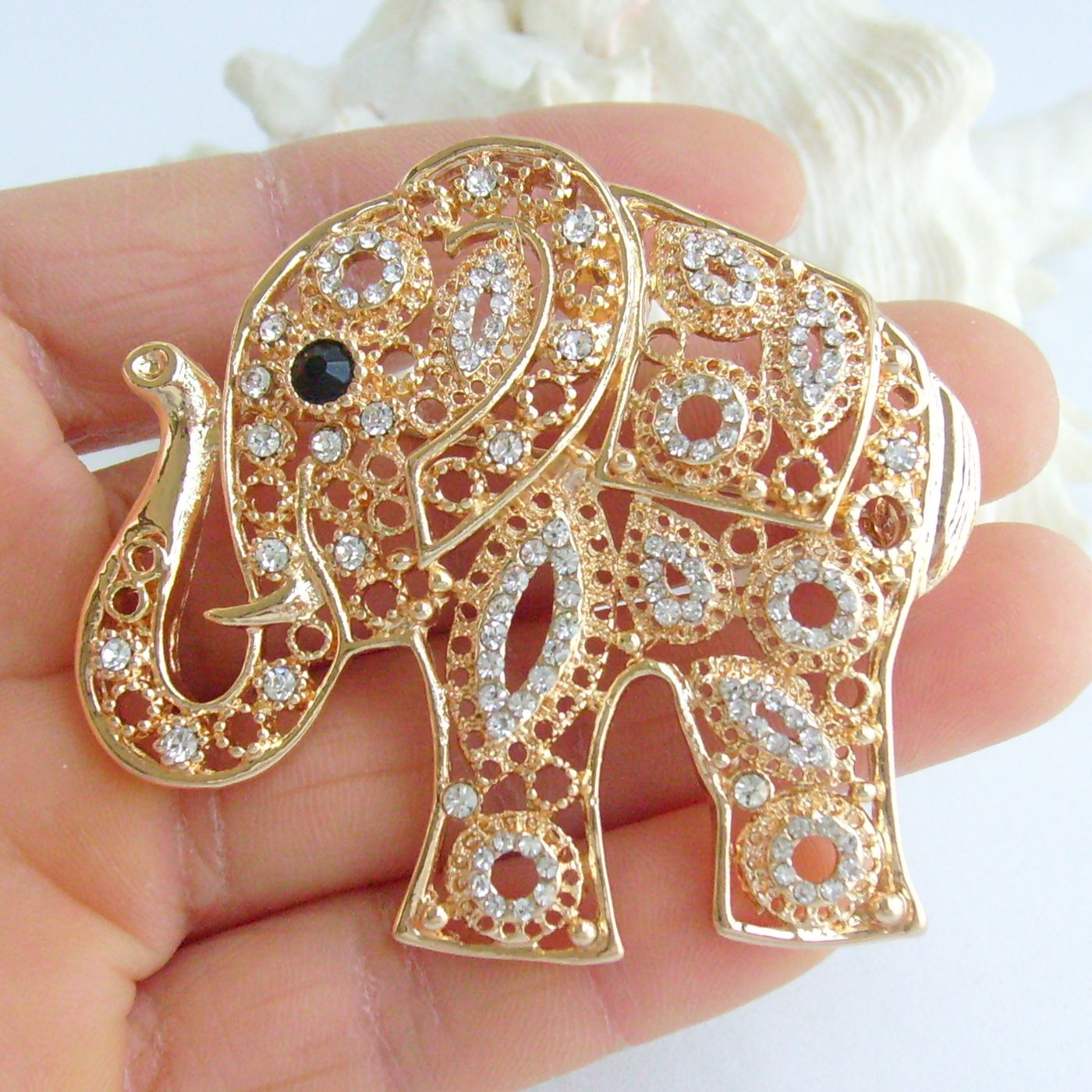 Sindary Unique Animal Elephant Brooch Pin Pendant Rhinestone Crystal BP05102 (Gold-Tone Clear) 20g