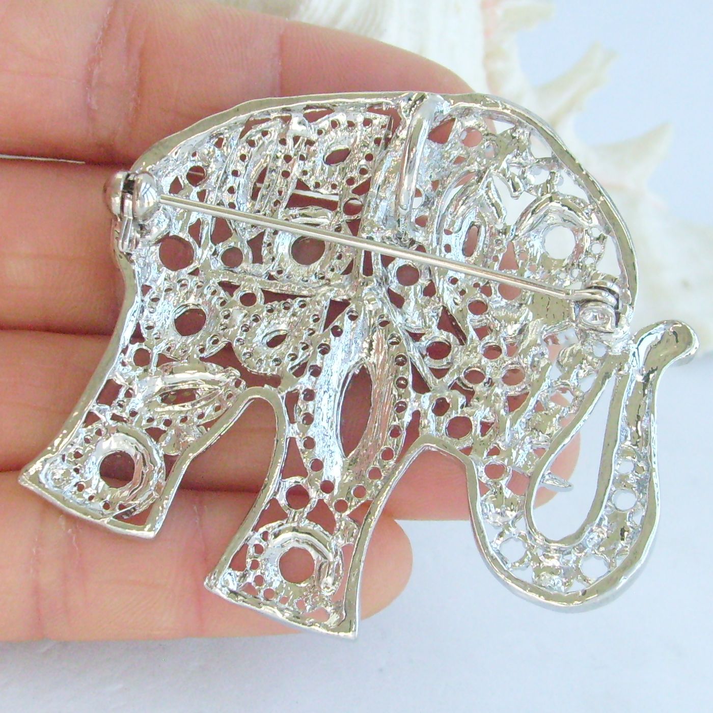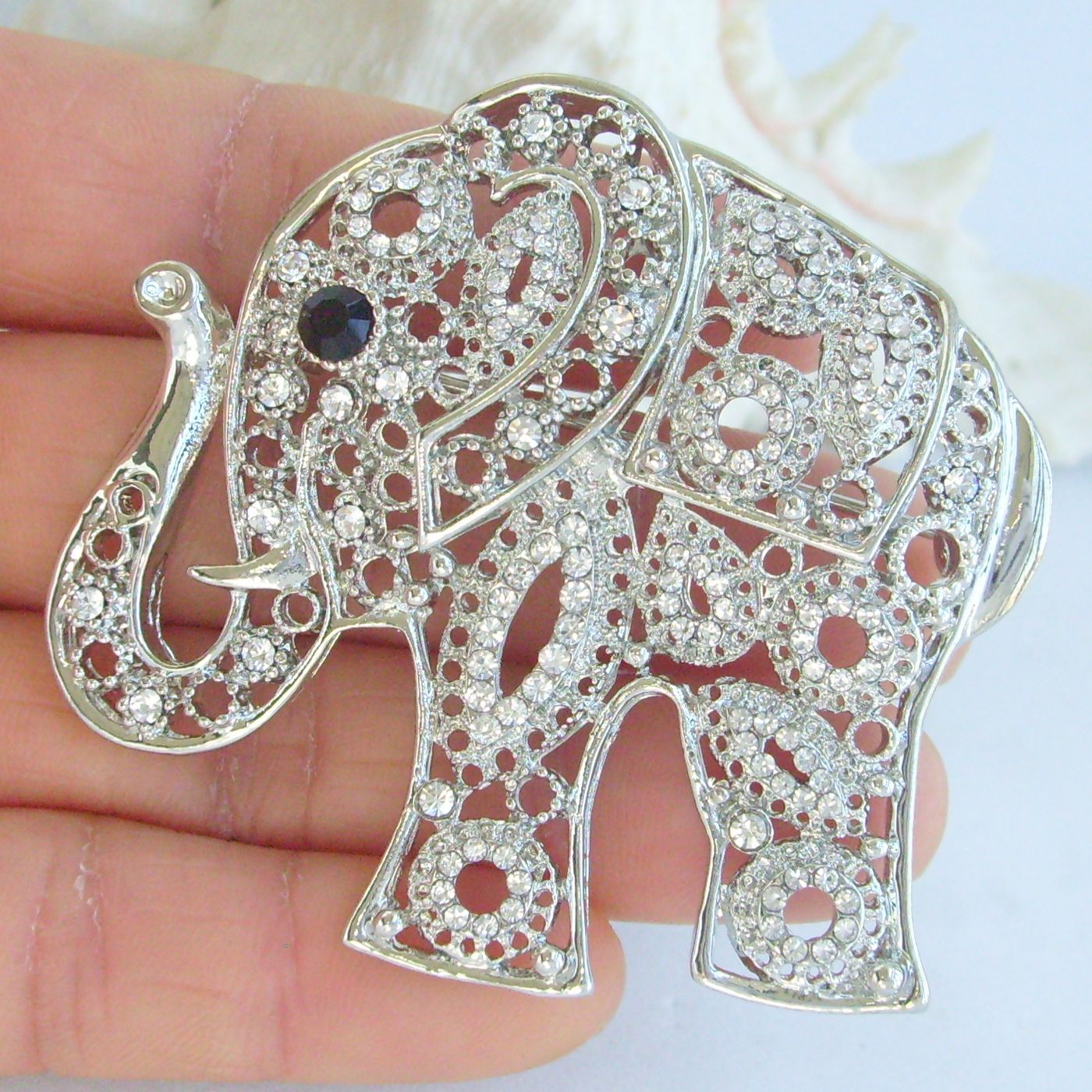 Sindary Unique Rhinestone Crystal Animal Elephant Brooch Pin Pendant BP05102 (Silver-Tone Clear) 20g