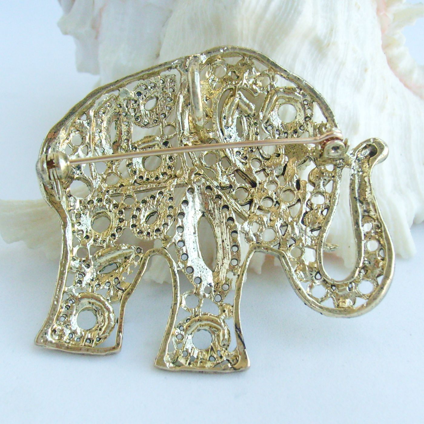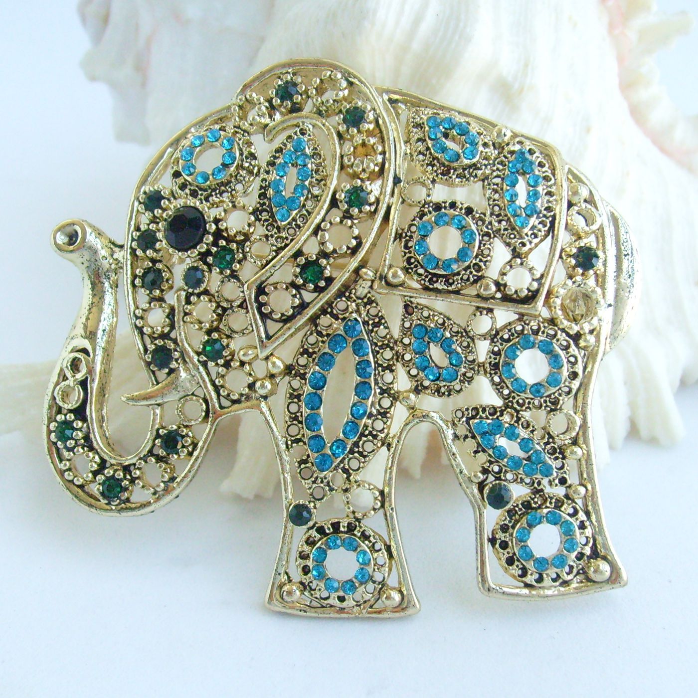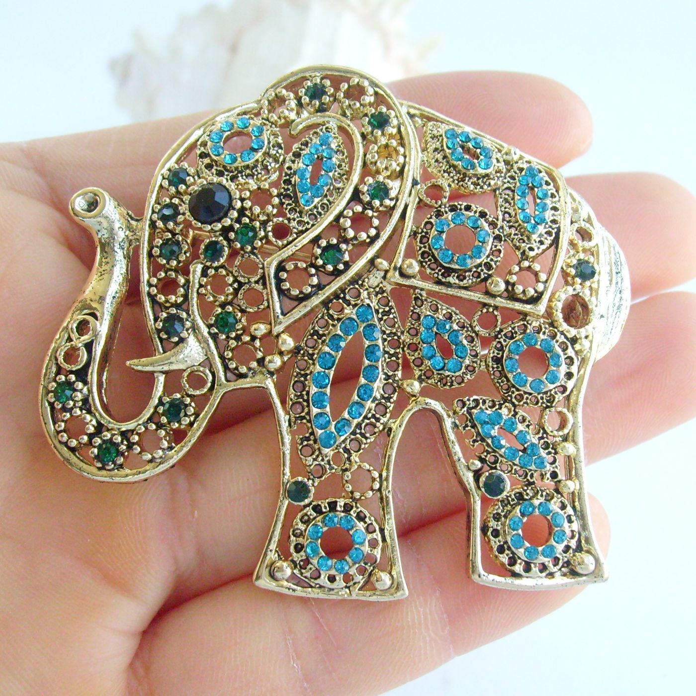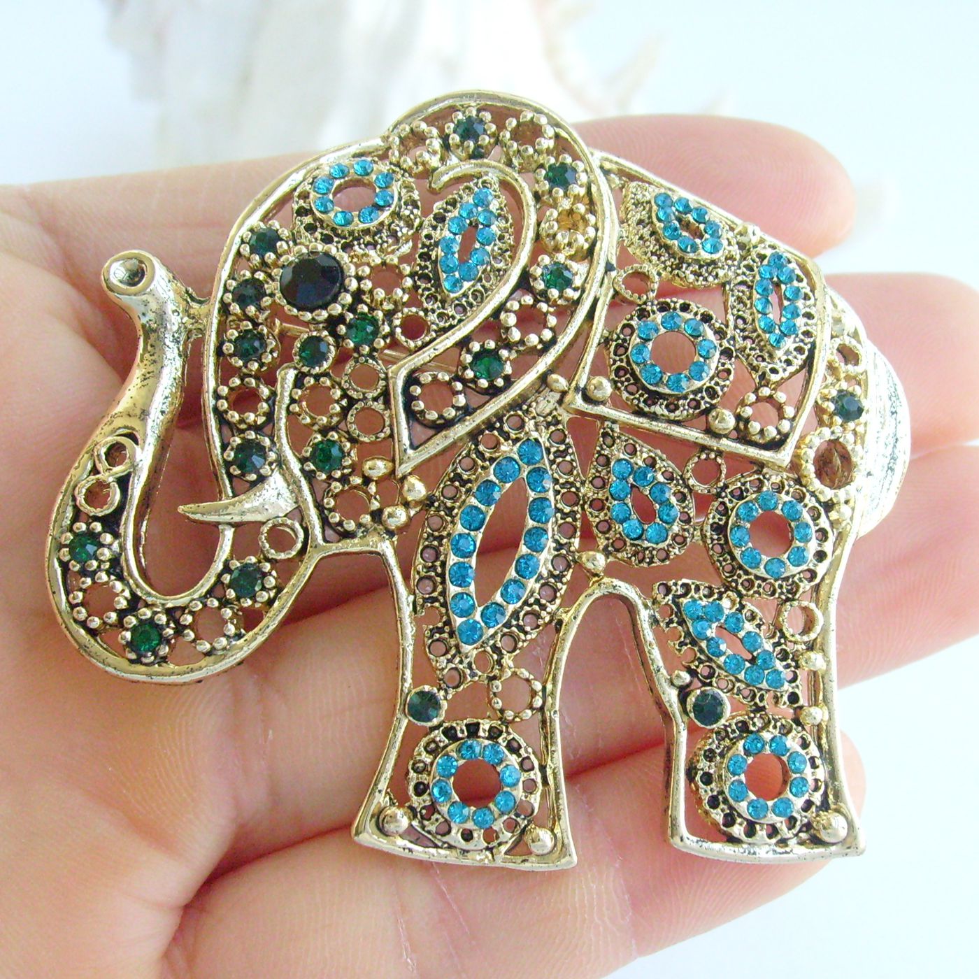 Sindary Unique Rhinestone Crystal Animal Elephant Brooch Pin Pendant BP05102 (Gold-Tone Turquoise Green) 20g