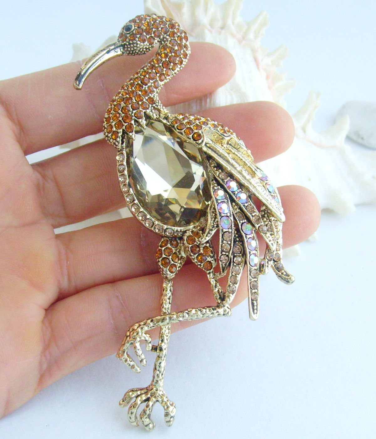 Sindary Animal Bird Flamingo Brooch Pin Austrian Rhineston Crystal Pendant Boxed BP06620 (Gold-Tone Brown) 30g